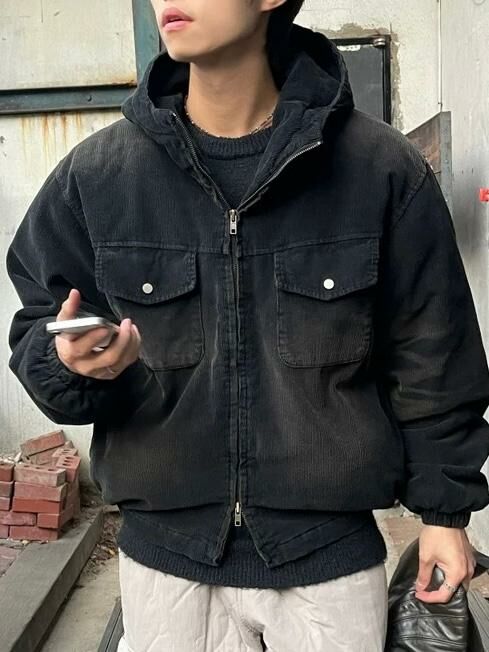 燈心絨連帽拉鍊外套(夾棉) TAC-0106JK