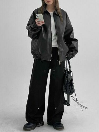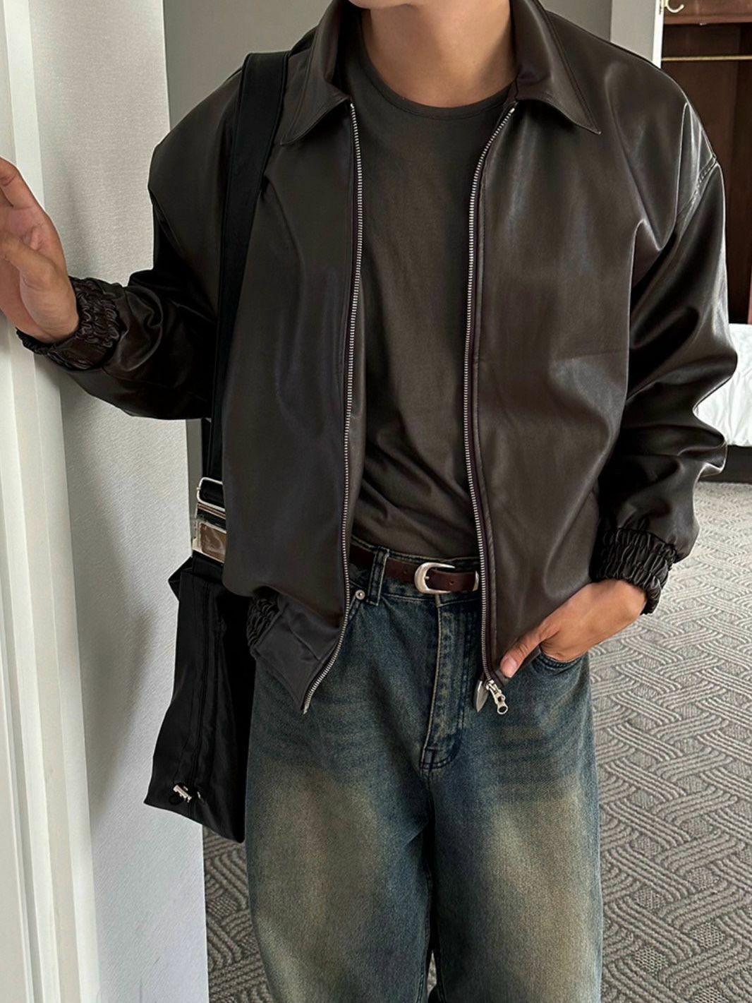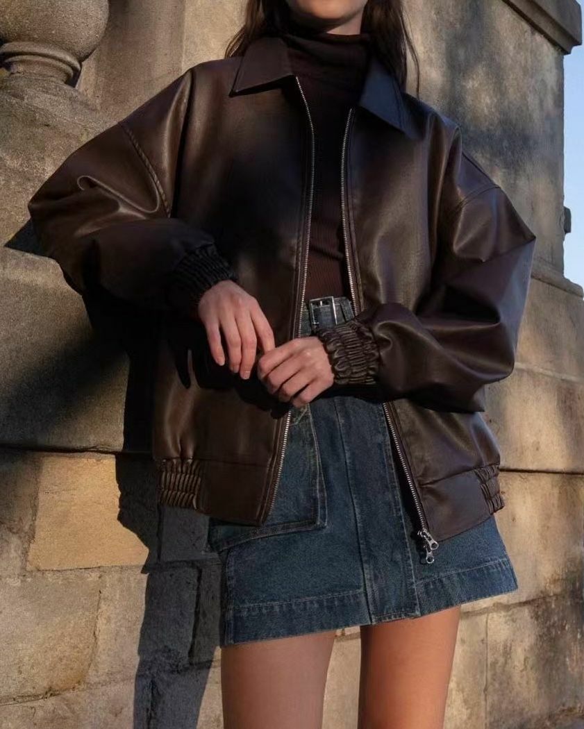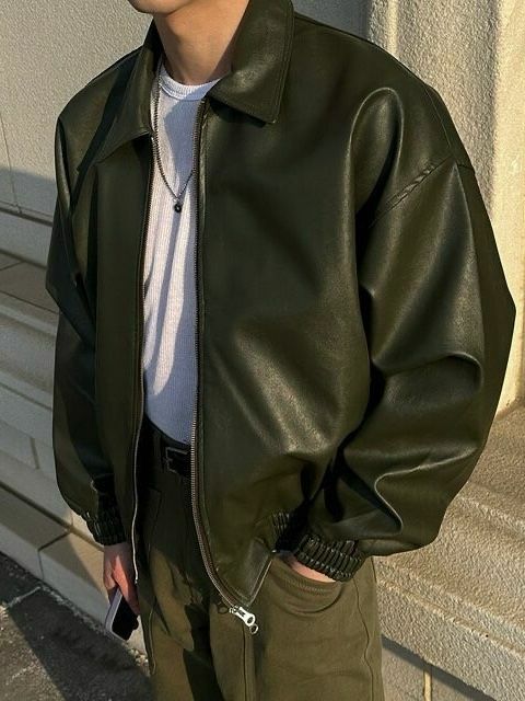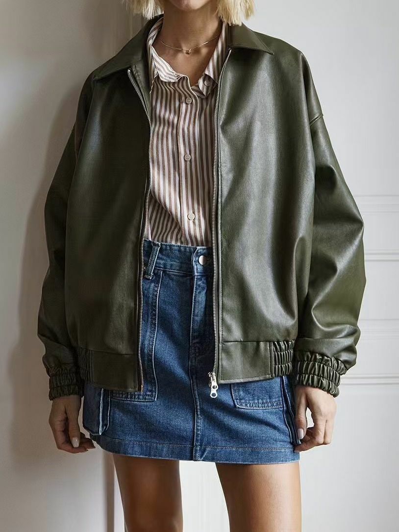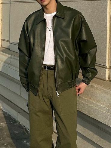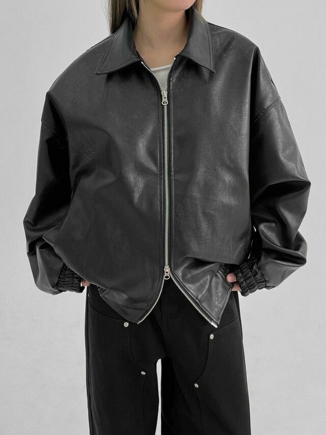 反領拉鍊合成皮褸 TAC-0119JK