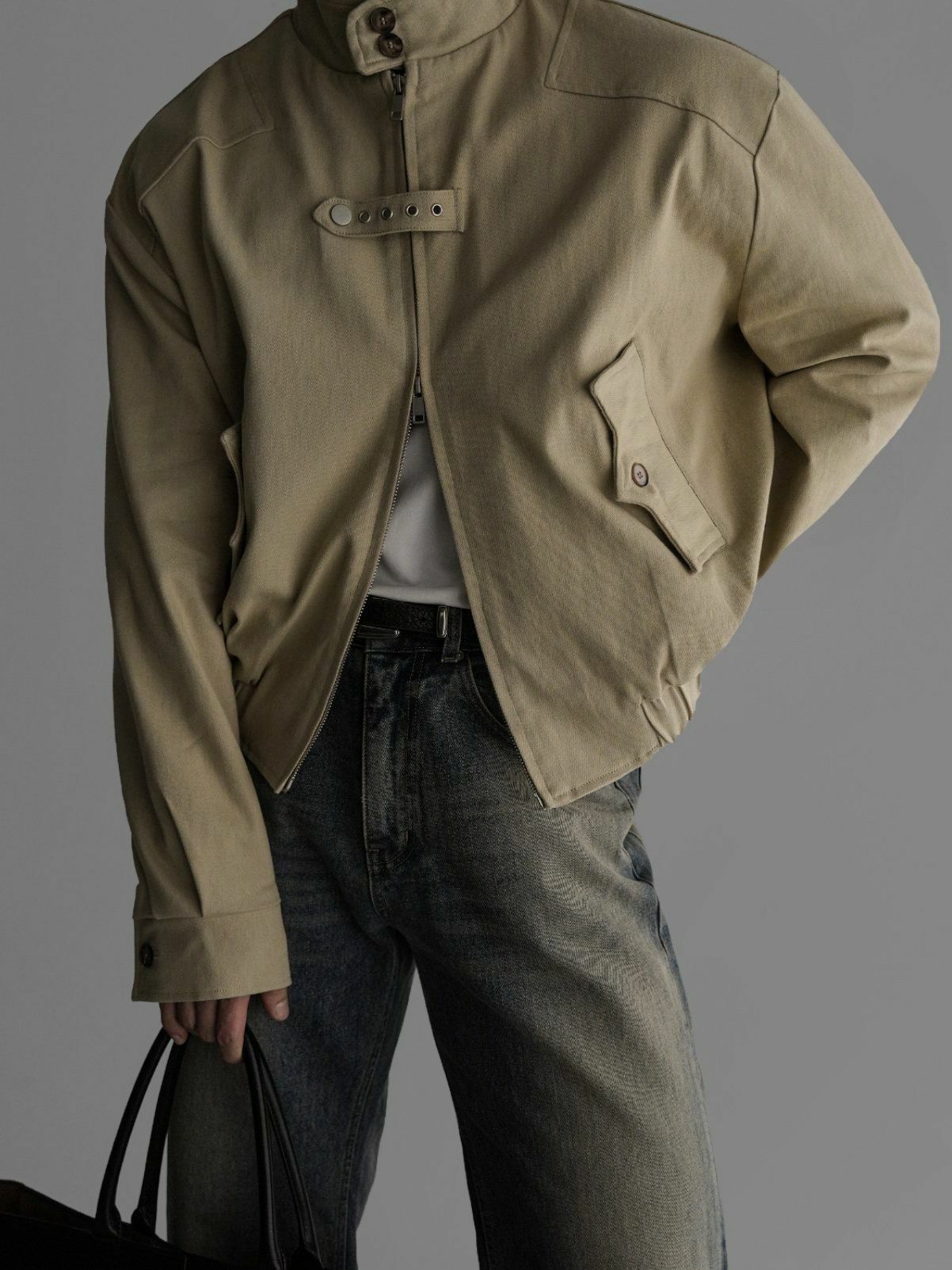 淨色企領拉鍊猄面褸 TAC-0136JK