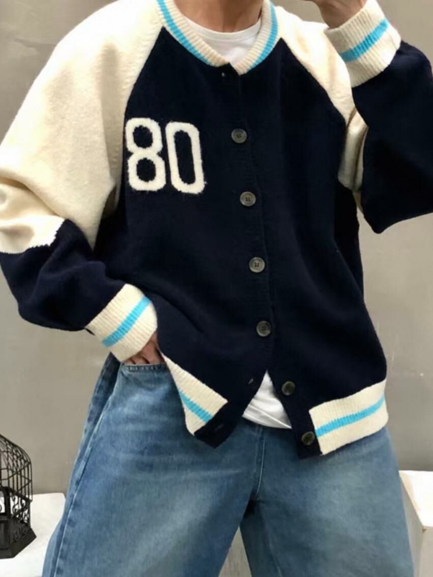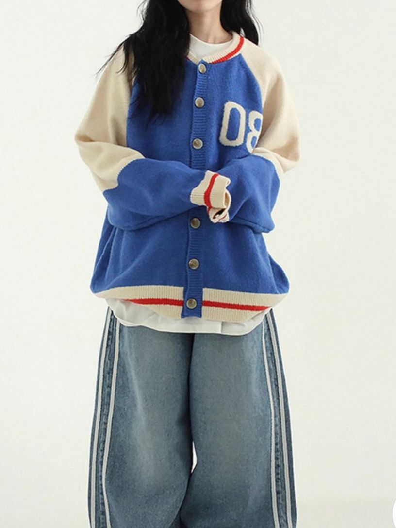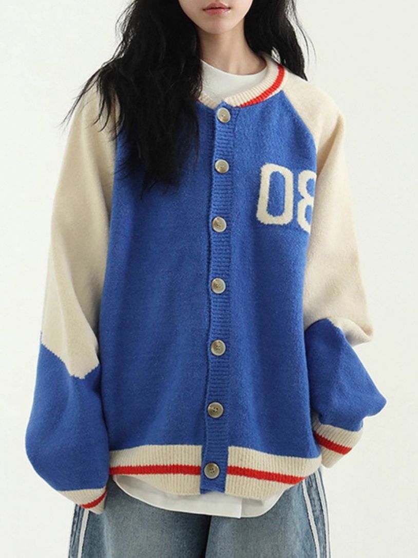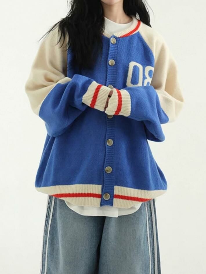 拼色英文字開胸針織外套 TAC-0172JK