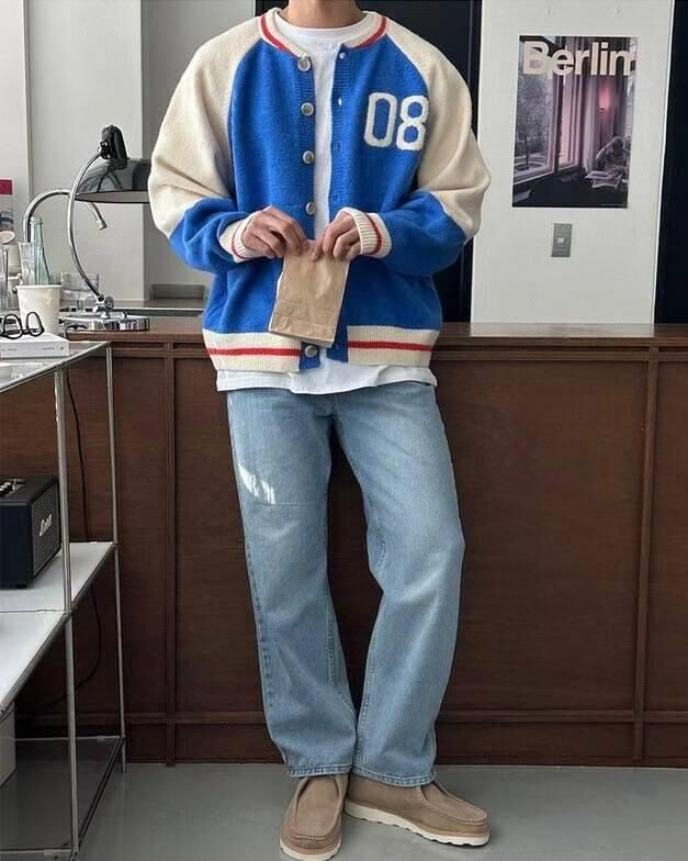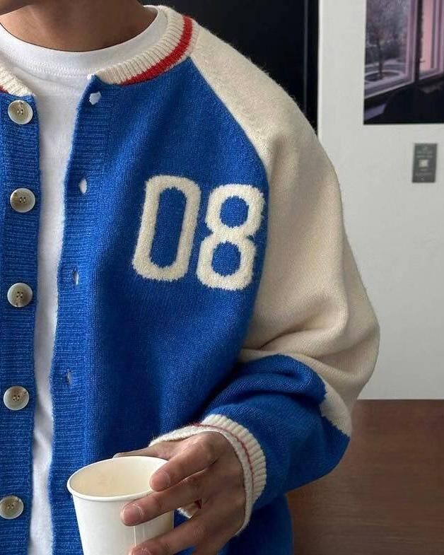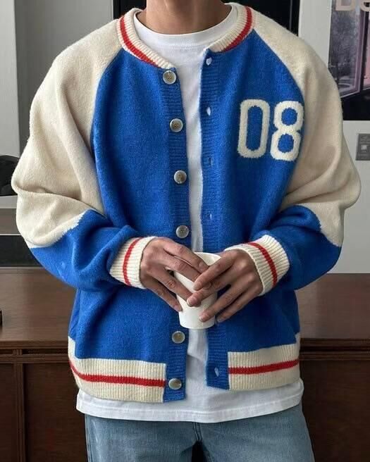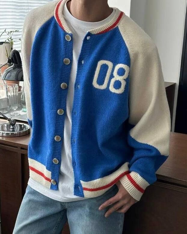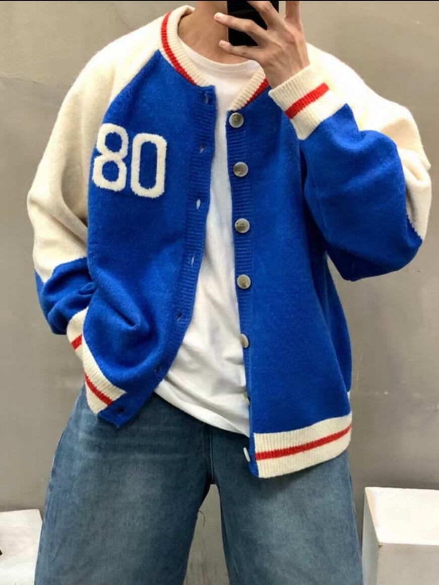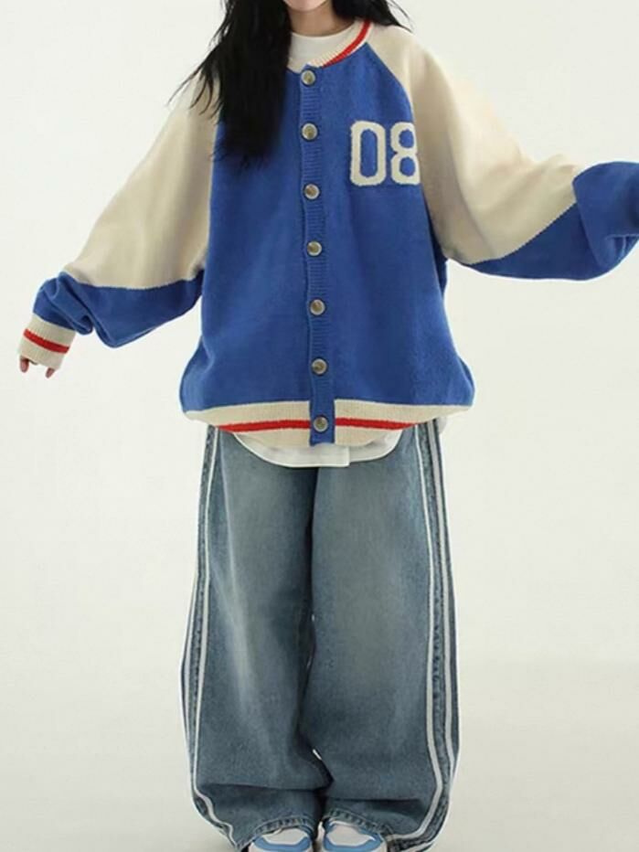 拼色英文字開胸針織外套 TAC-0172JK