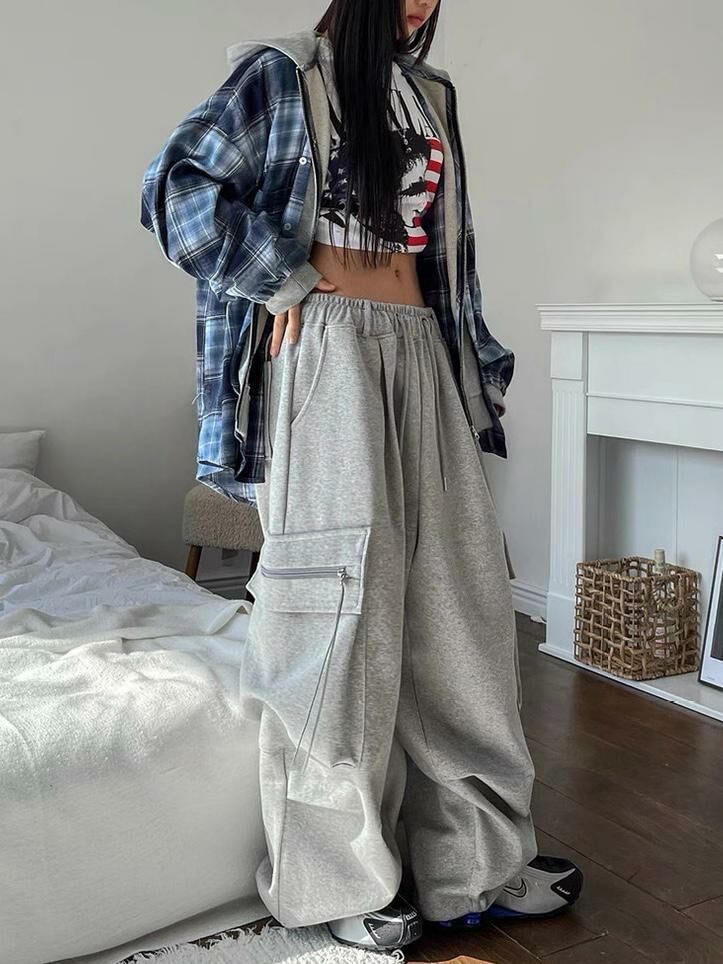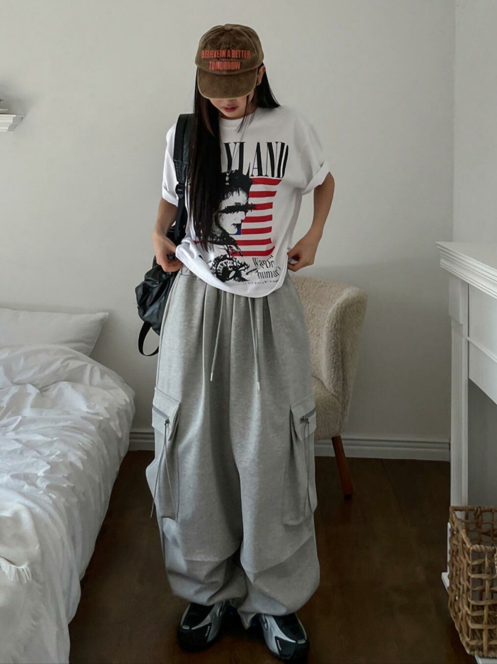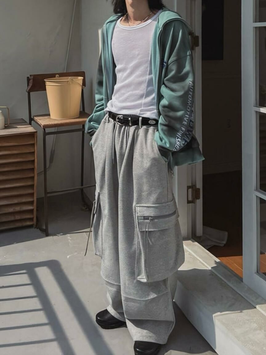 淨色可束腳工裝鬆身運動褲 TAC-0218P