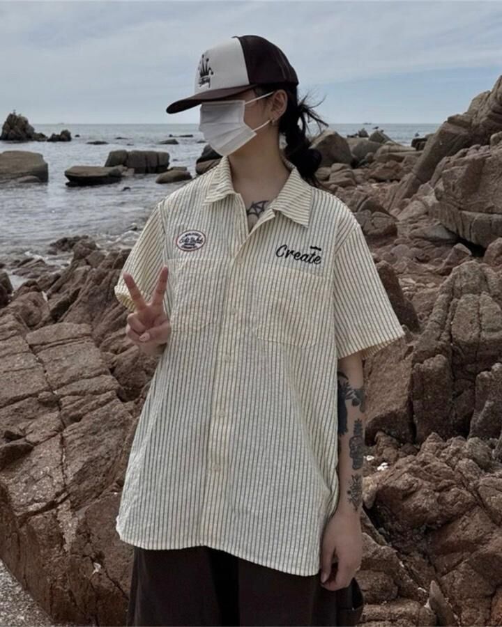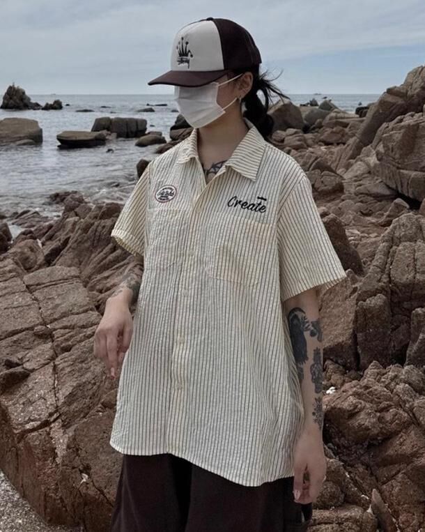 英文字直間短袖恤衫 TAC-0280S