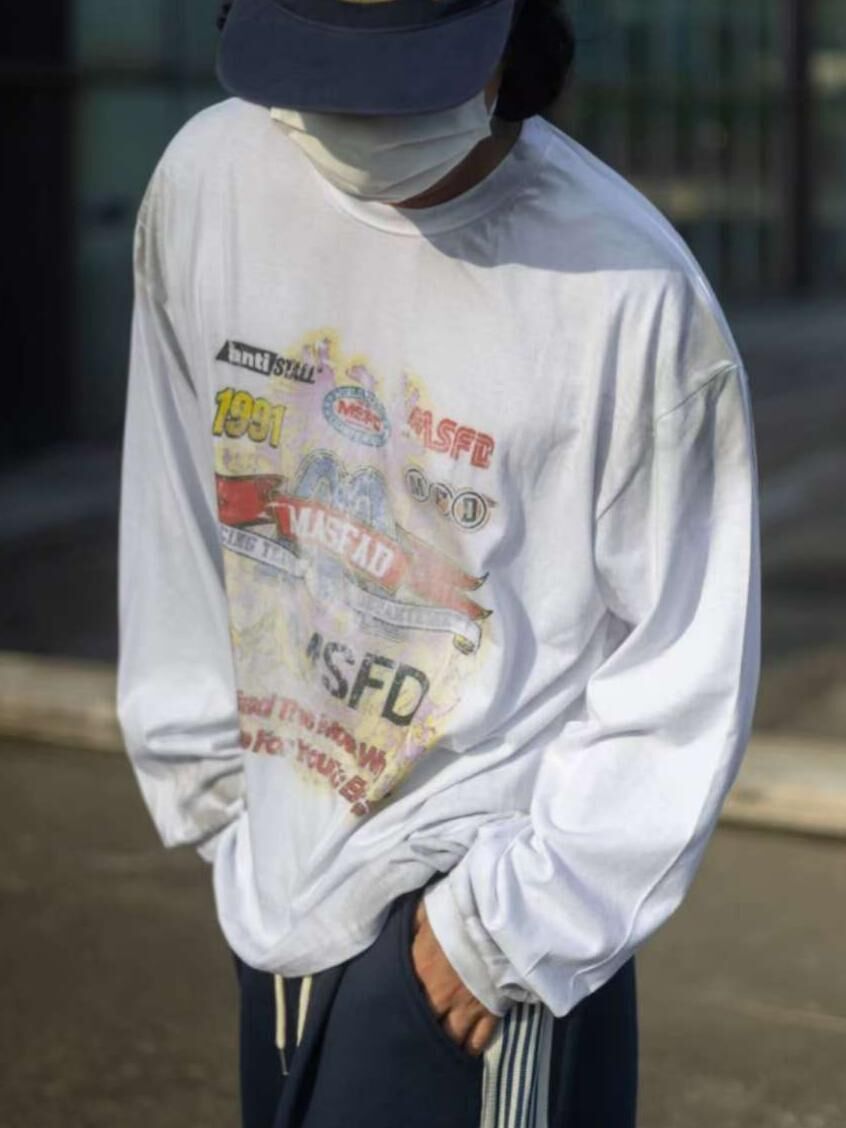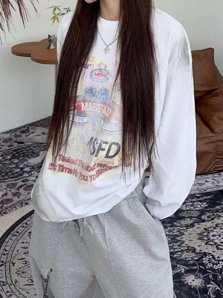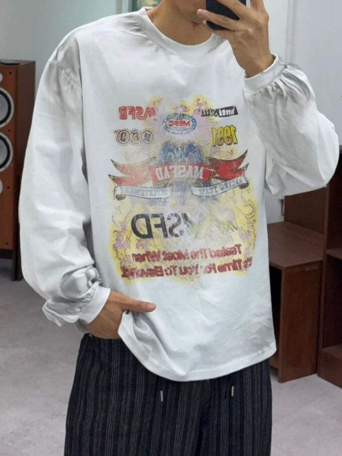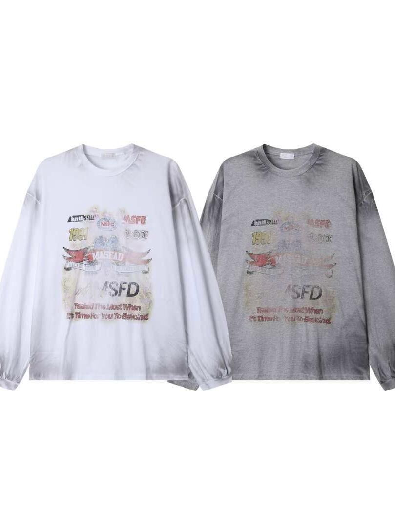 仿污英文字圖案長袖衫 TAC-0289T