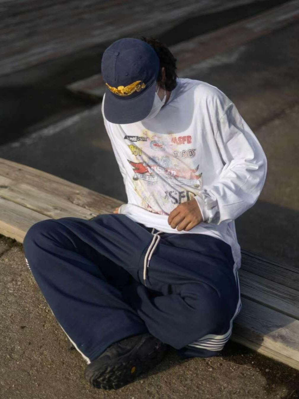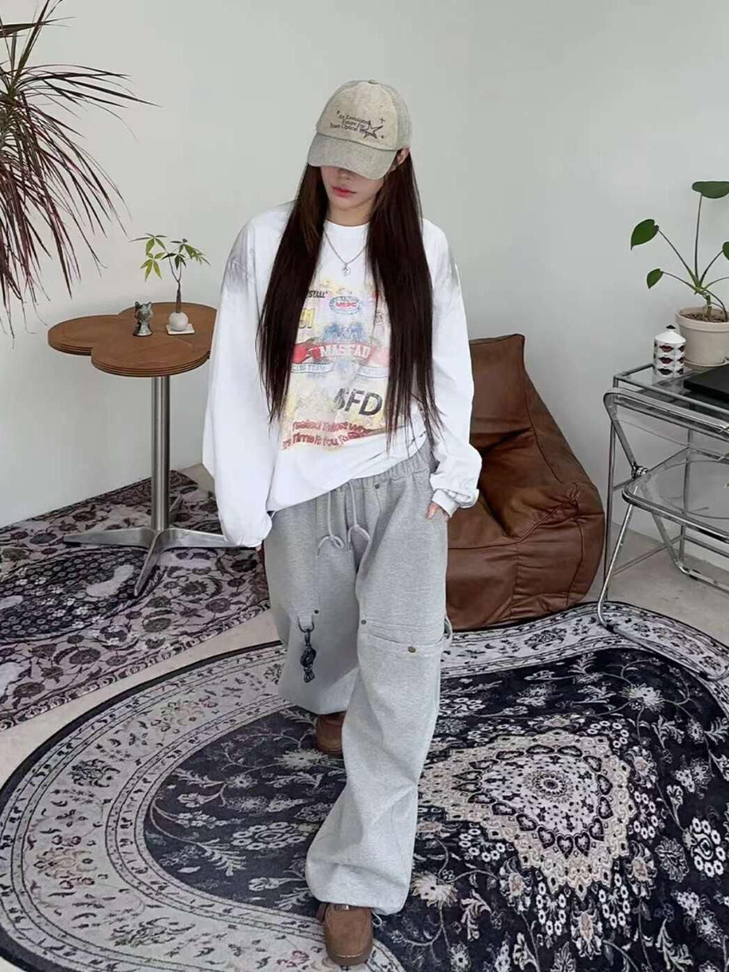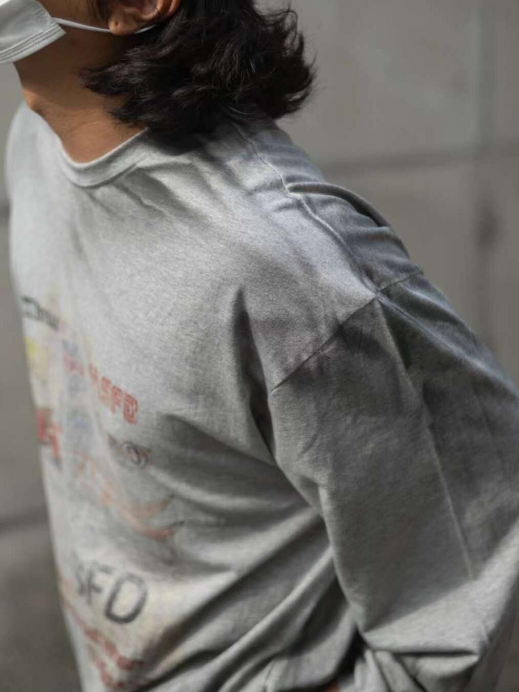 仿污英文字圖案長袖衫 TAC-0289T