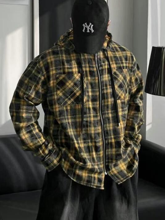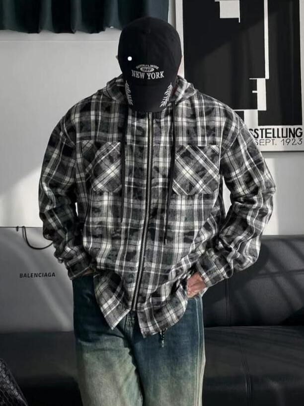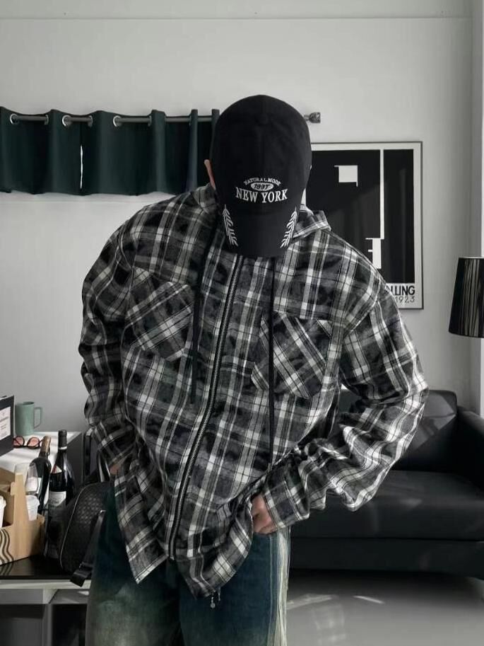 格仔連帽拉鍊外套 TAC-0307S