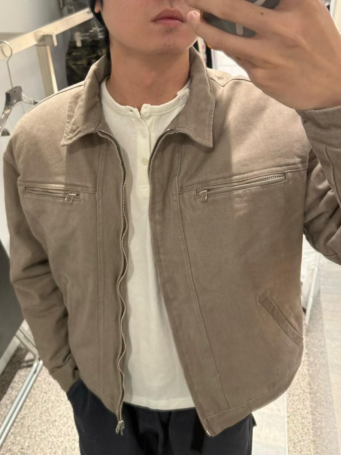 淨色反領拉鍊外套(薄夾棉) Tac-0331JK