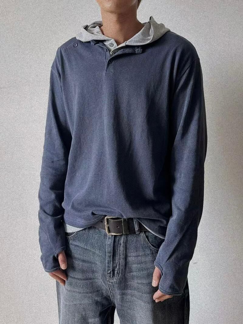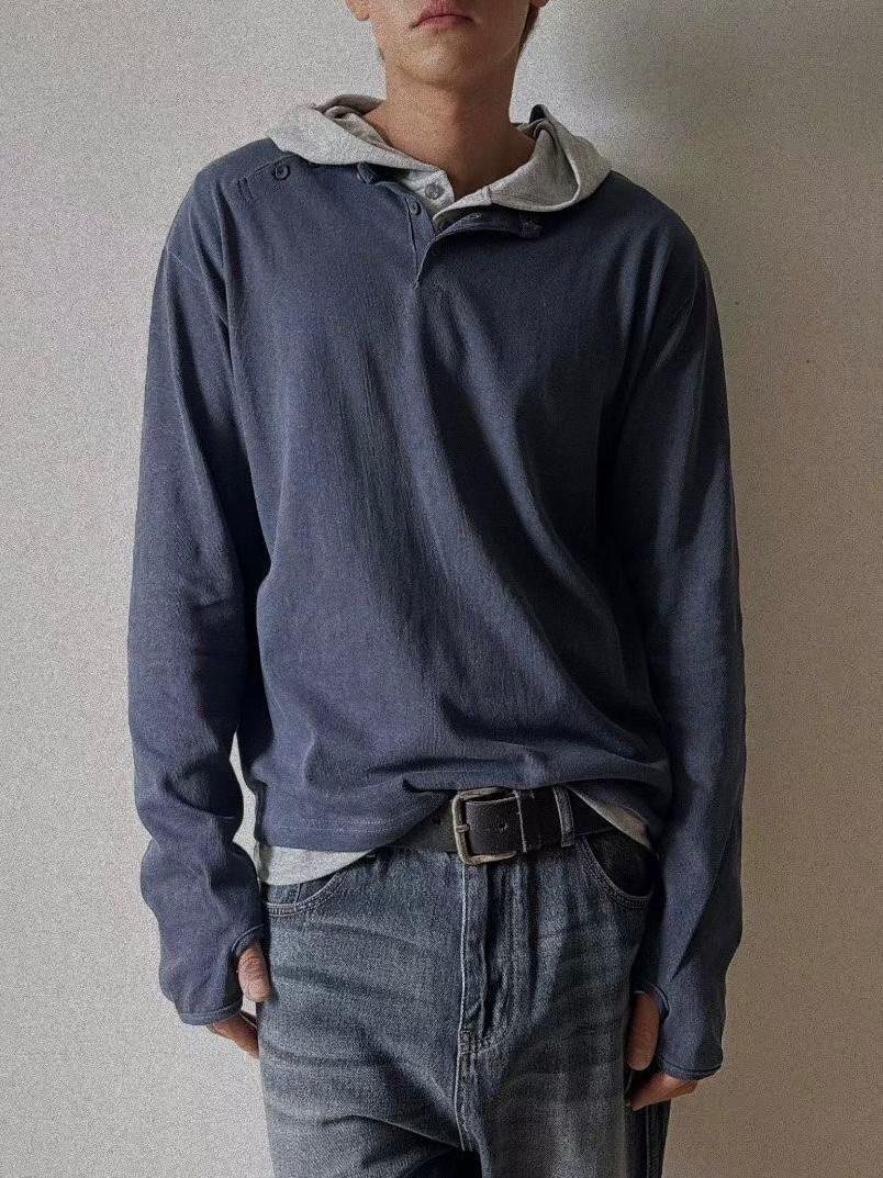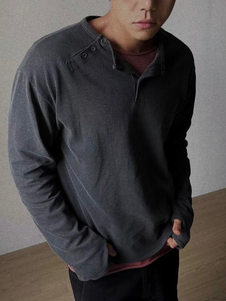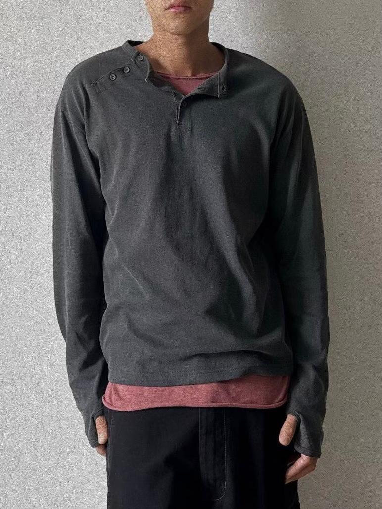 淨色半開胸長袖衫 Tac-0332T