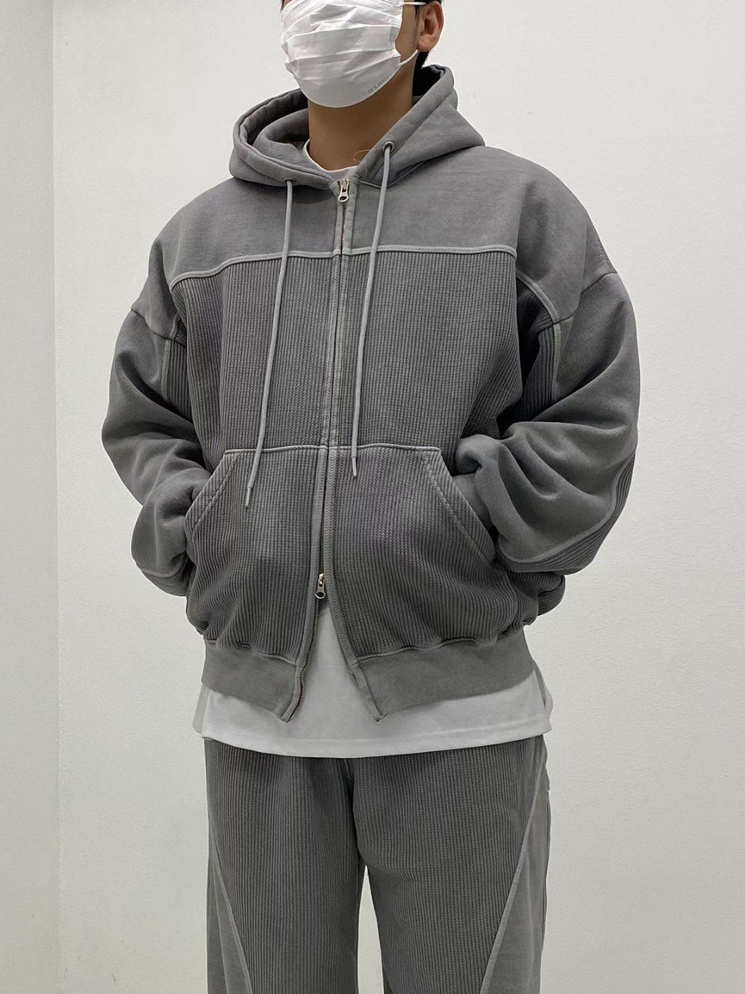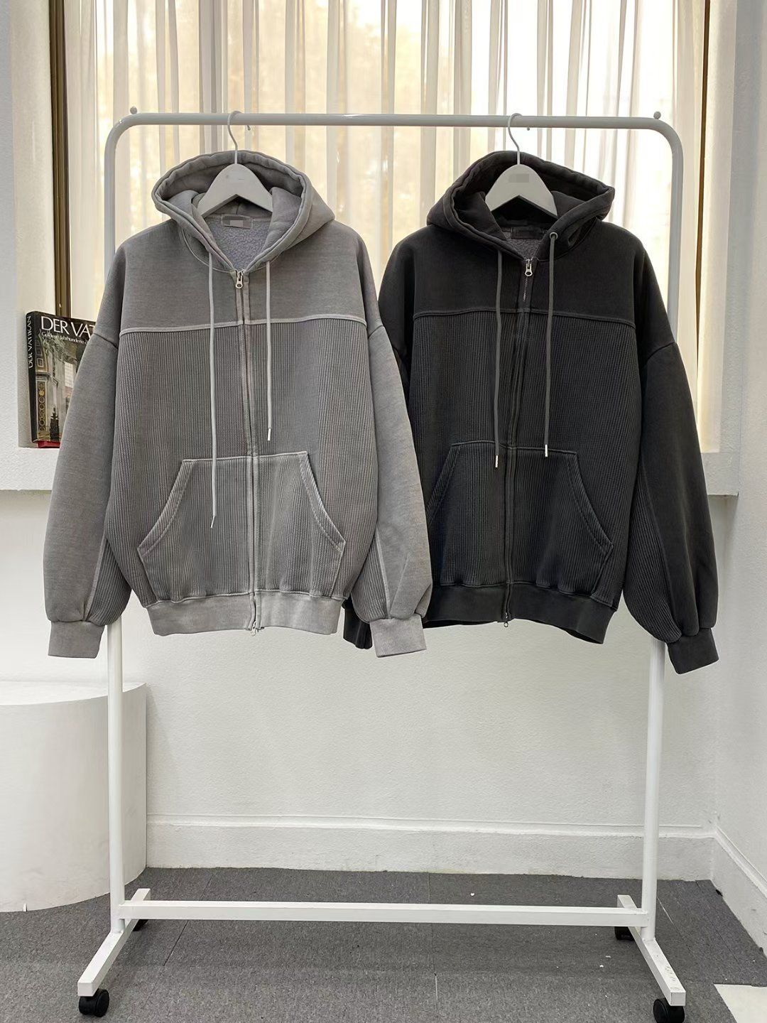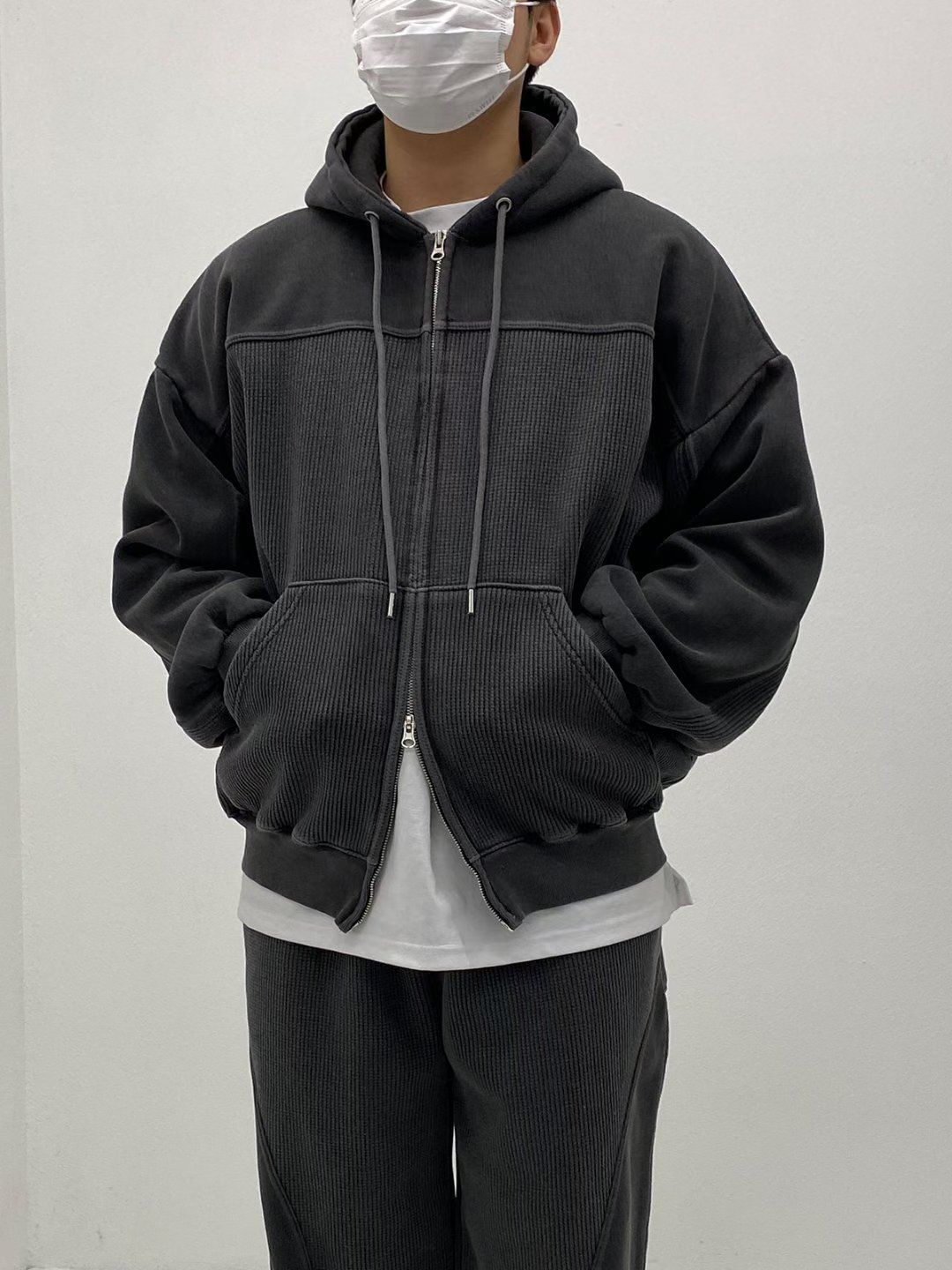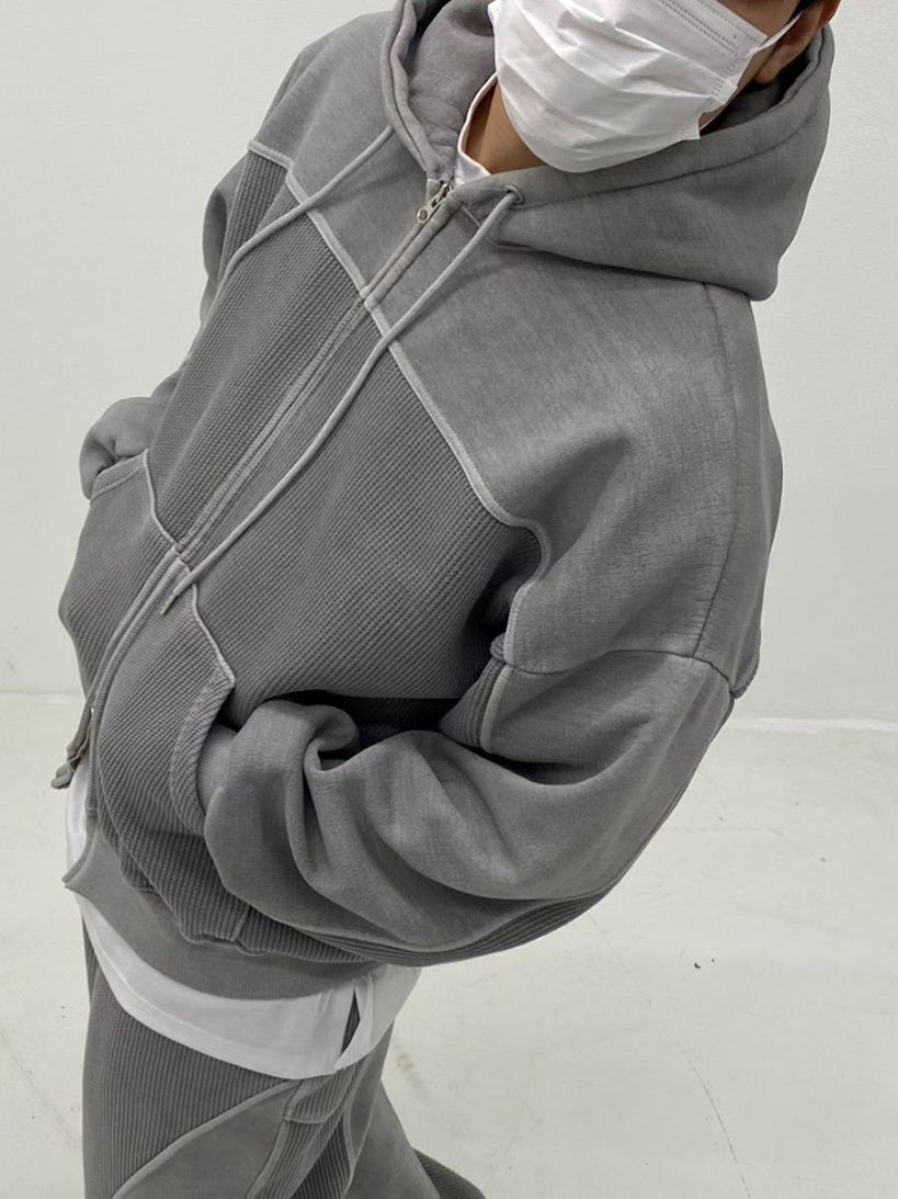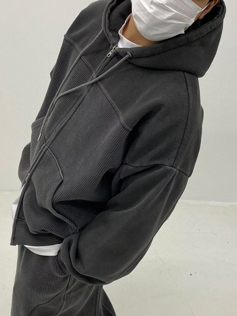 洗水淨色連帽拉鍊外套(抓毛底) TAC-0399JK