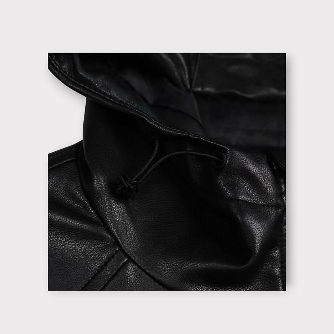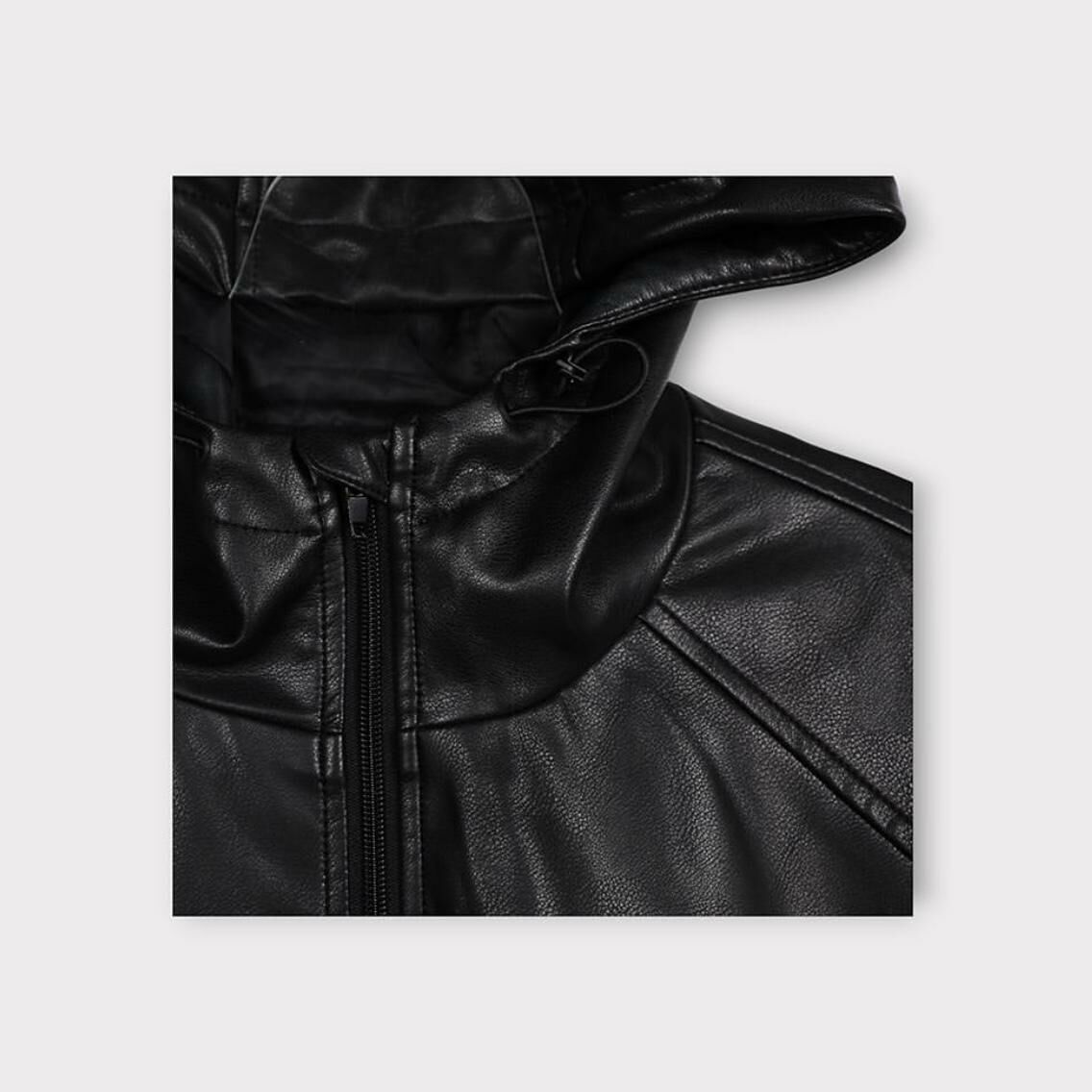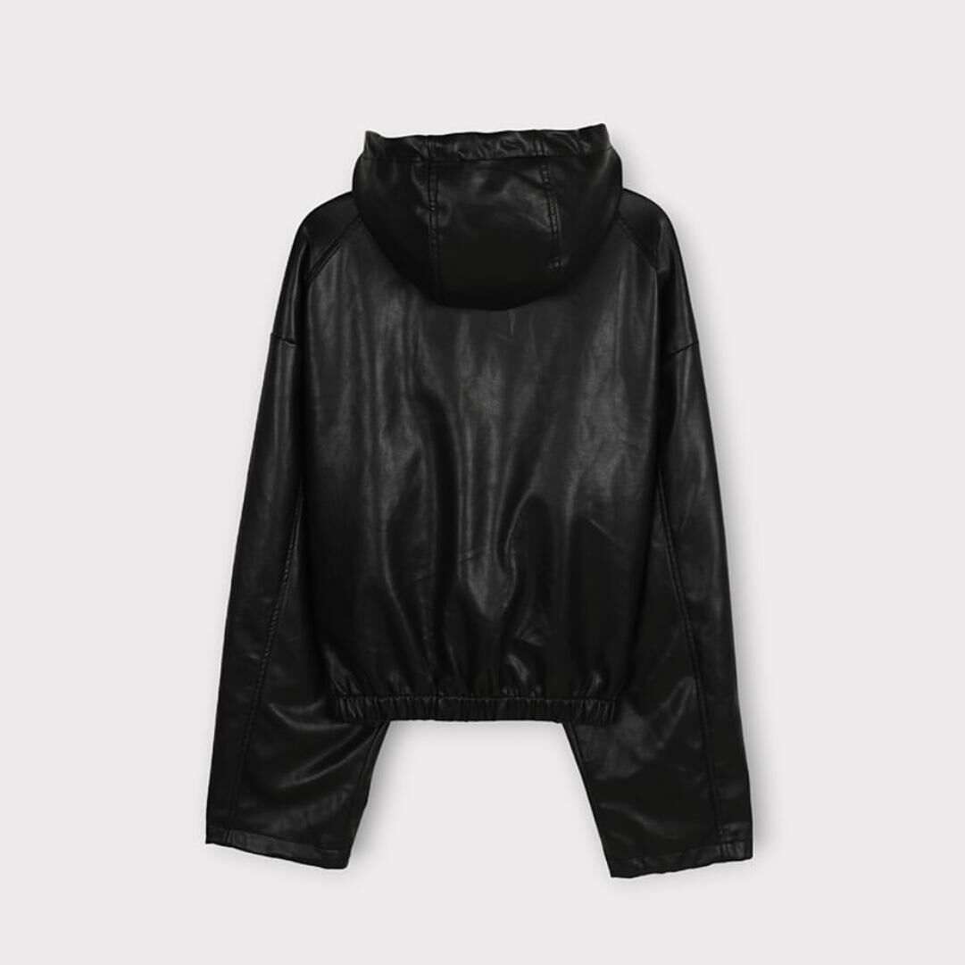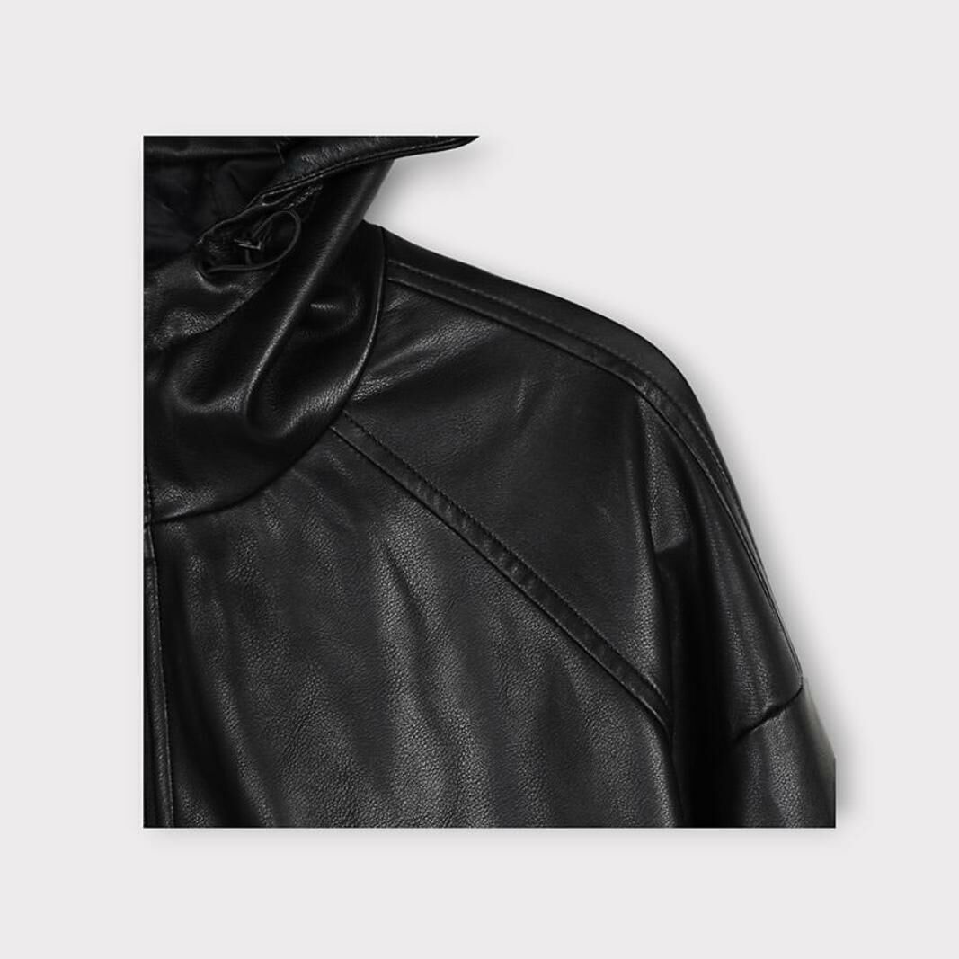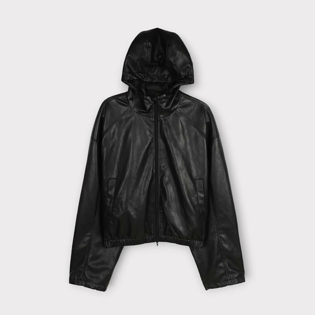 淨色連帽合成皮拉鍊外套 taptaptap-029JK