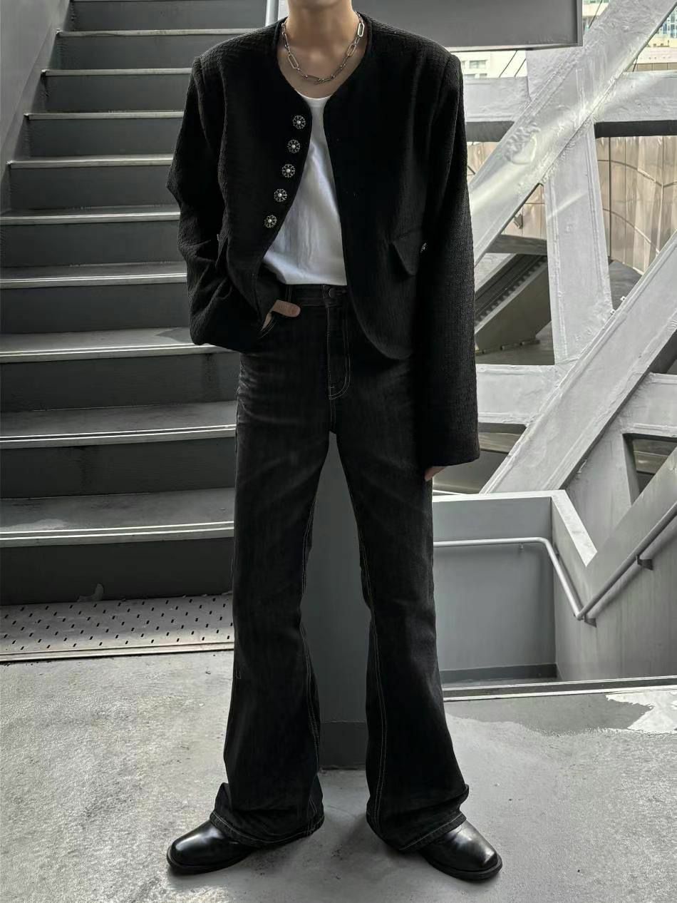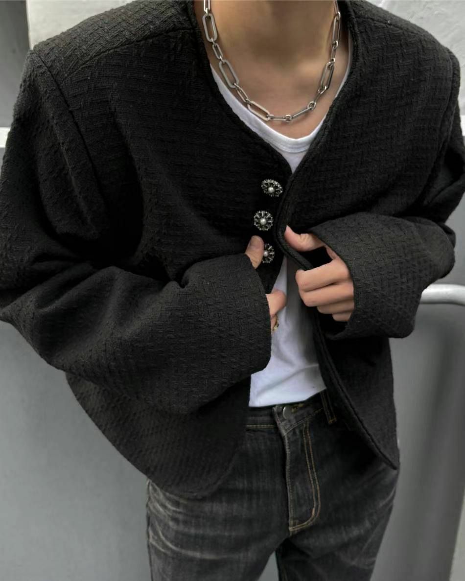 淨色暗紋開胸短身外套 taptaptap-034JK