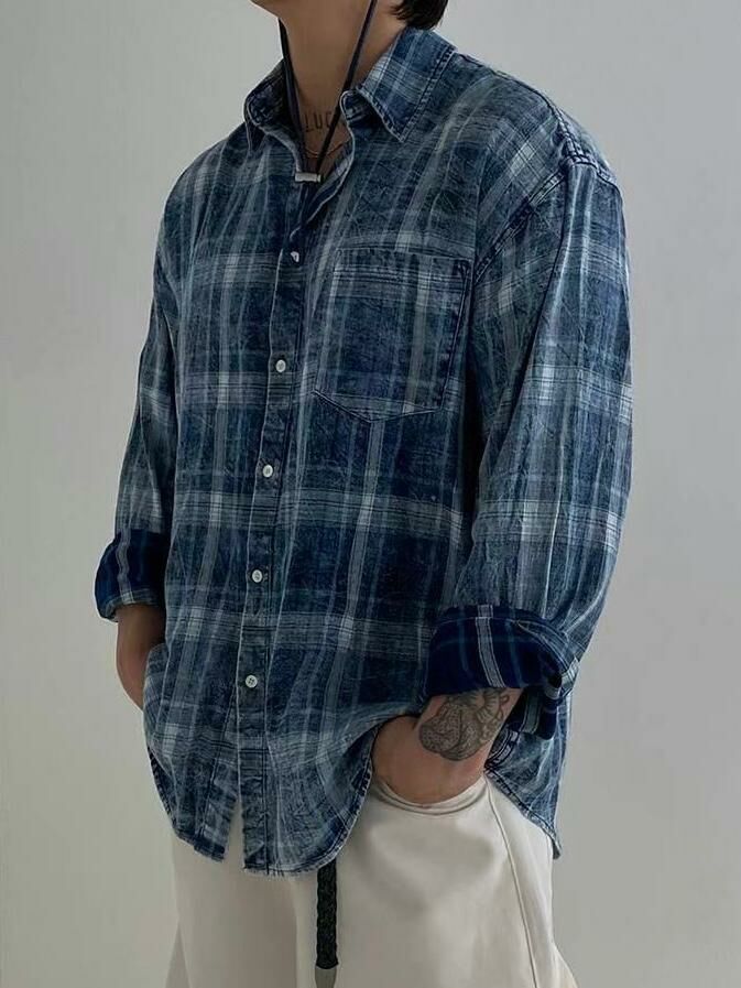 格仔長袖恤衫 taptaptap-042S