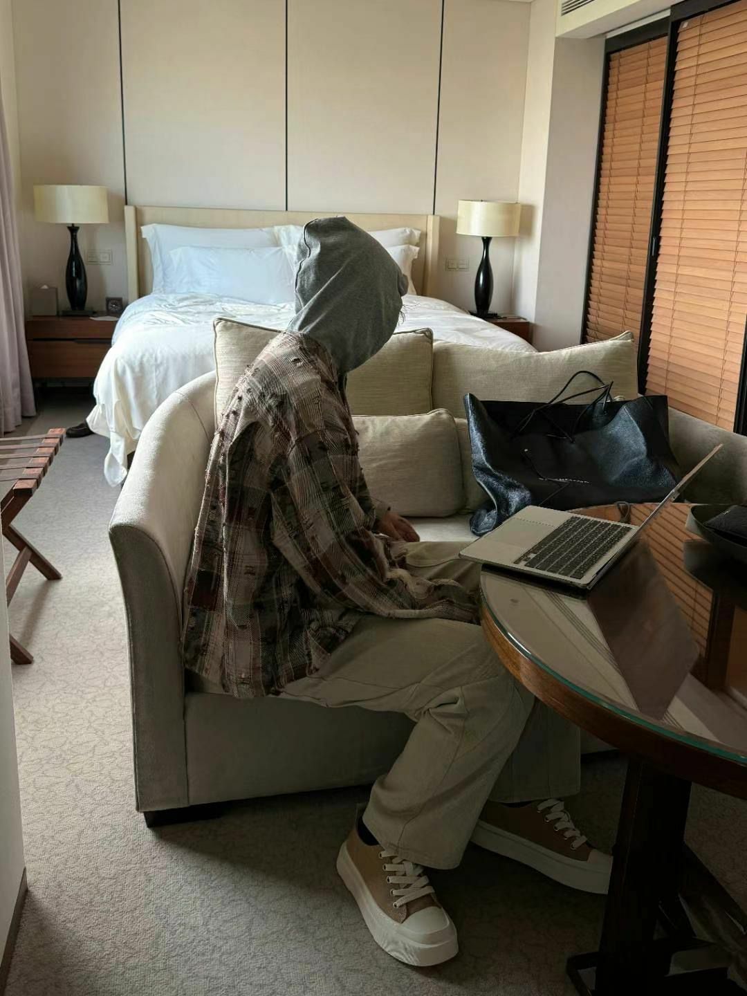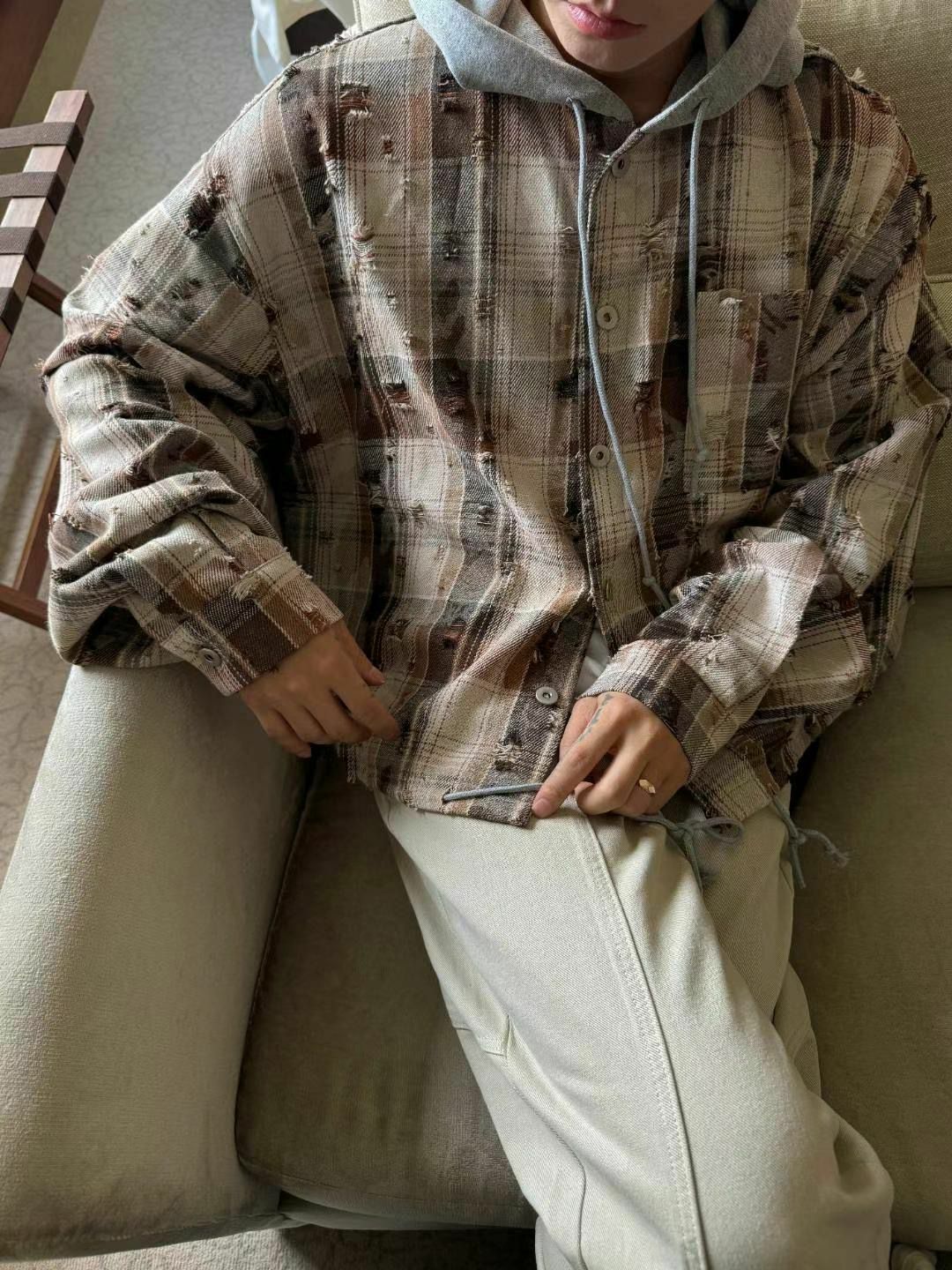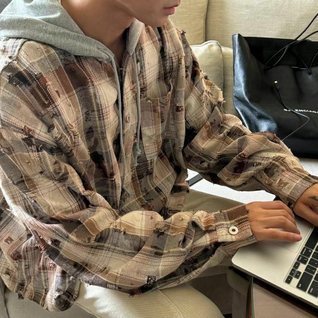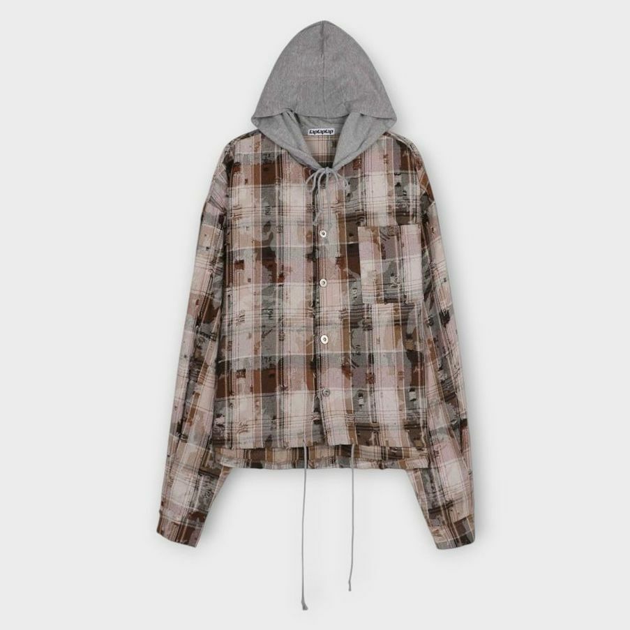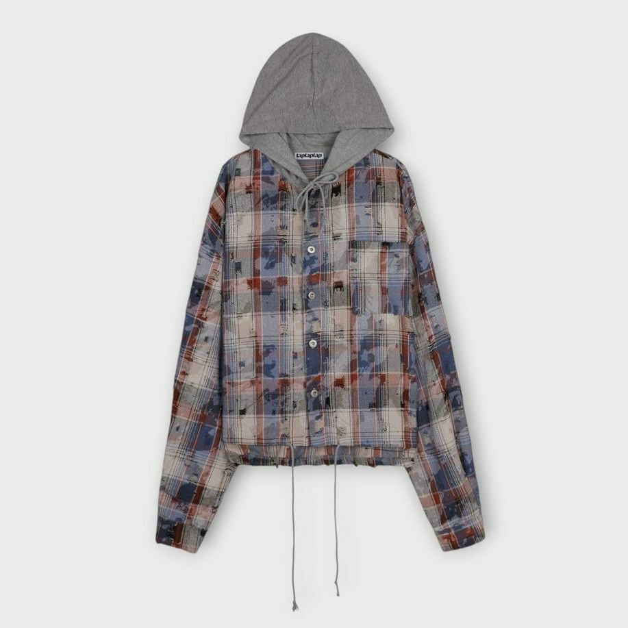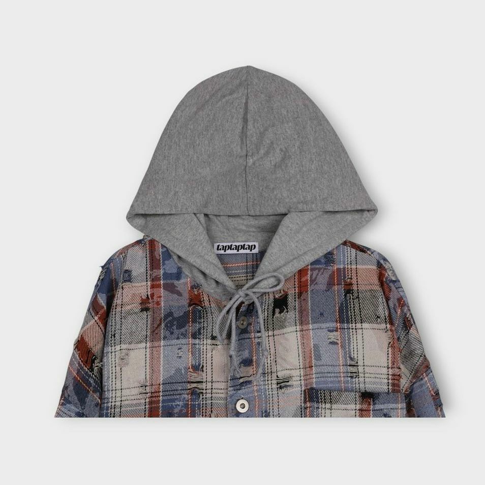 格仔連帽長袖恤衫 taptaptap-060S