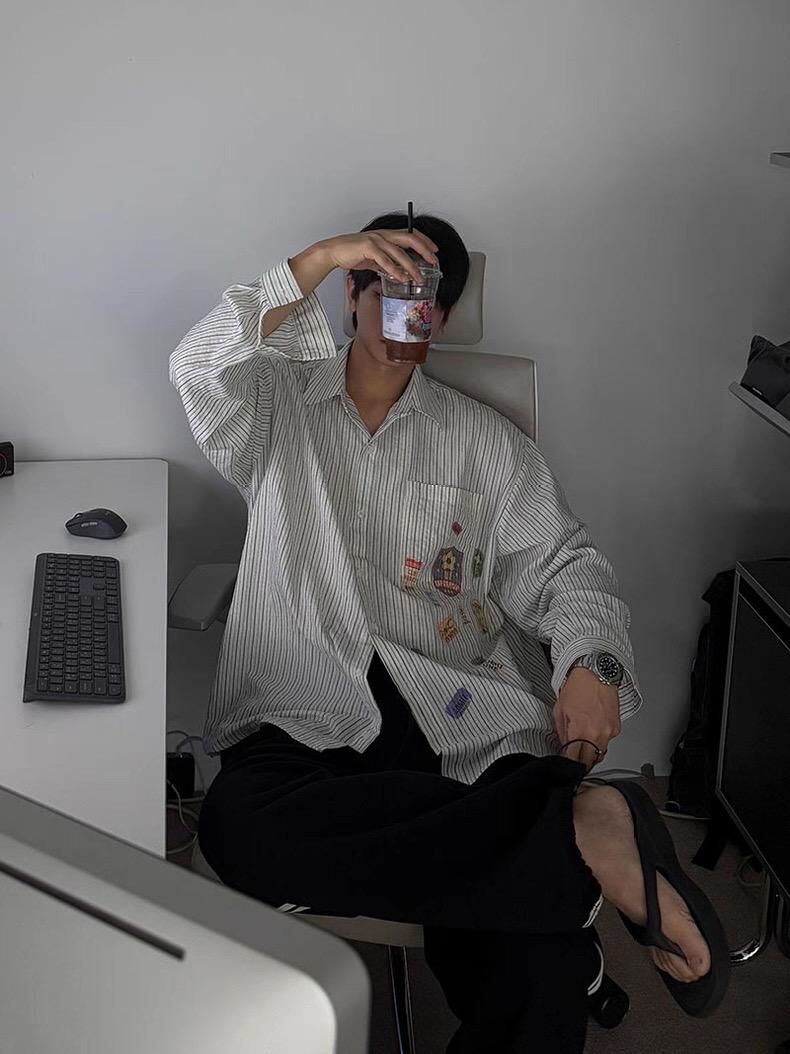 圖案直間長袖恤衫 taptaptap-078S