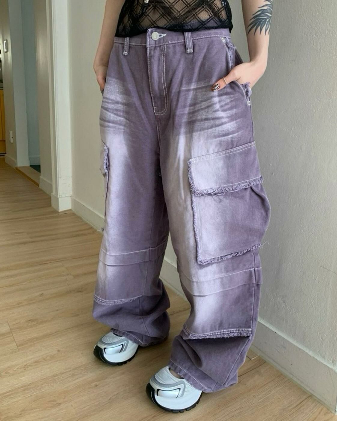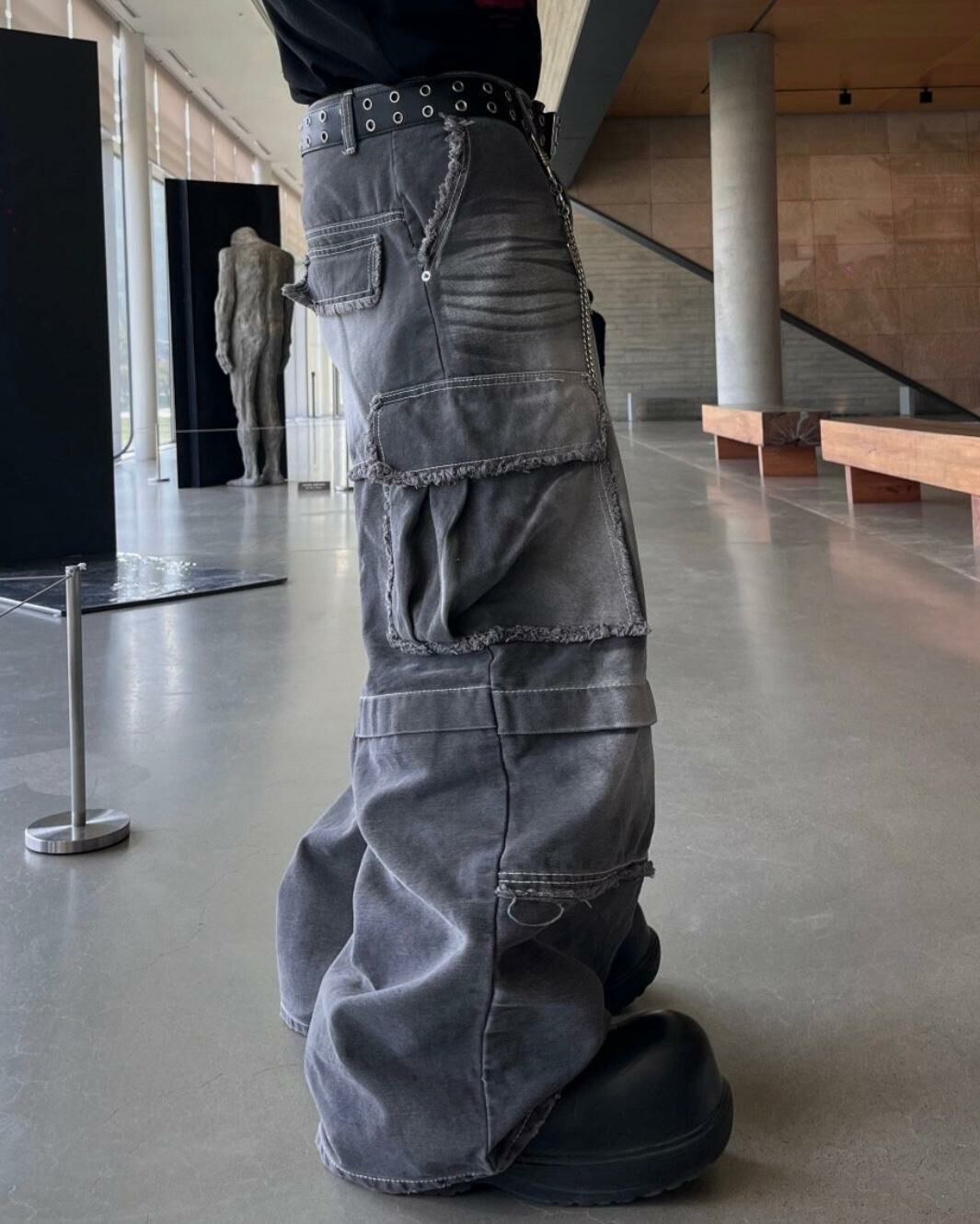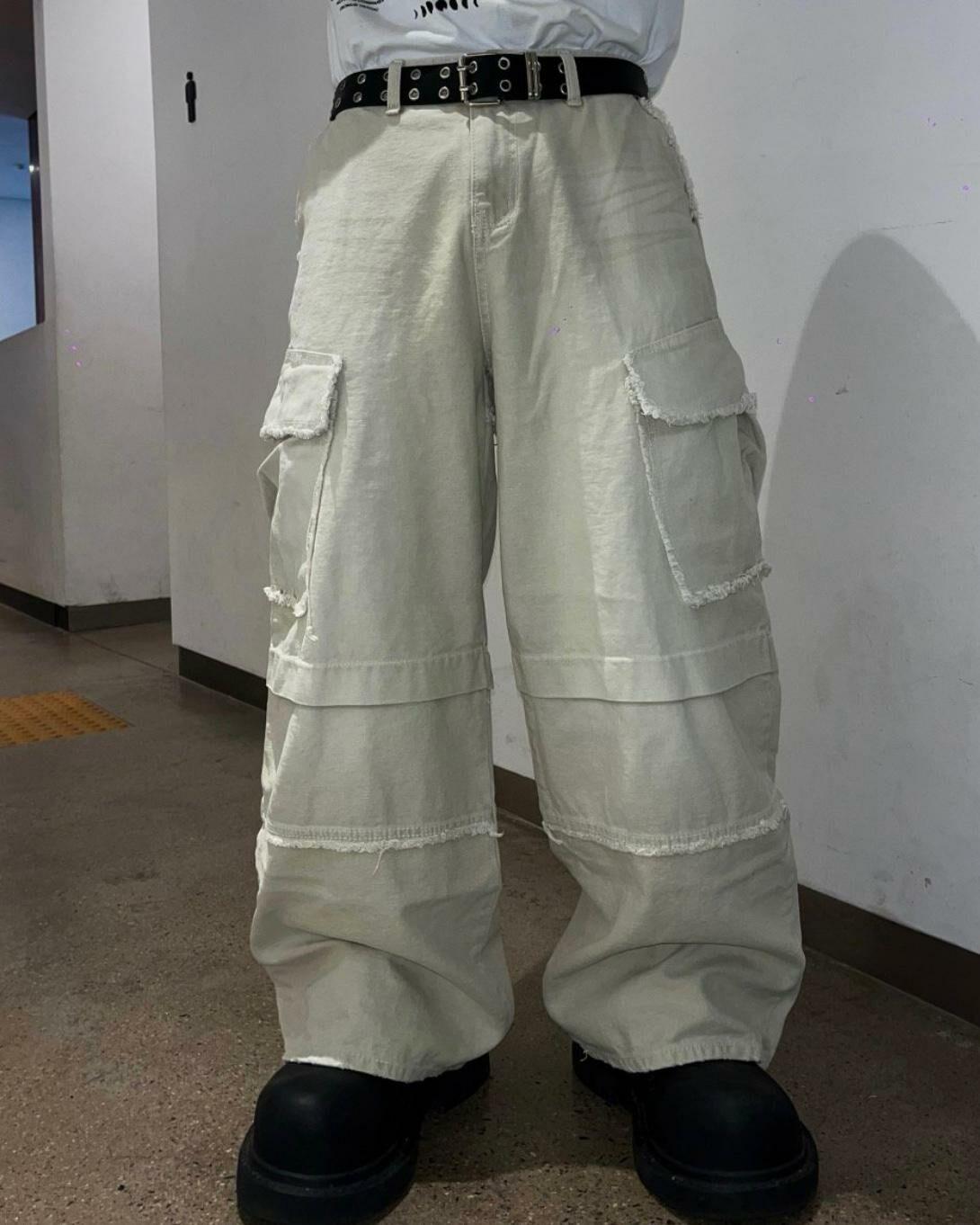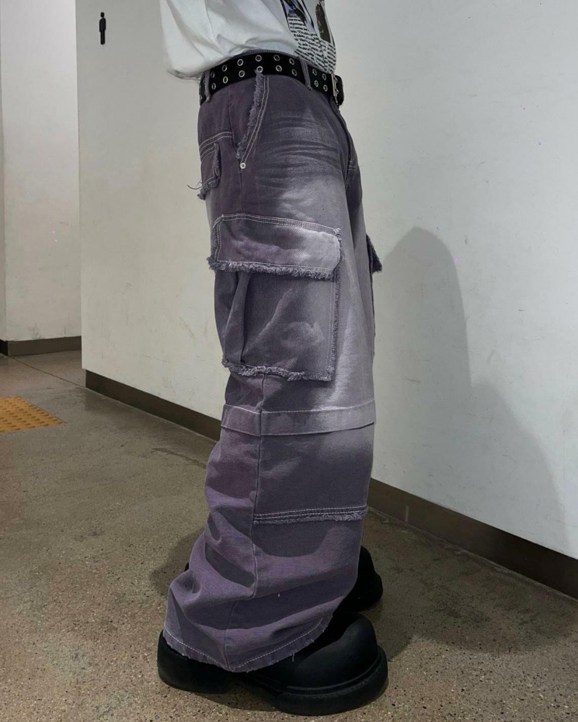 洗水淨色工裝鬆身褲 UNUSED-012P