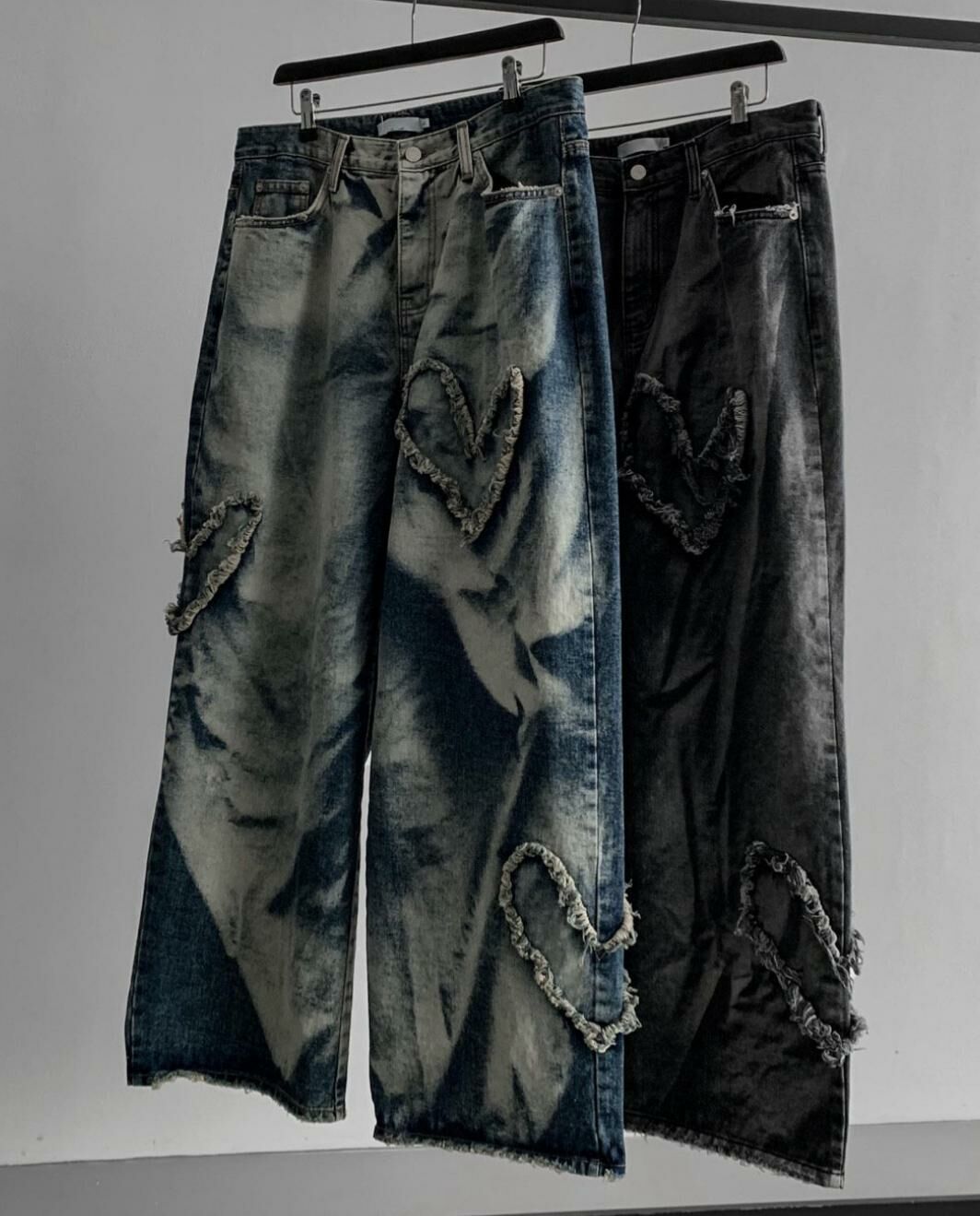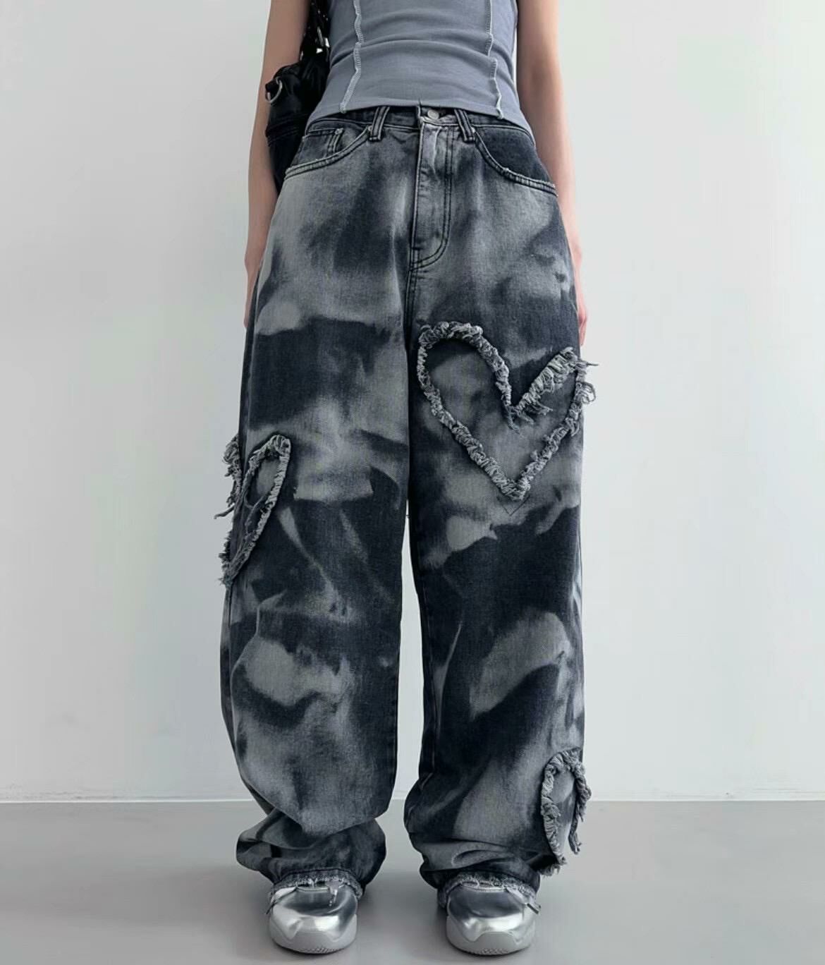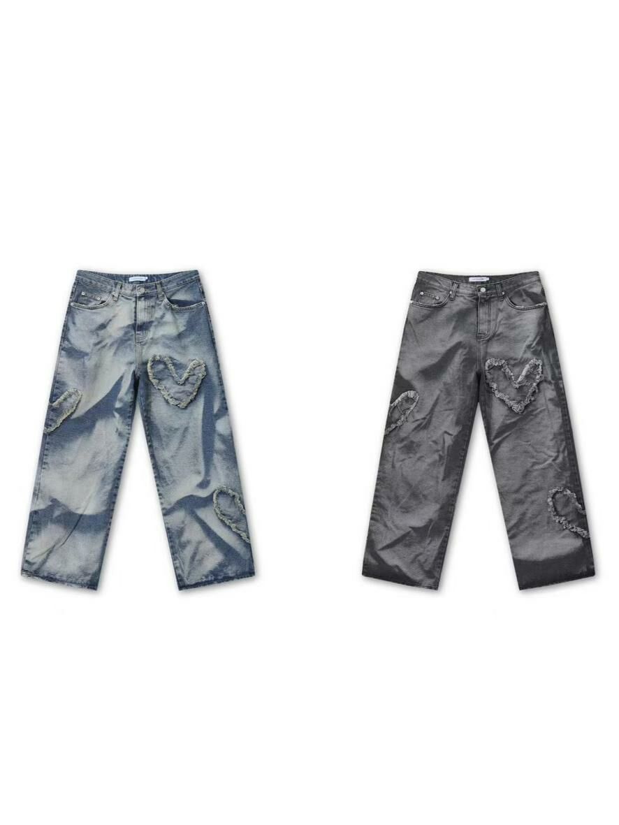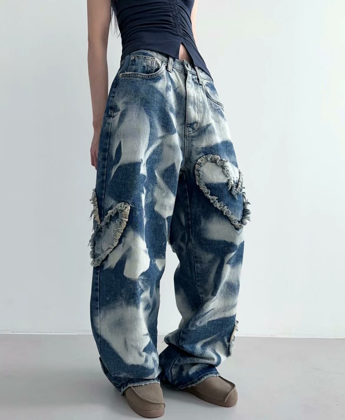 紮染心心鬆身牛仔褲 UNUSED-023P