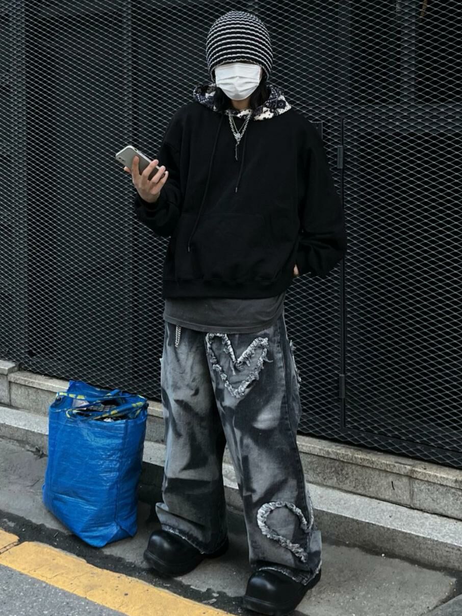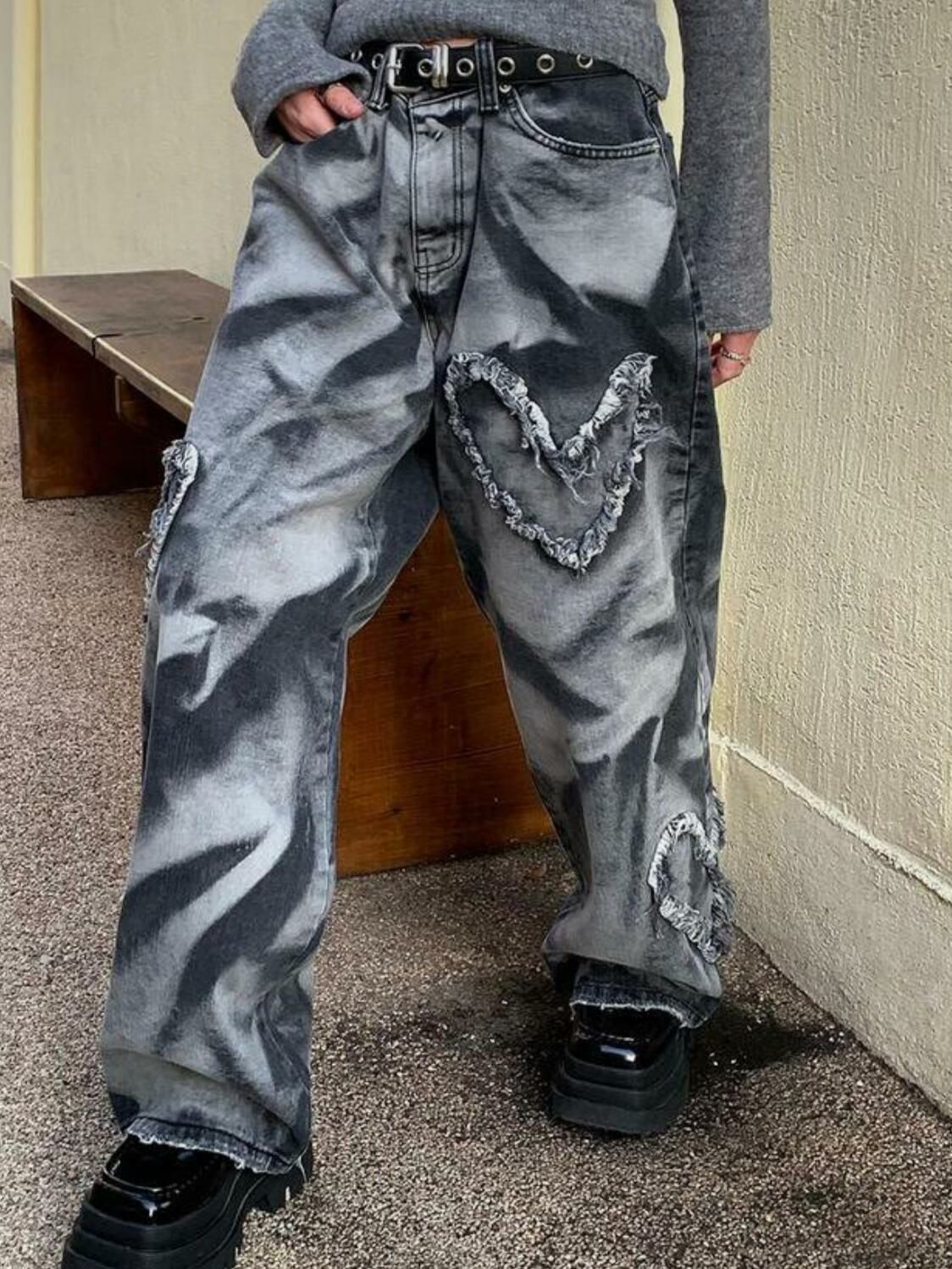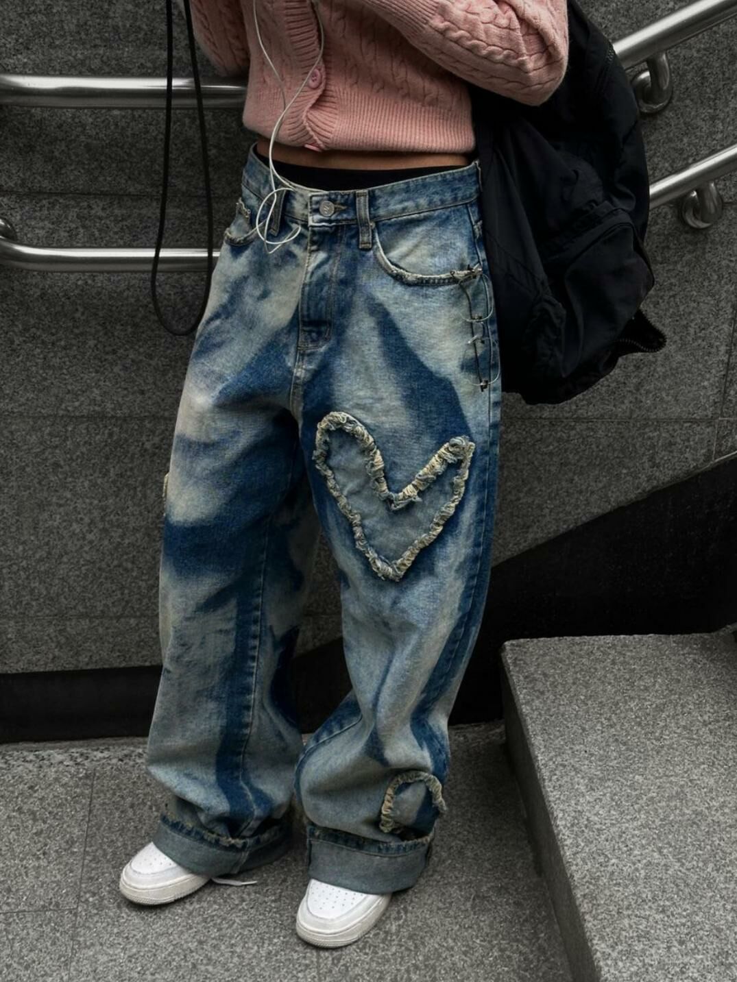 紮染心心鬆身牛仔褲 UNUSED-023P