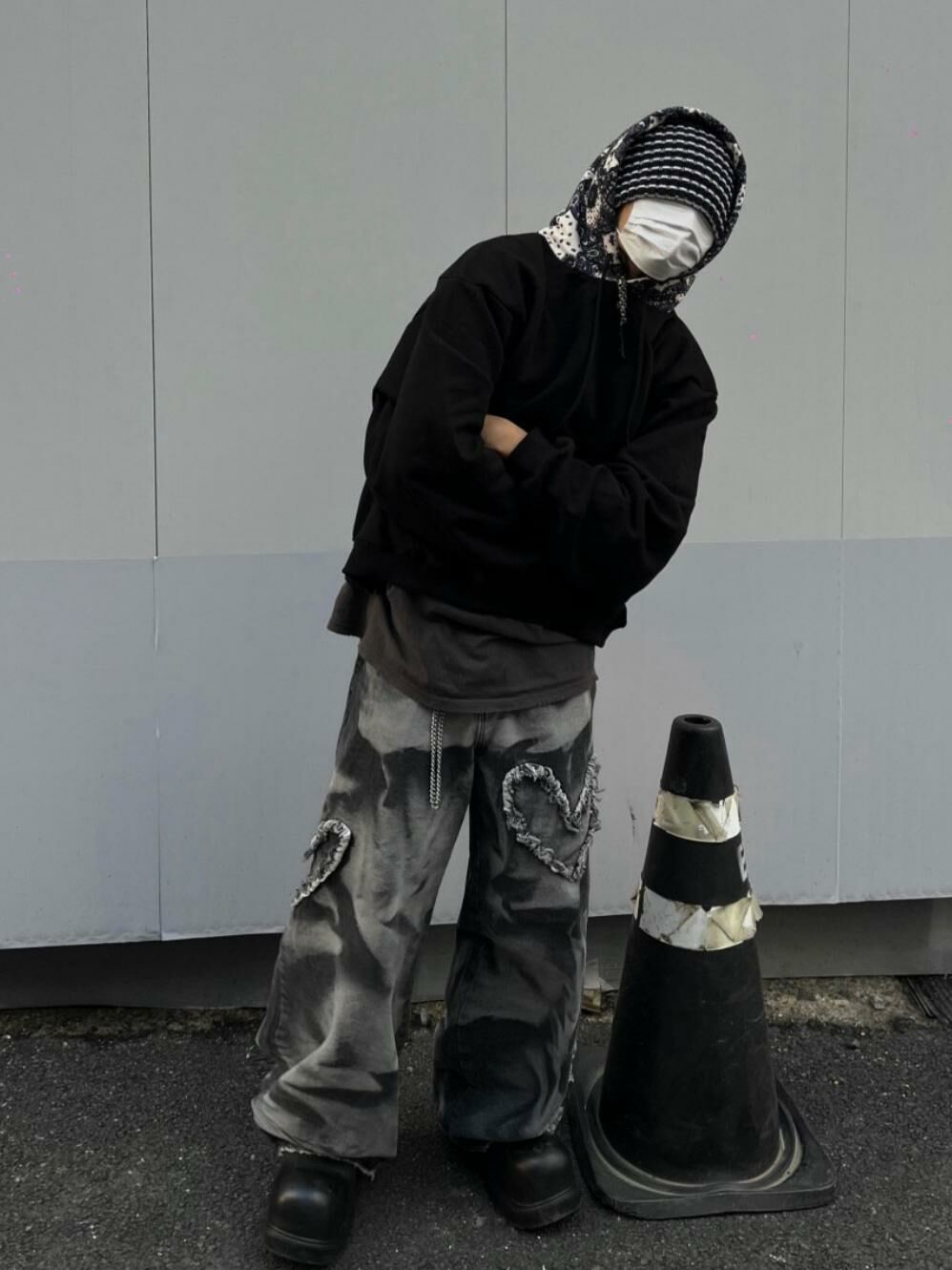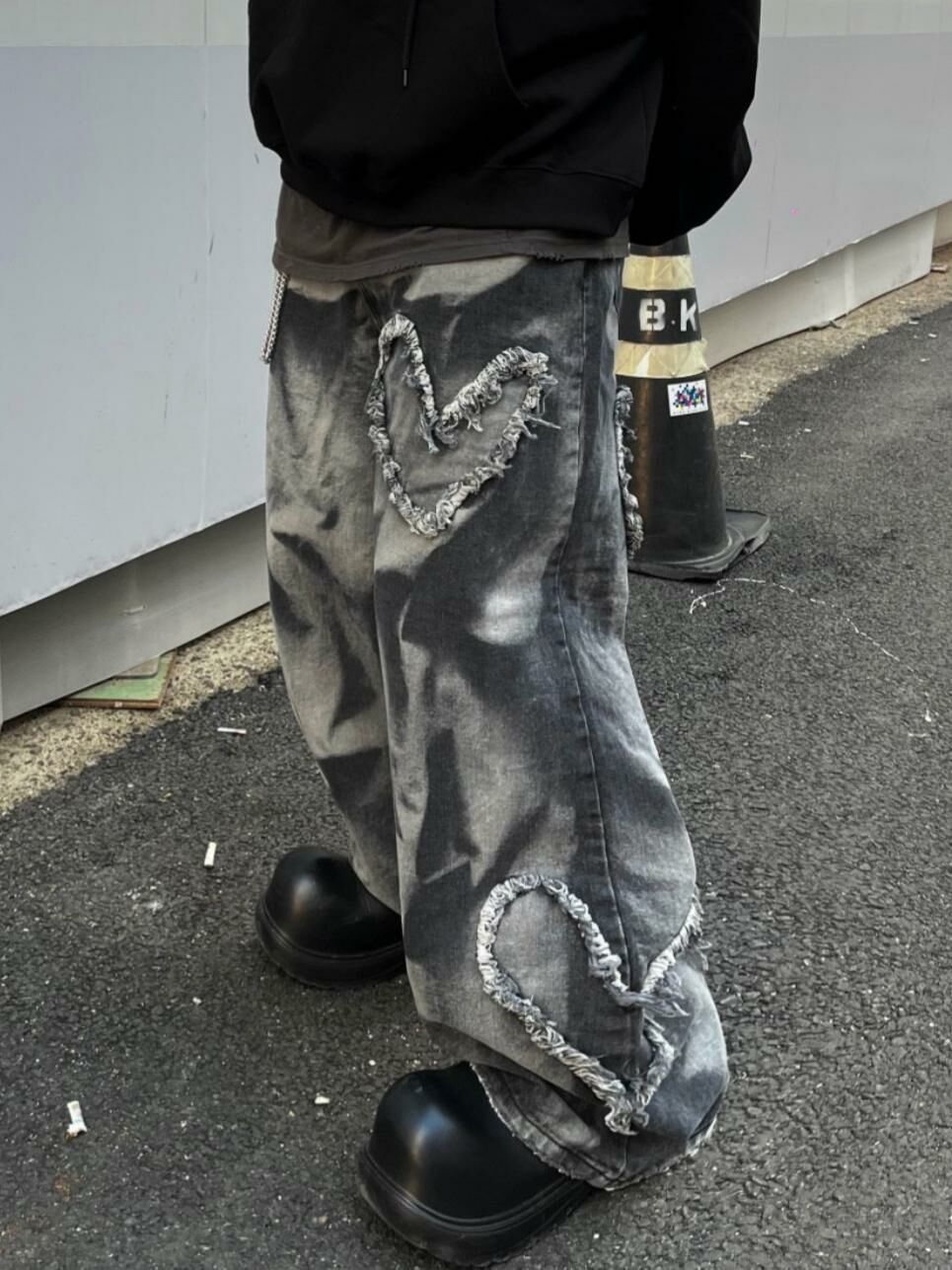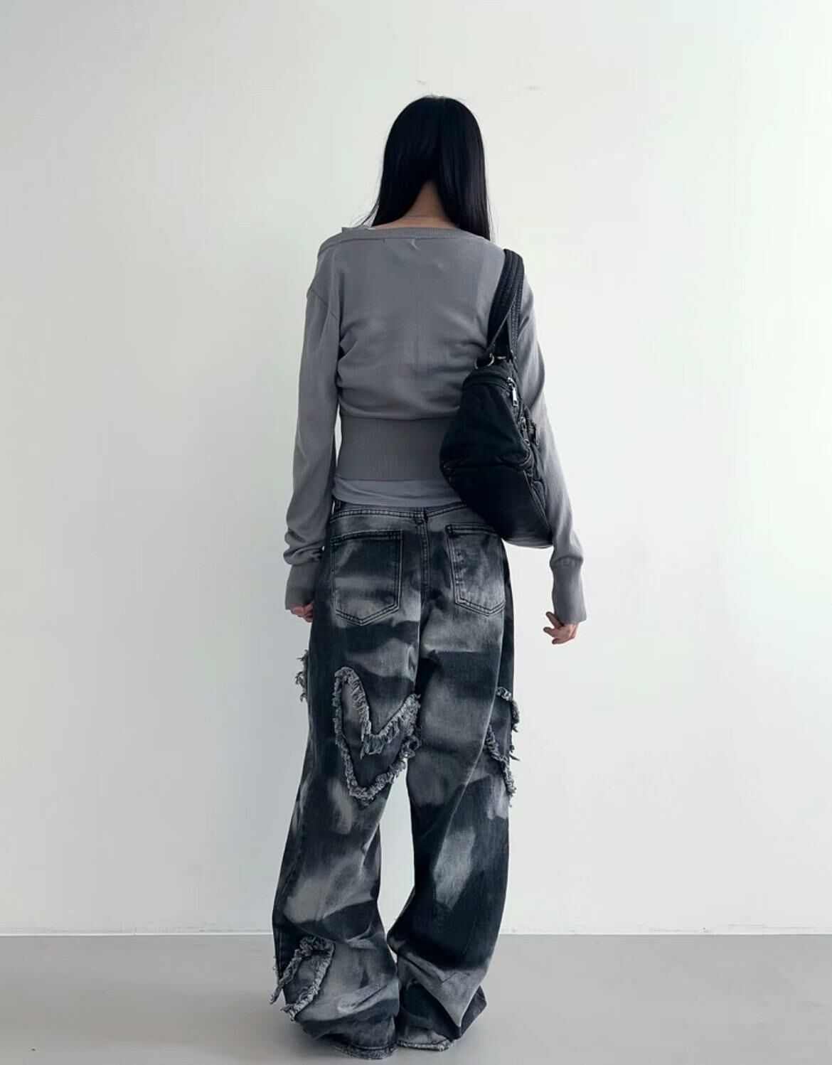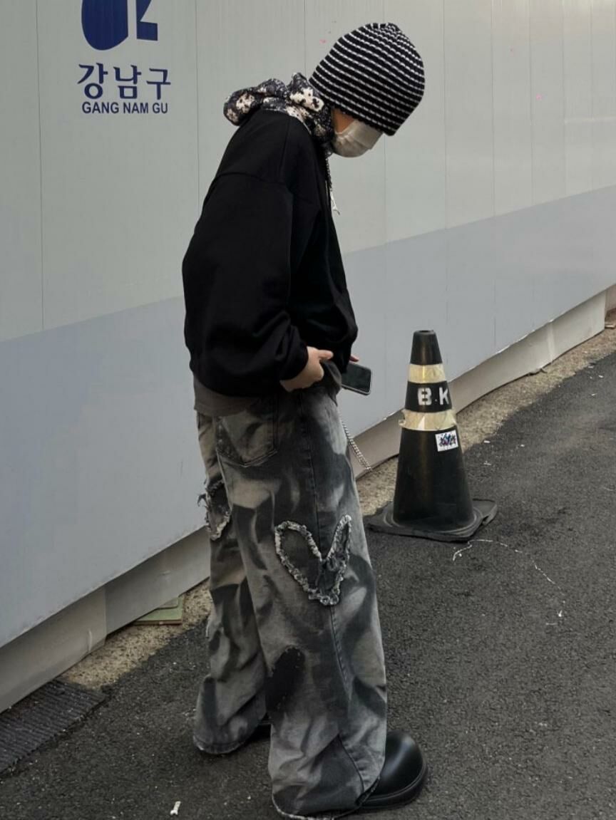 紮染心心鬆身牛仔褲 UNUSED-023P