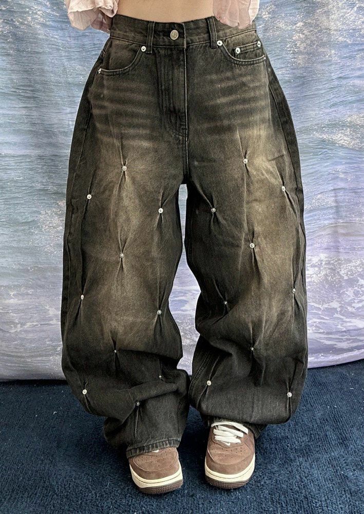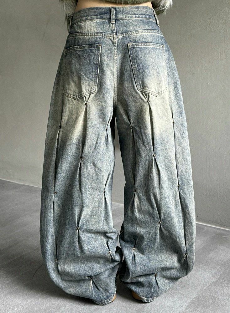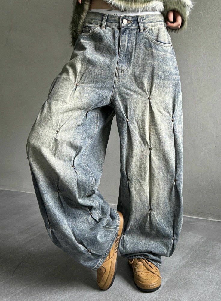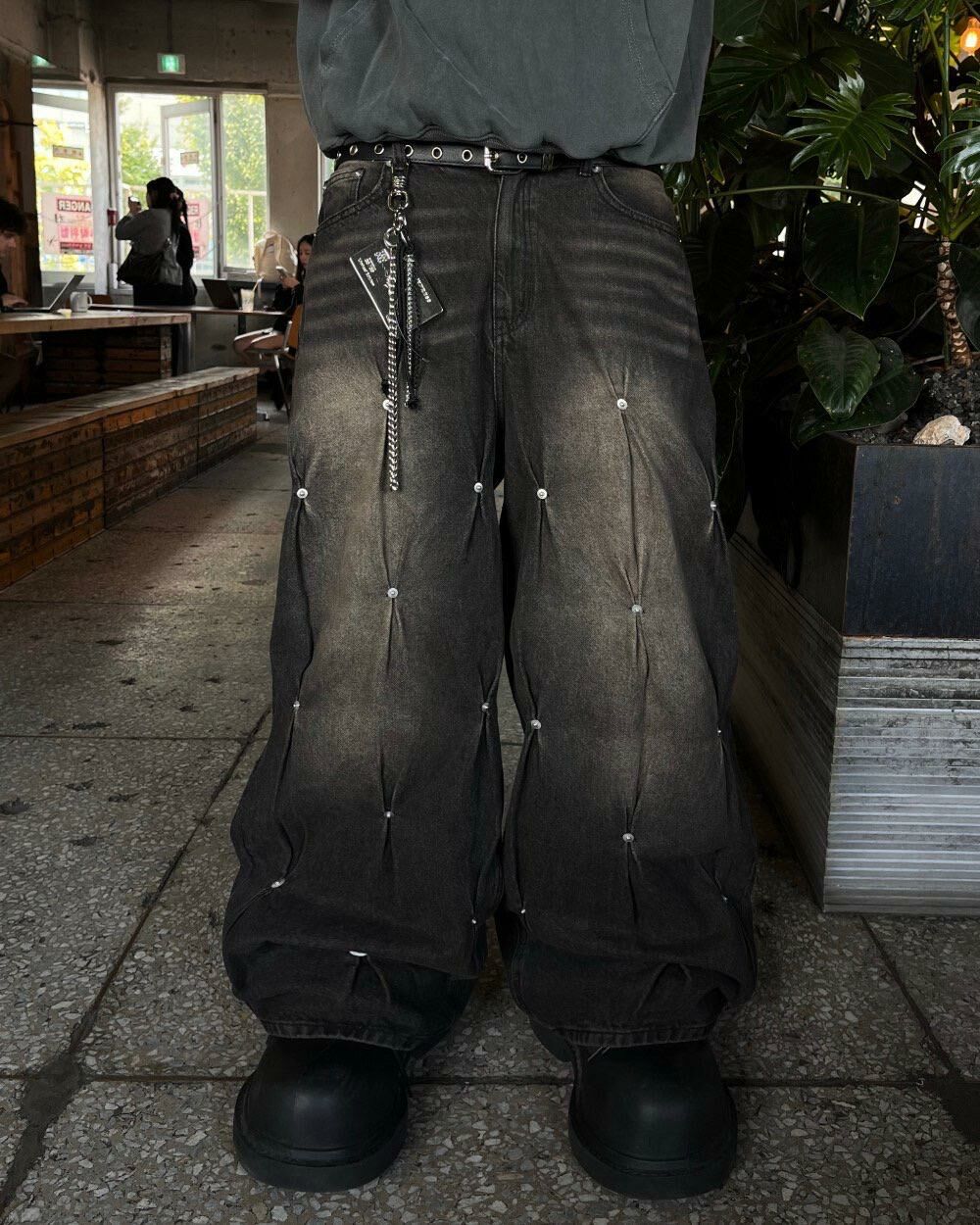 洗水釘子鬆身牛仔褲 UNUSED-048P