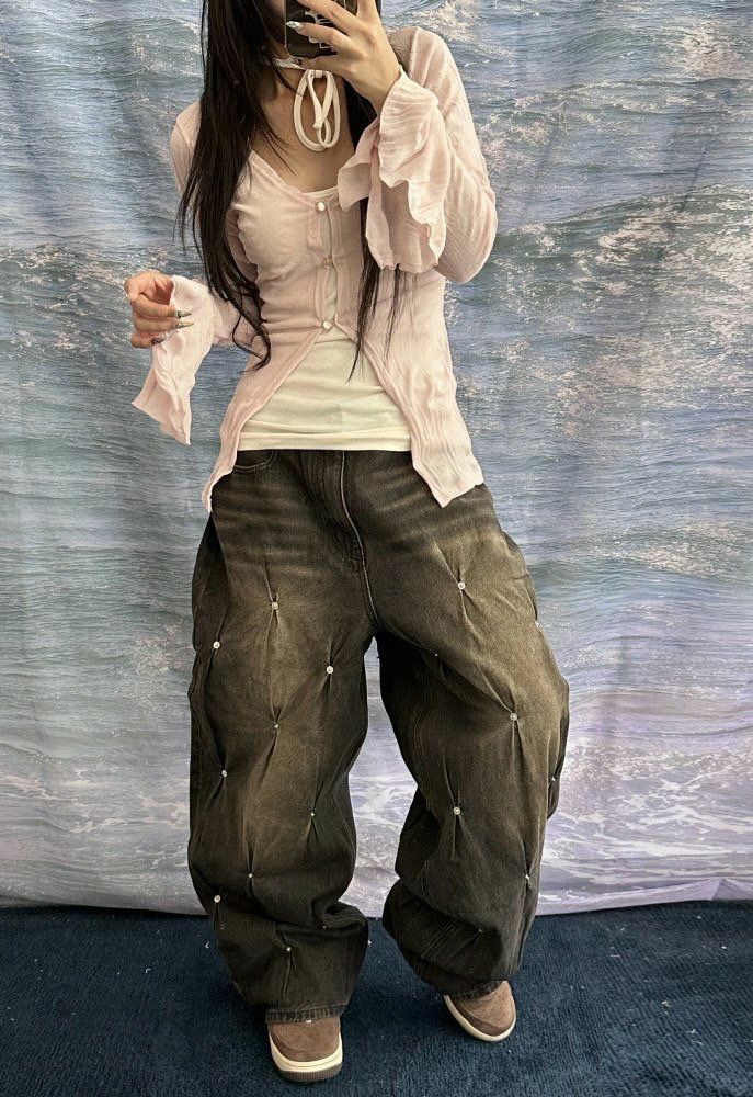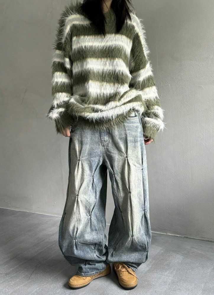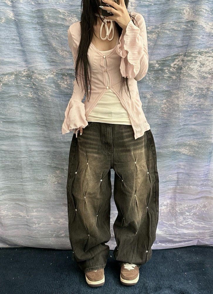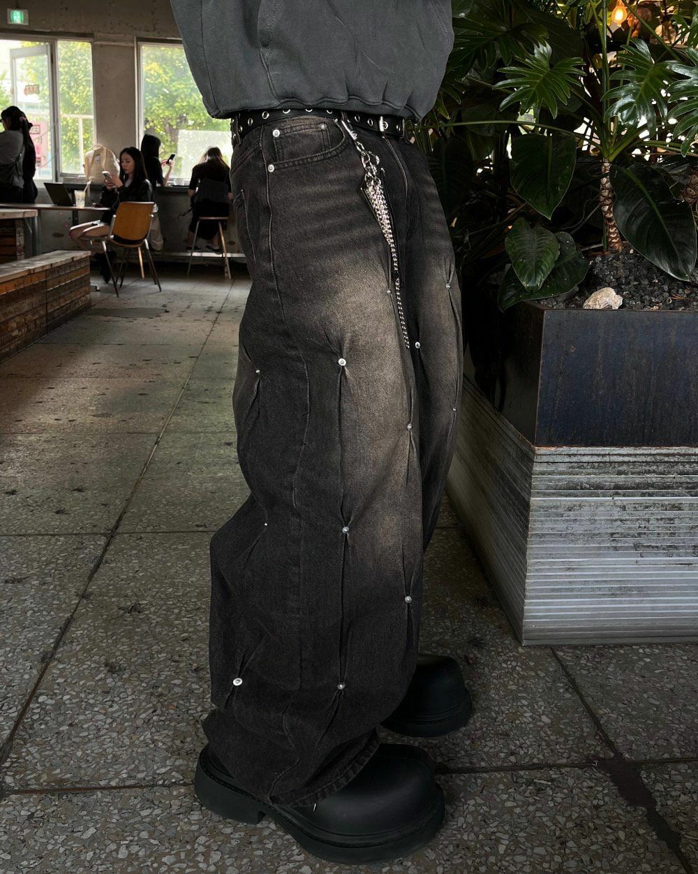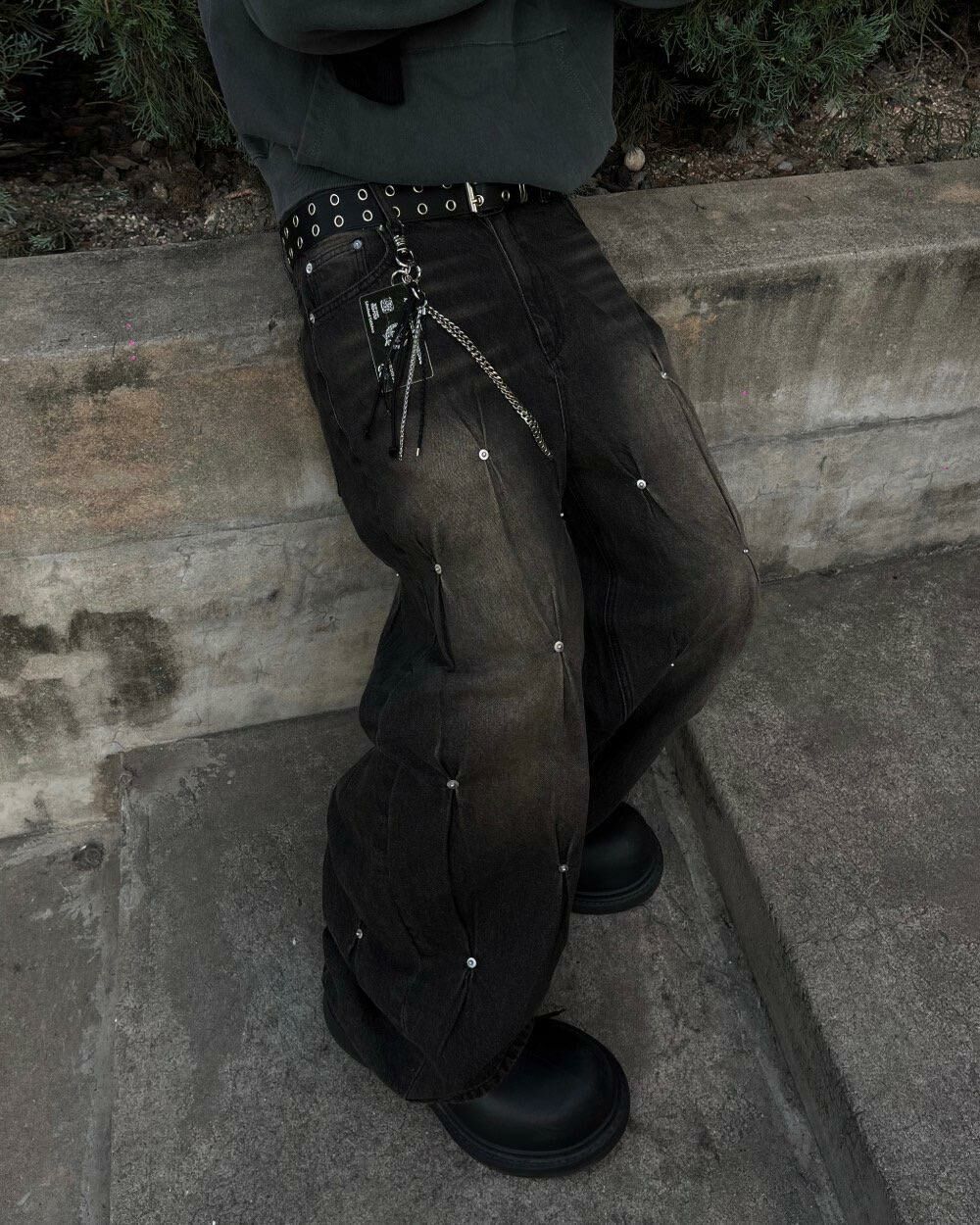 洗水釘子鬆身牛仔褲 UNUSED-048P