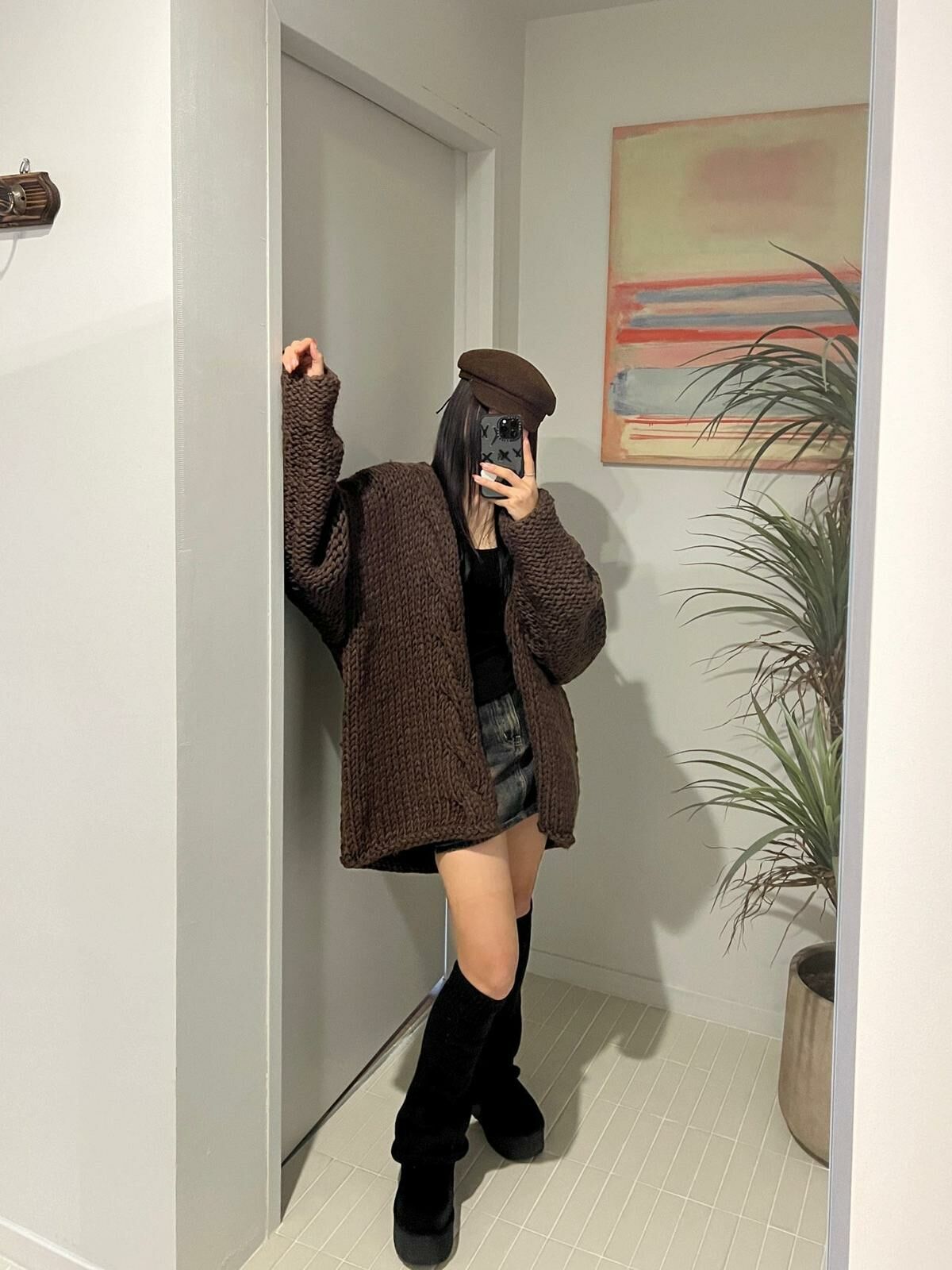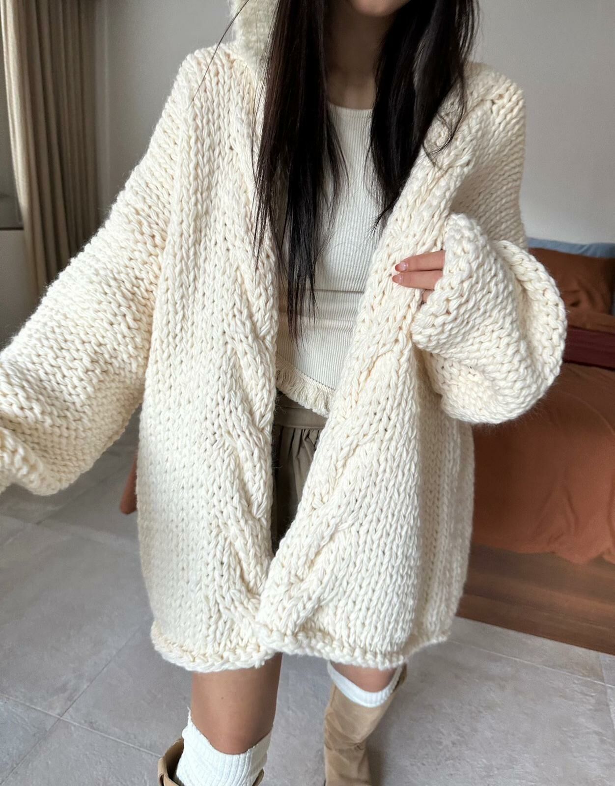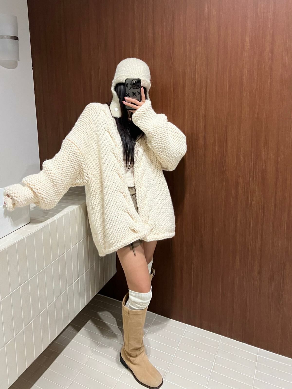 淨色暗紋開胸針織外套 UNUSED-051JK
