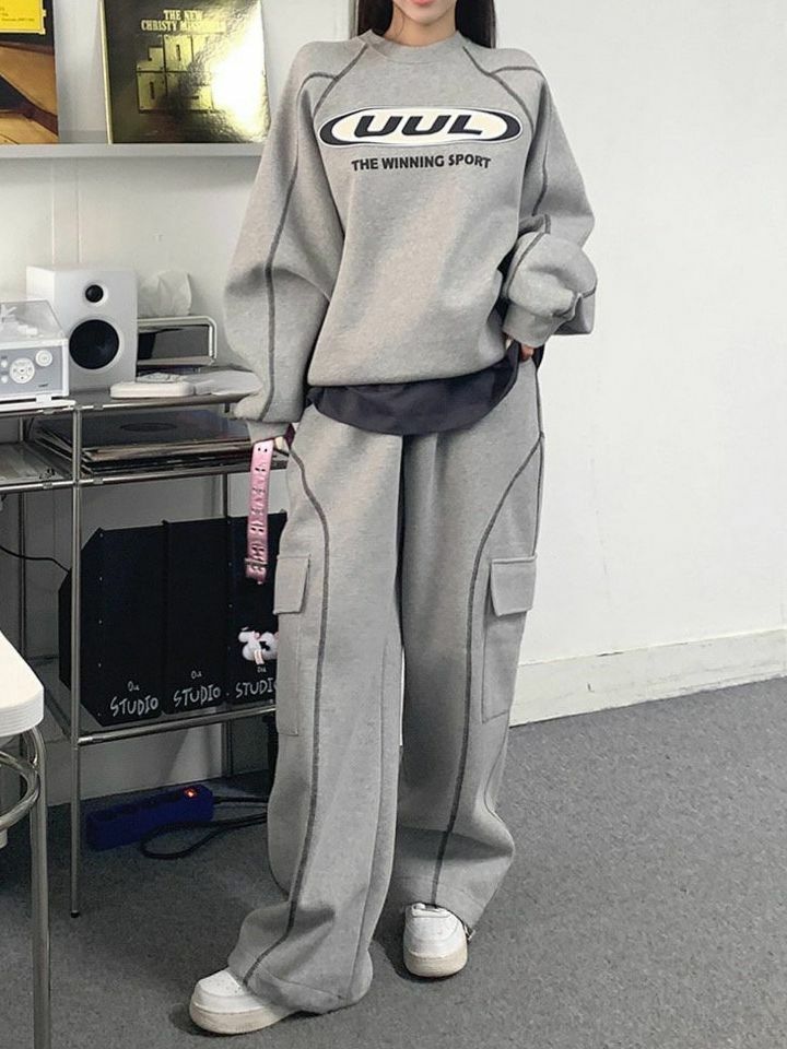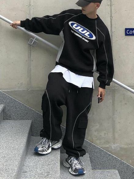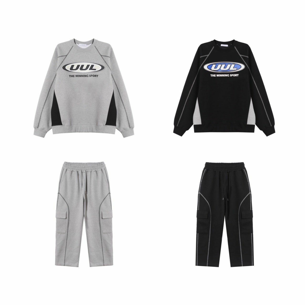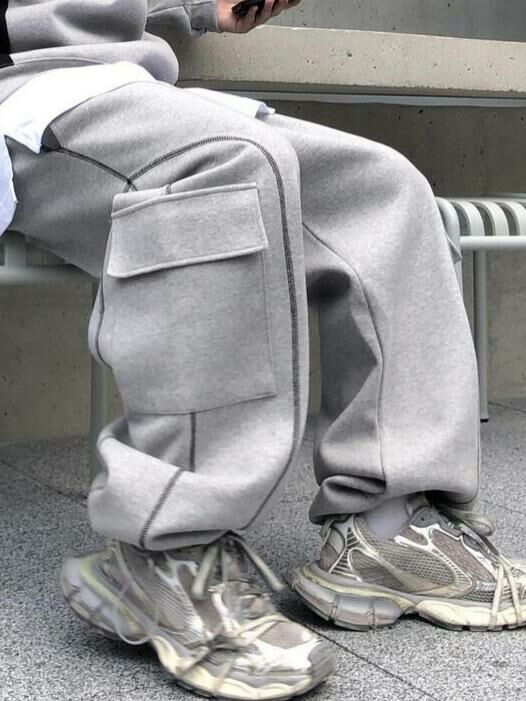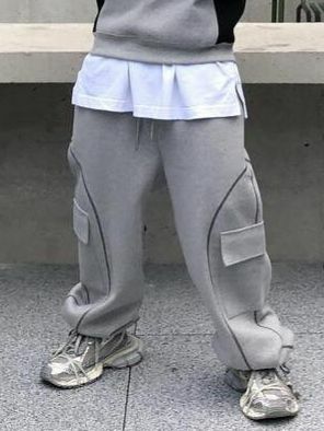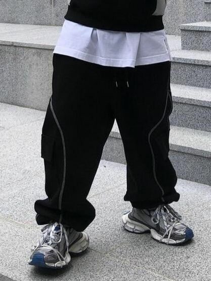 淨色可束腳工裝鬆身運動褲 UNUSED-058P