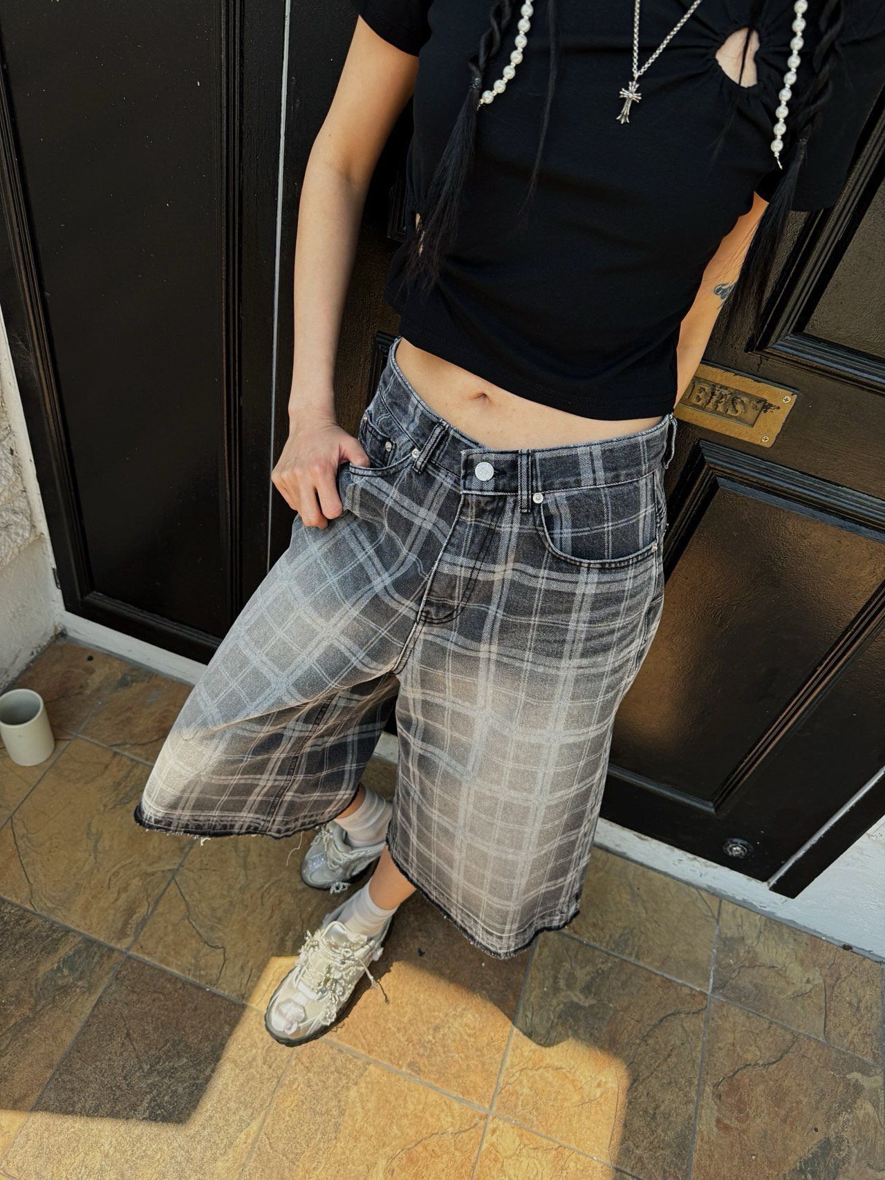 格仔牛仔短褲 NUSED-096P