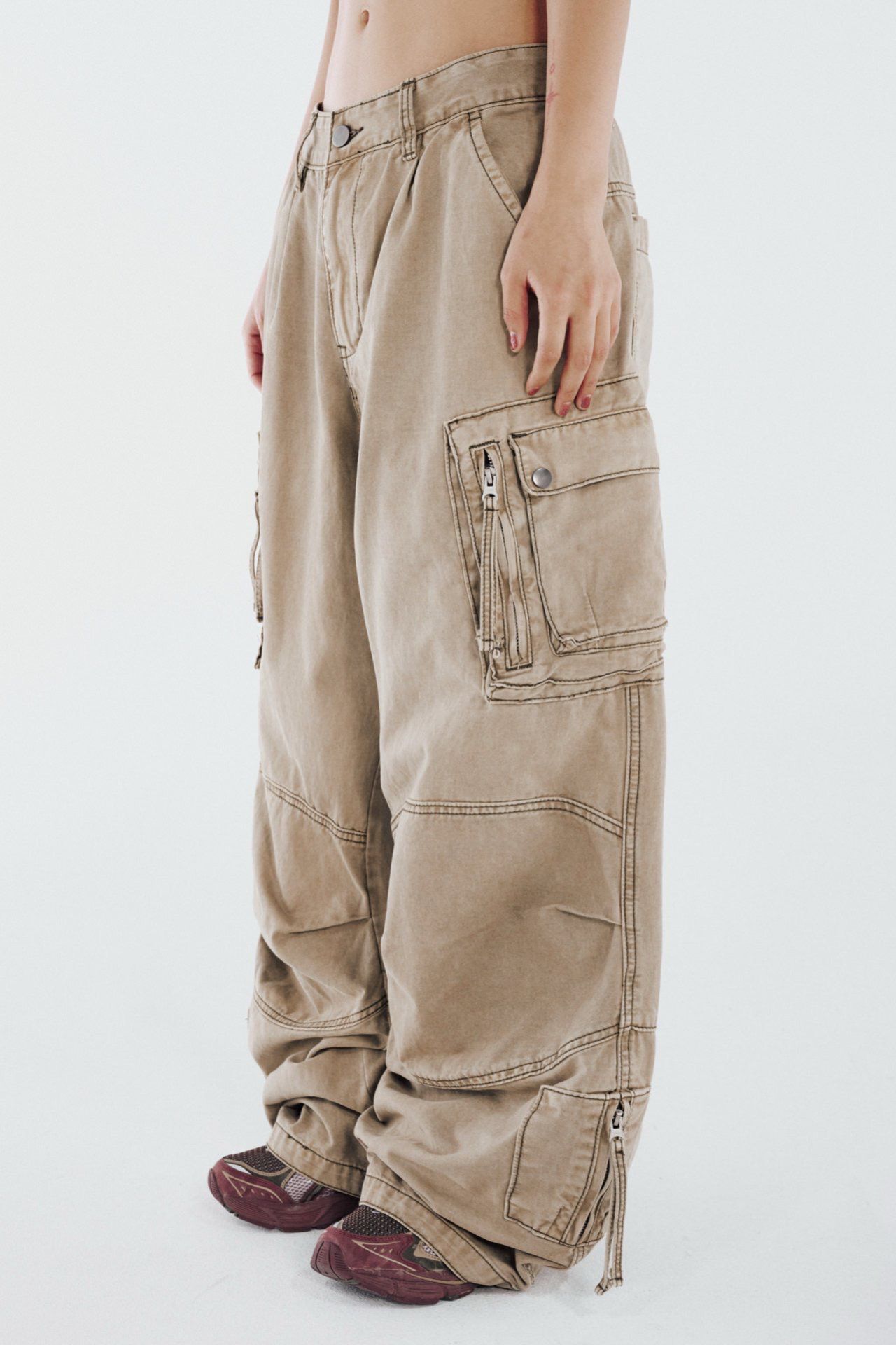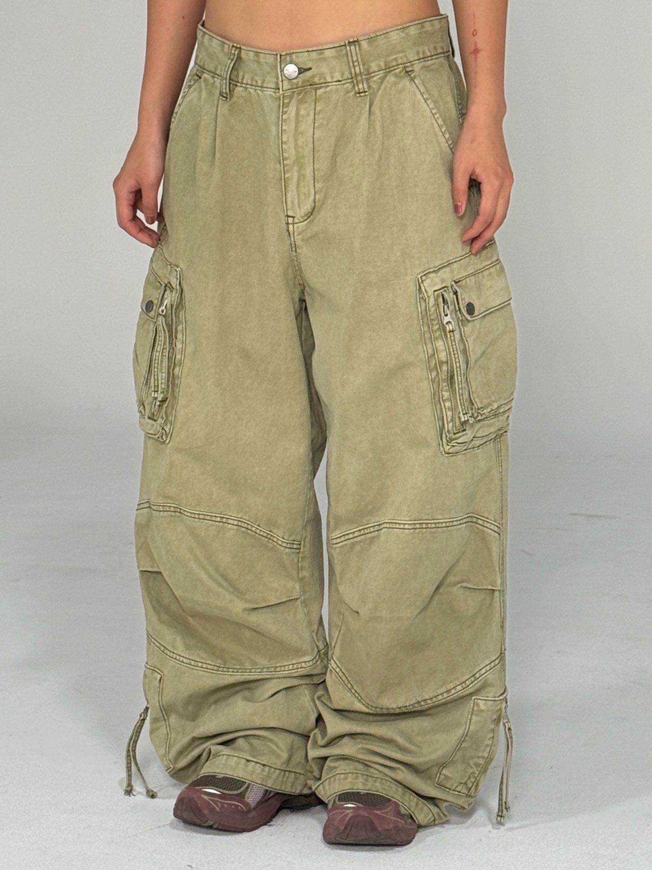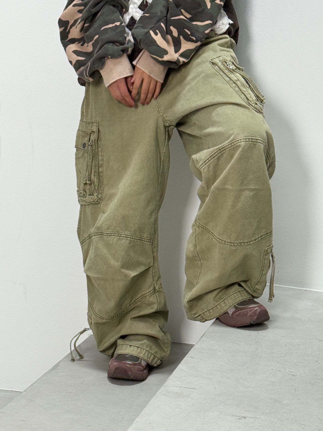 淨色可束腳工裝鬆身褲 UNUSED-127P