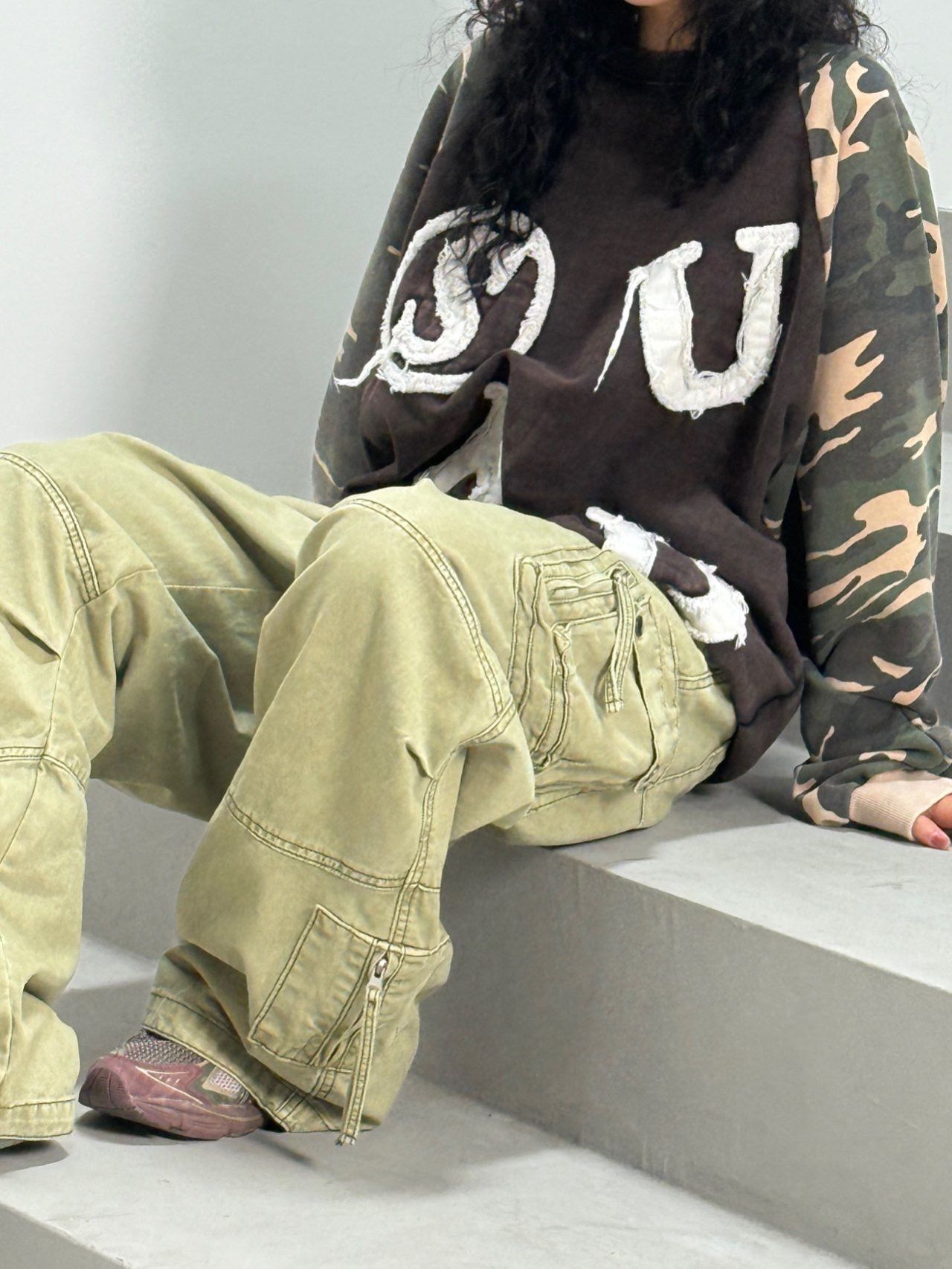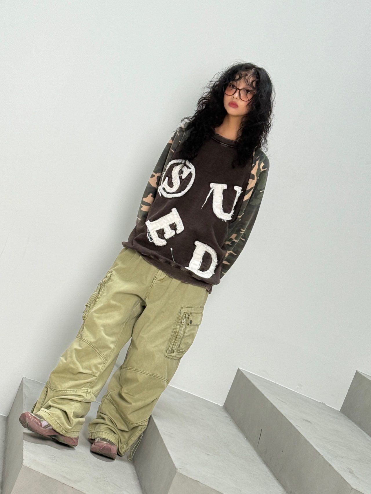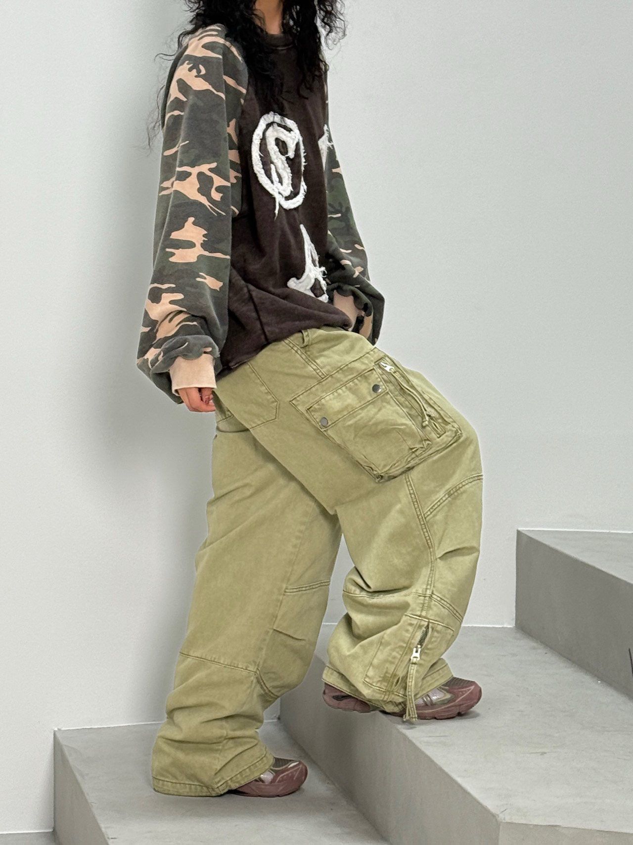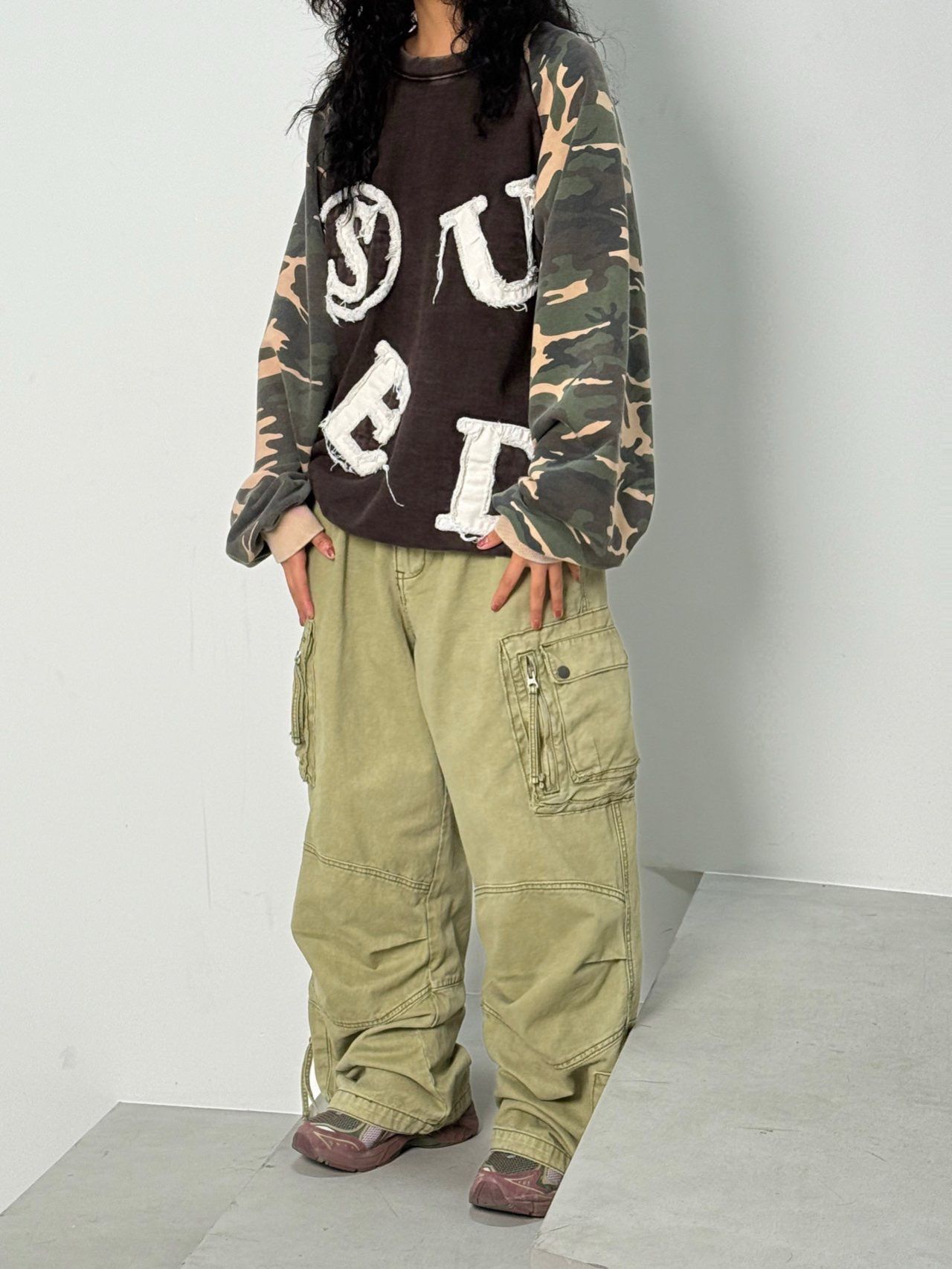 淨色可束腳工裝鬆身褲 UNUSED-127P