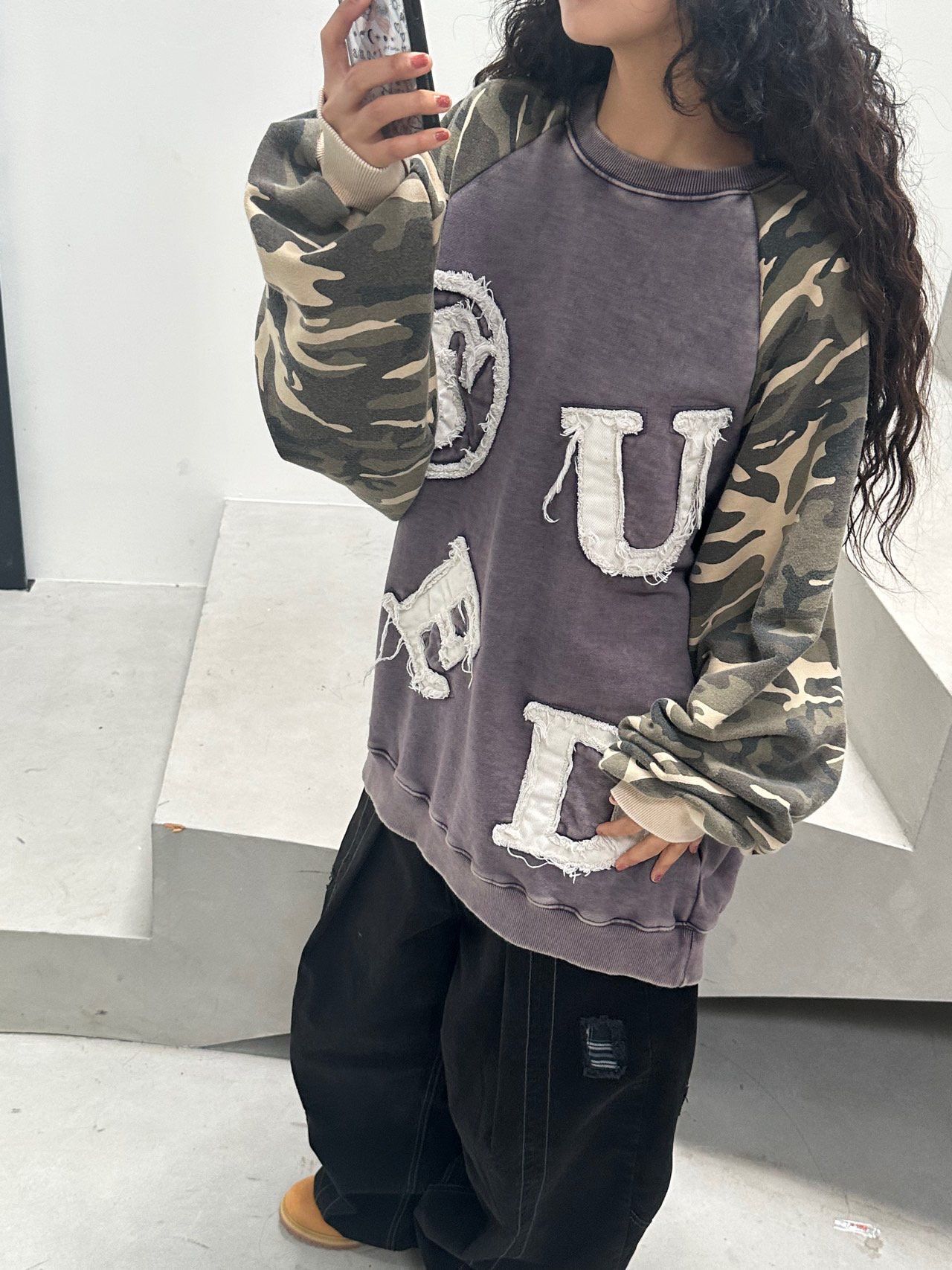 拼迷彩英文字衛衣 UNUSED-131T