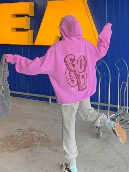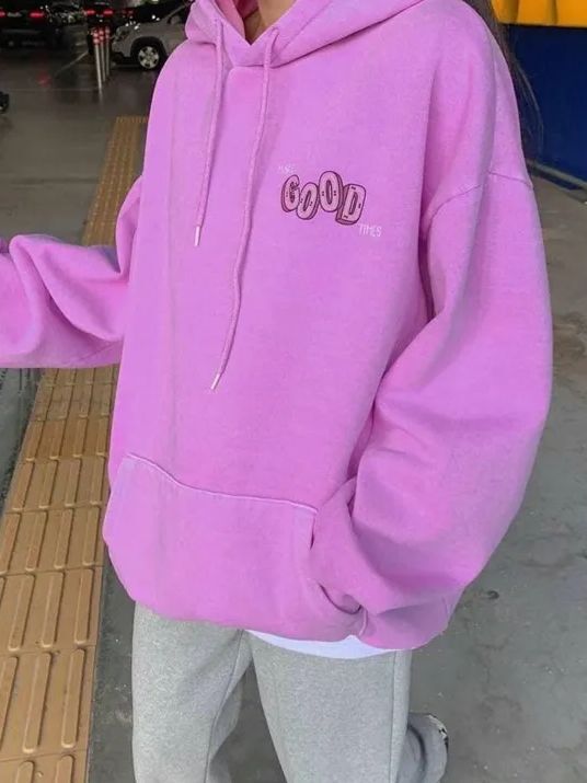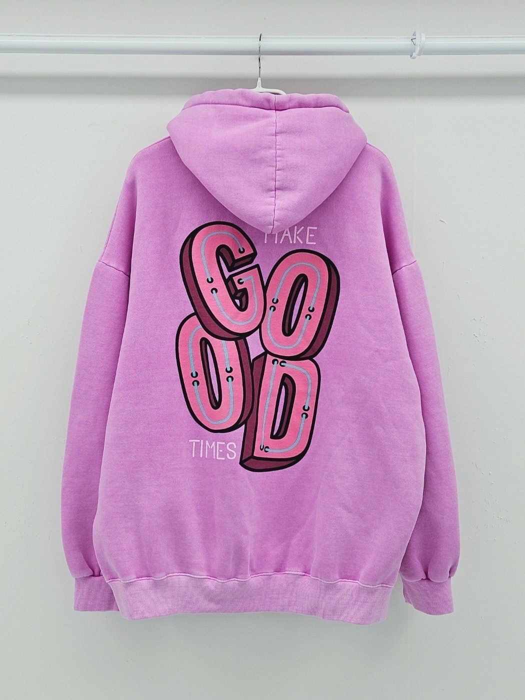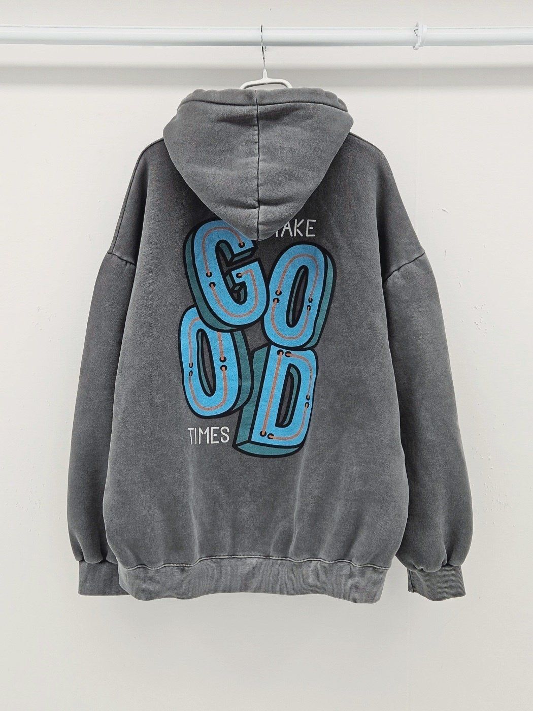 OverSize洗水英文字連帽衛衣(薄抓毛底) US-004T