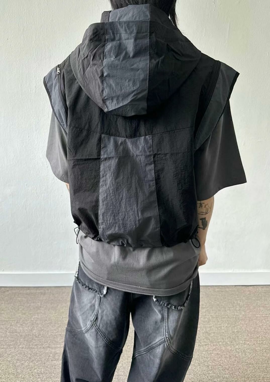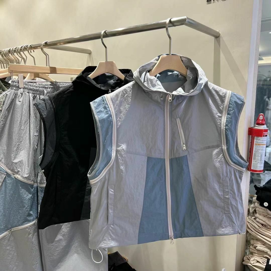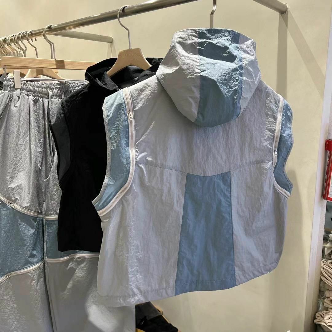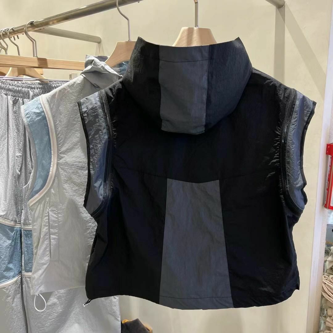 拼色企領拉鍊短身背心褸 V1044