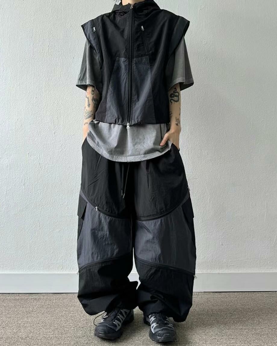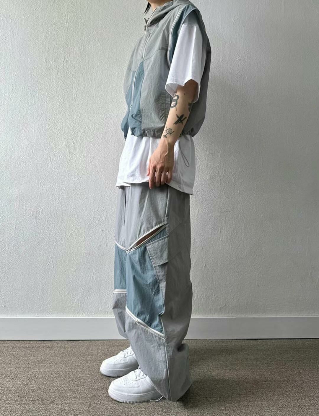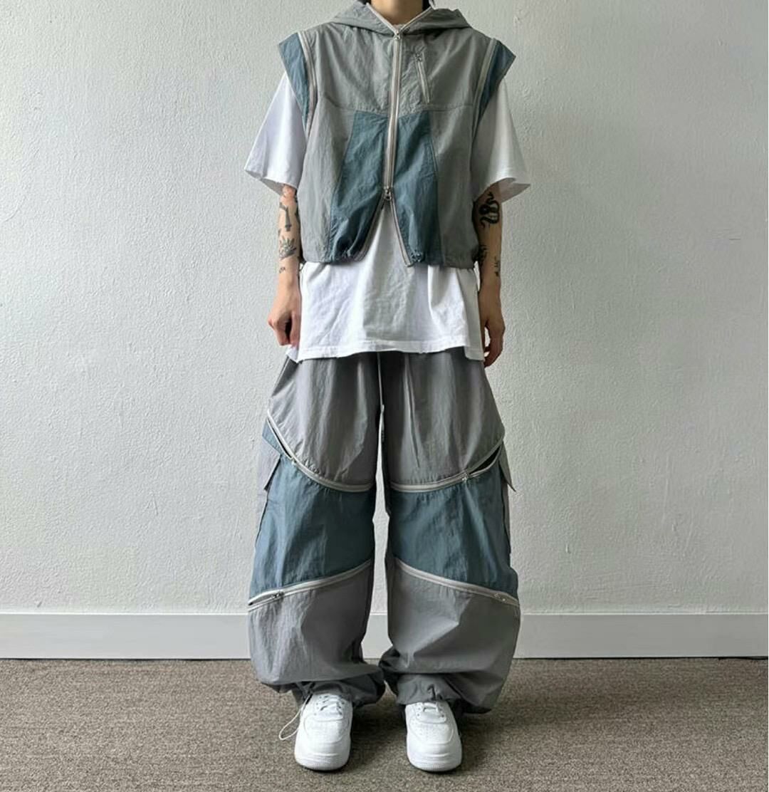 拼色企領拉鍊短身背心褸 V1044