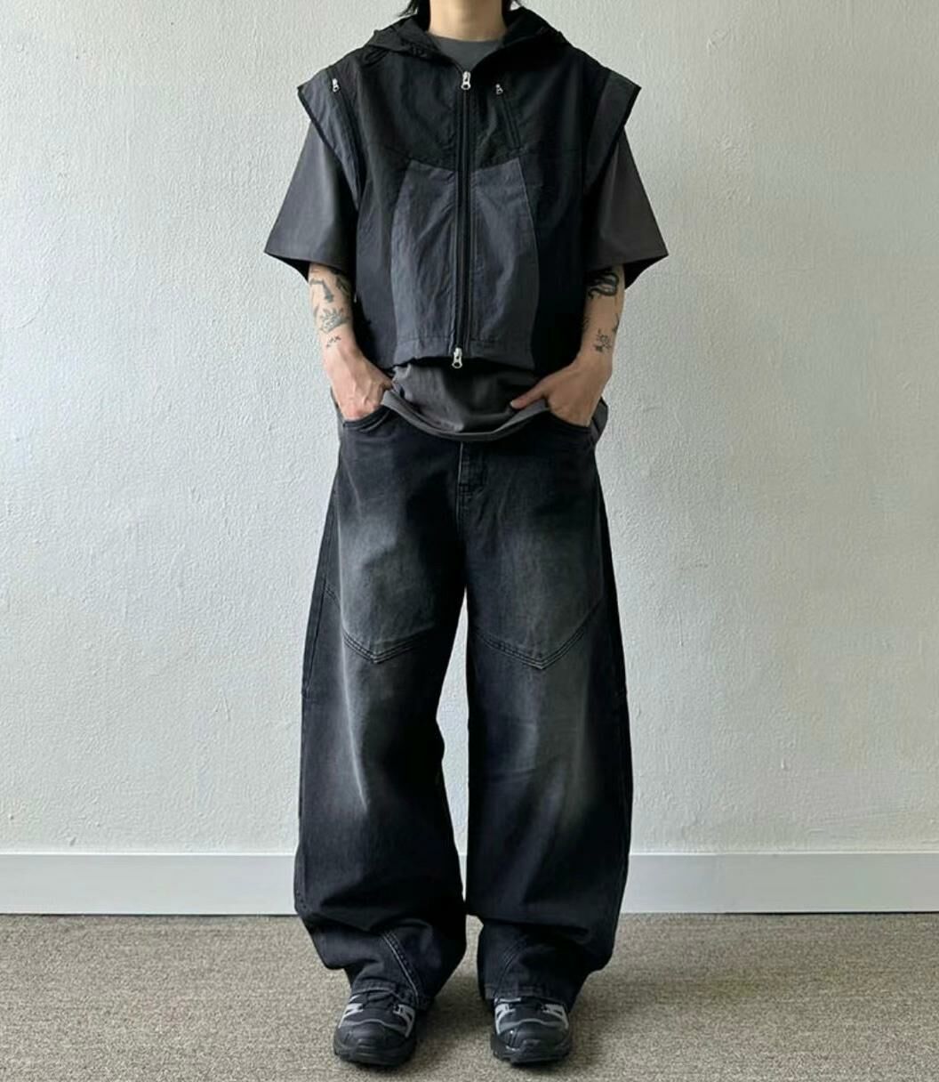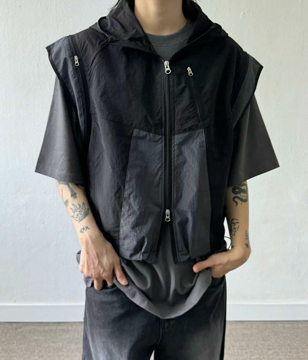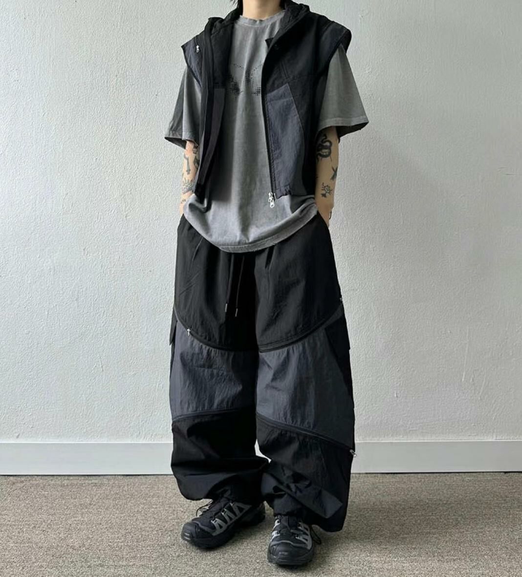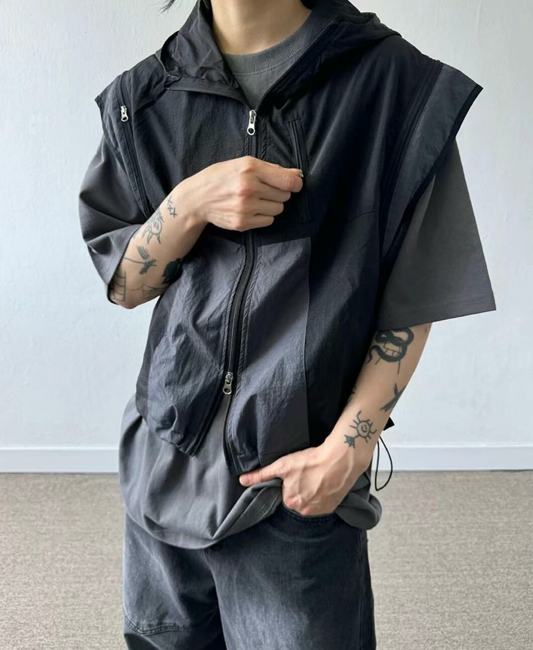 拼色企領拉鍊短身背心褸 V1044