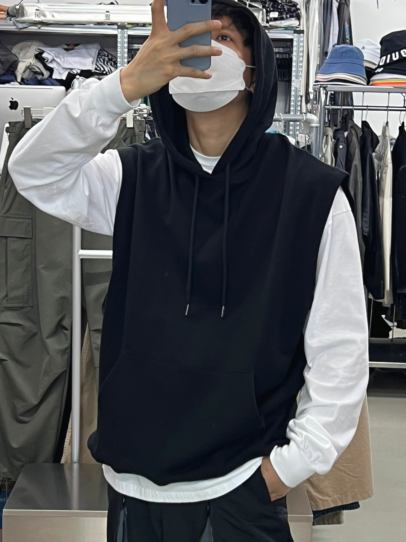 棉質連帽背心 V811