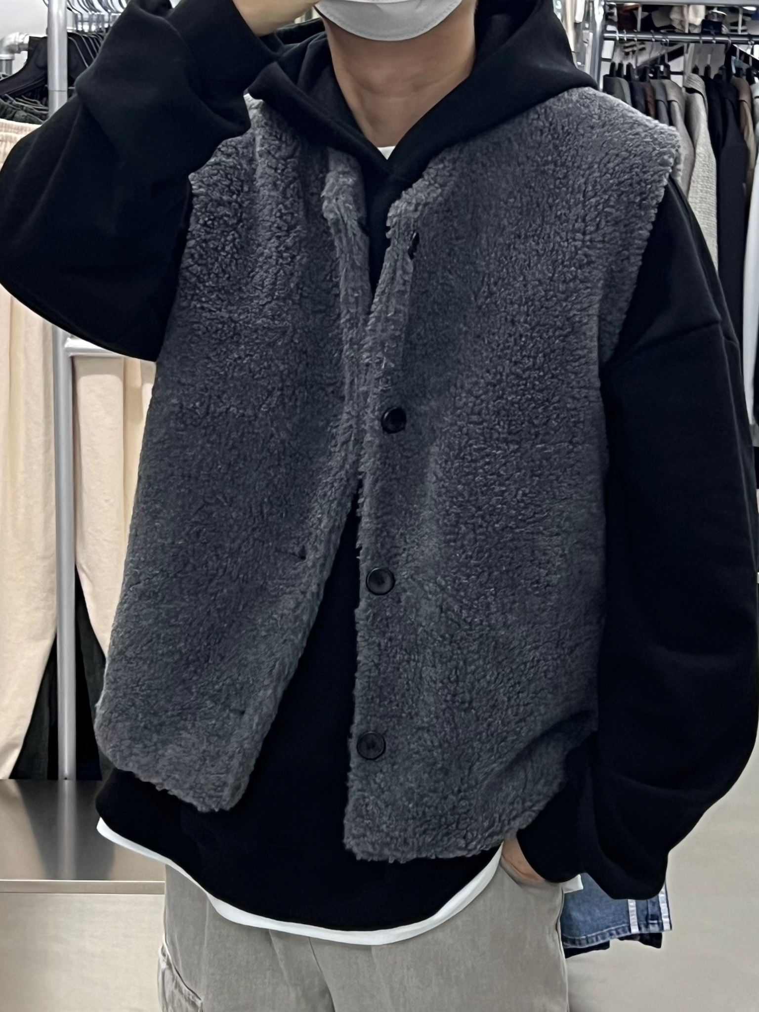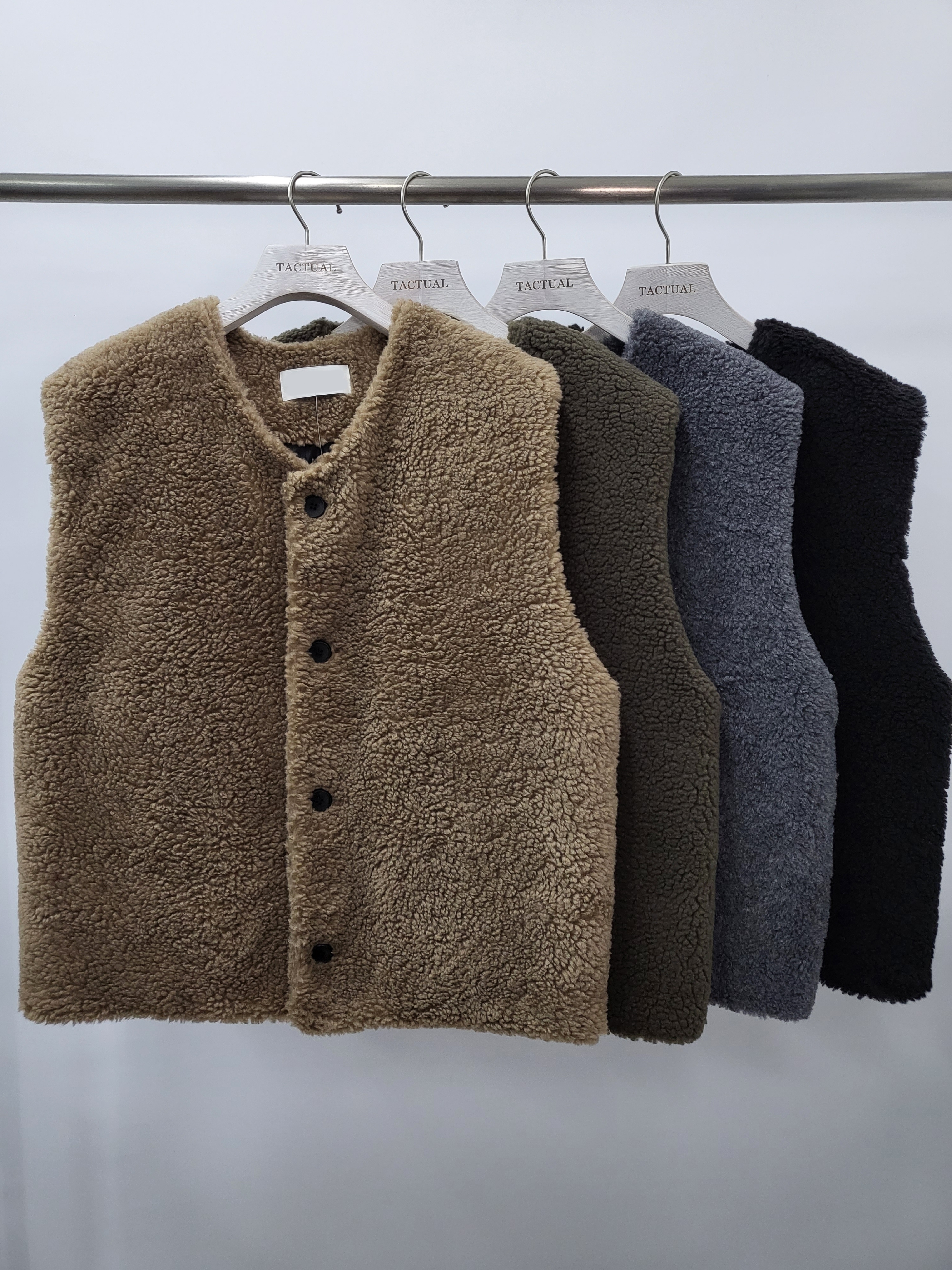 綠色/卡其色毛毛開胸背心