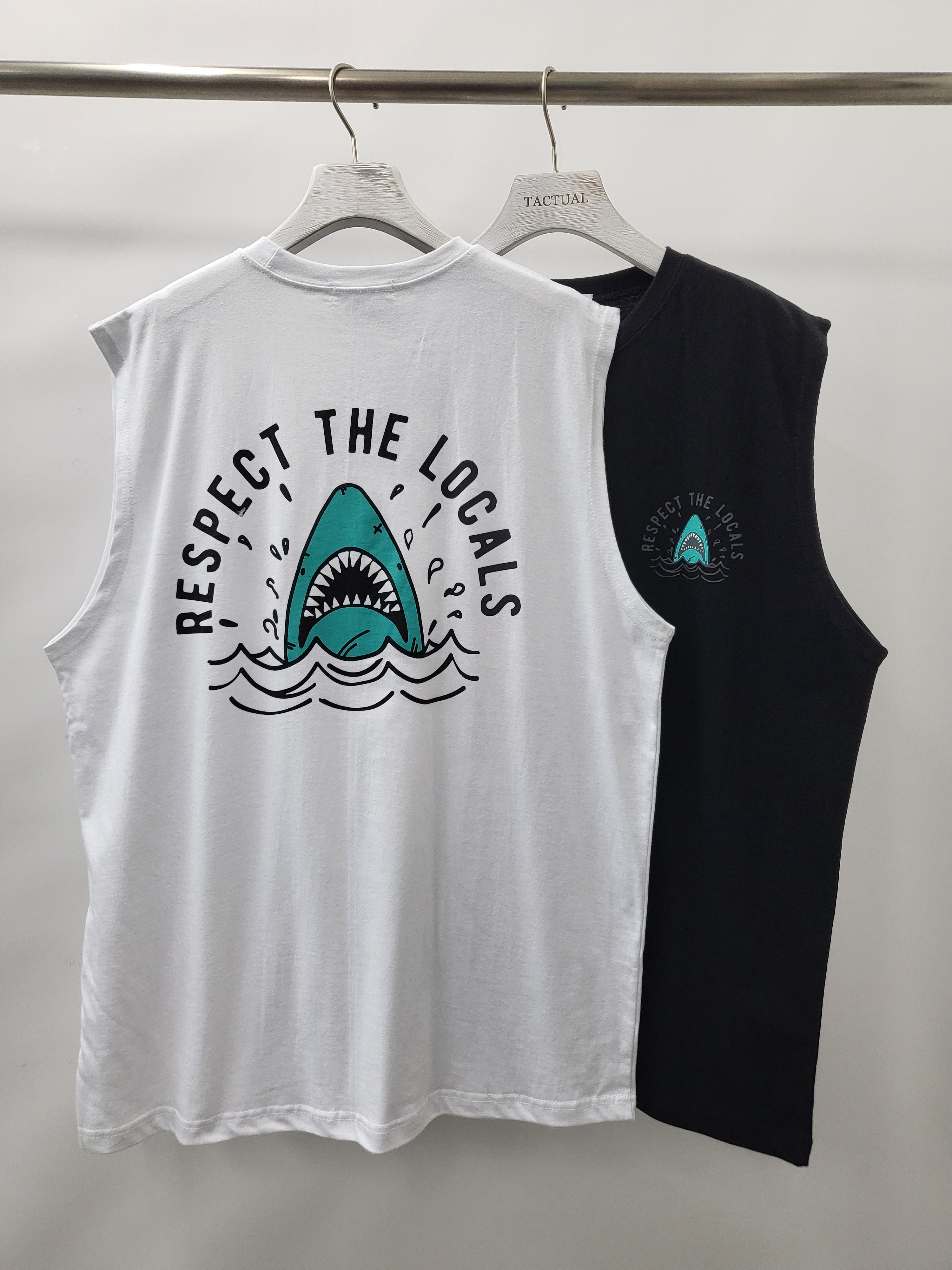 英文字鯊魚圖案背心 V977