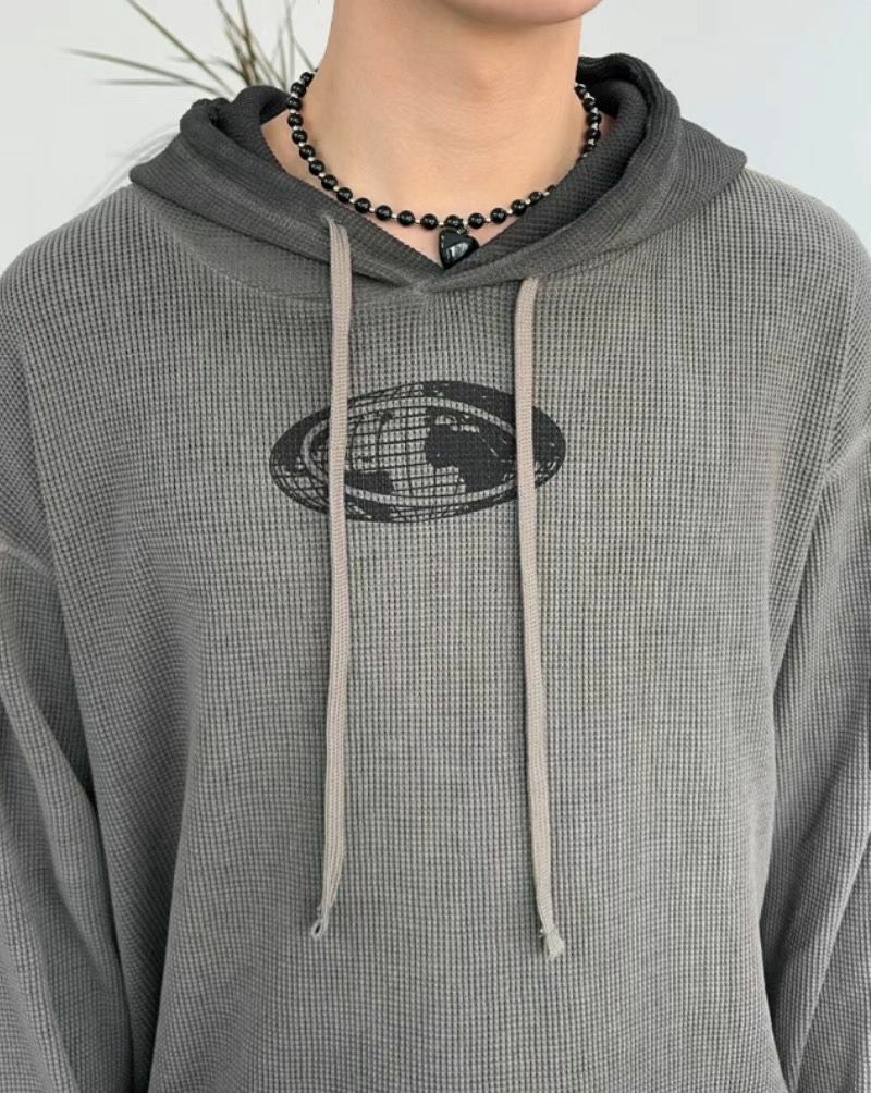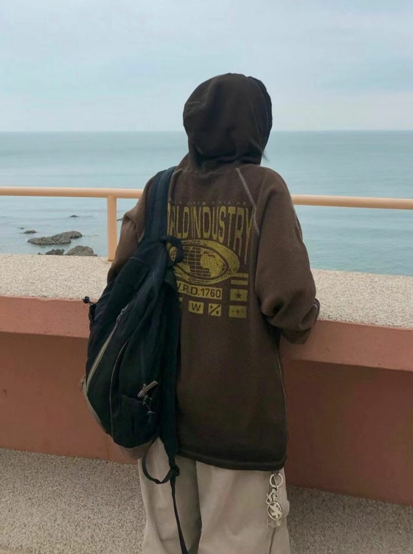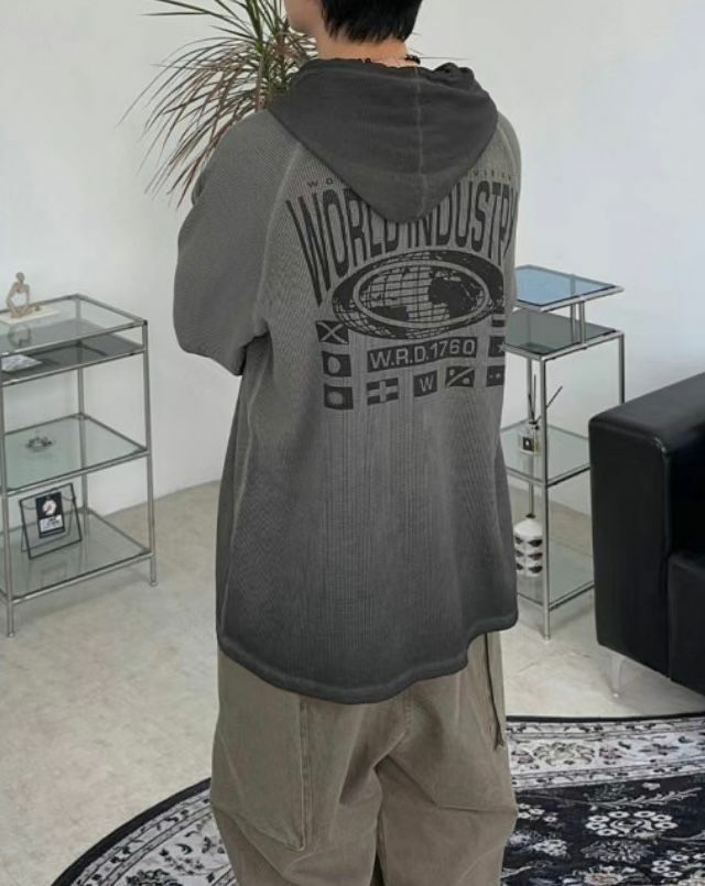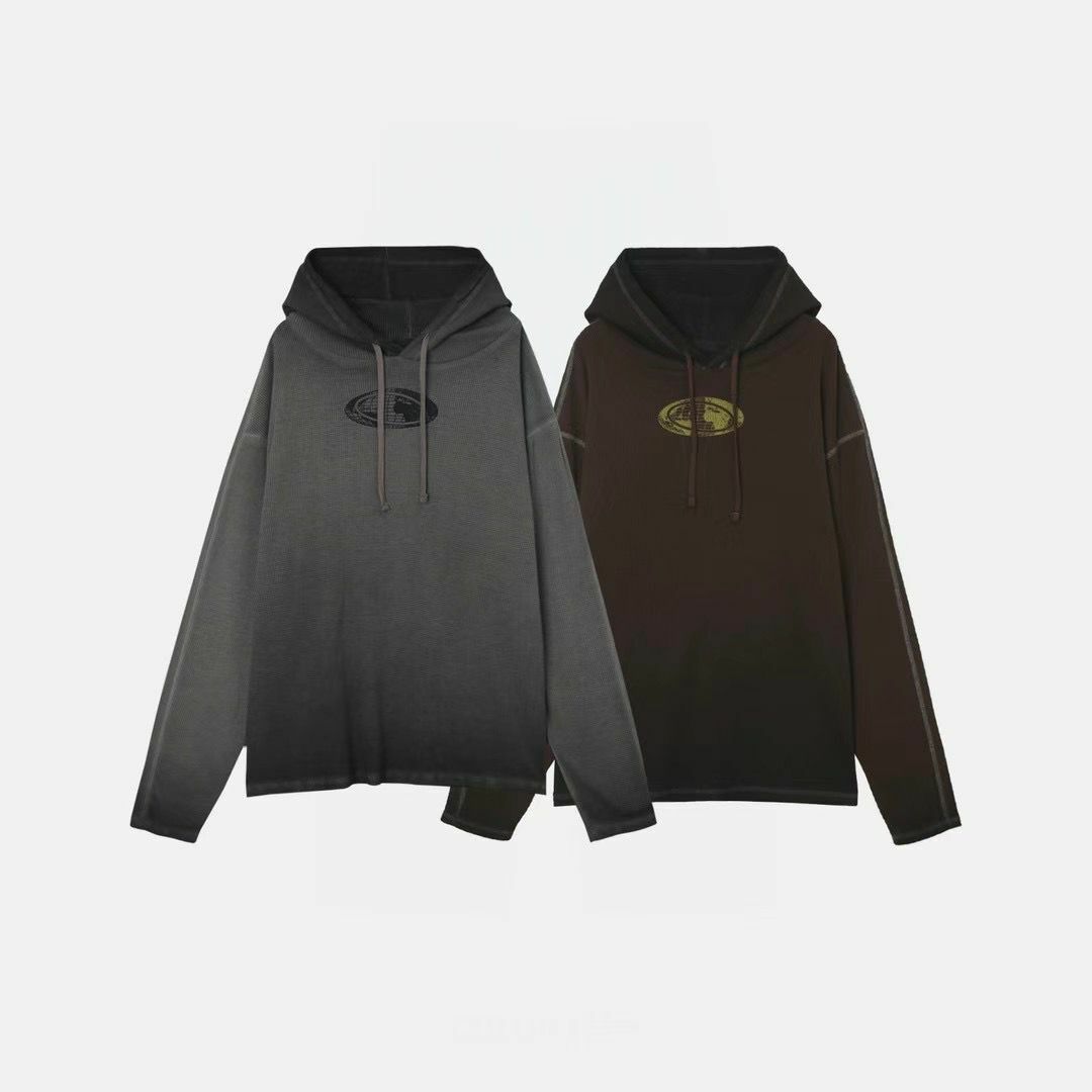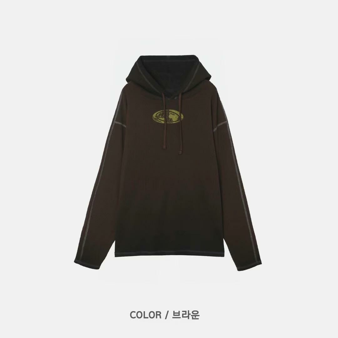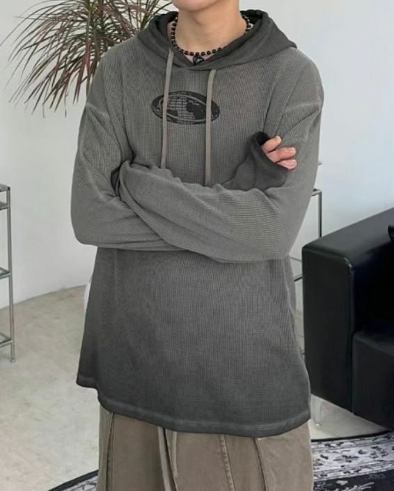 漸變英文字圖案連帽長袖衫 Vass-001T