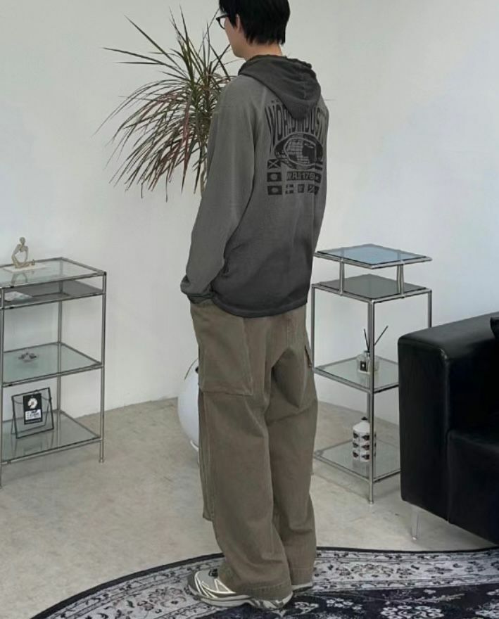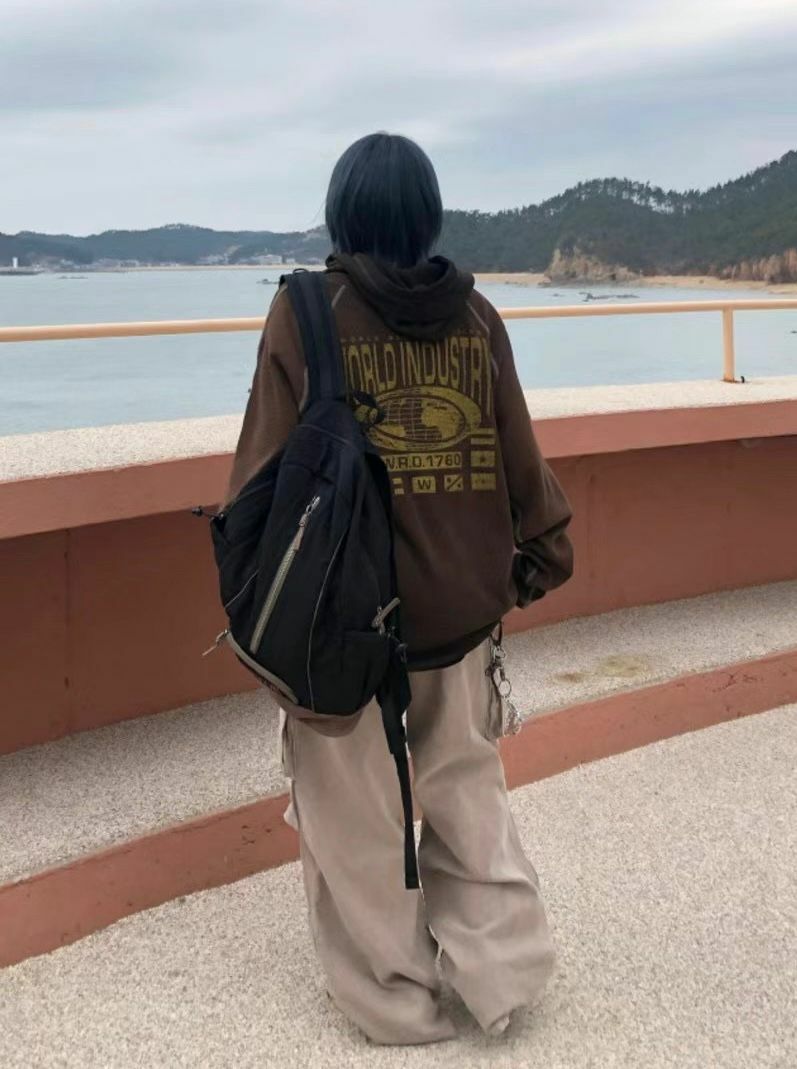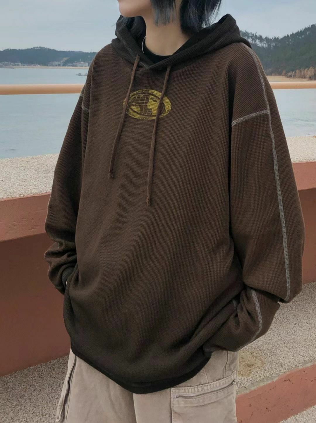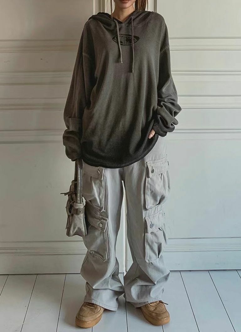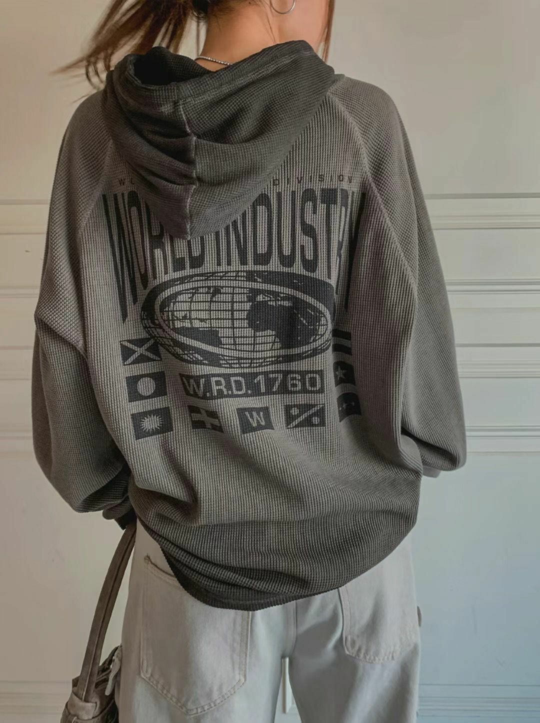 漸變英文字圖案連帽長袖衫 Vass-001T