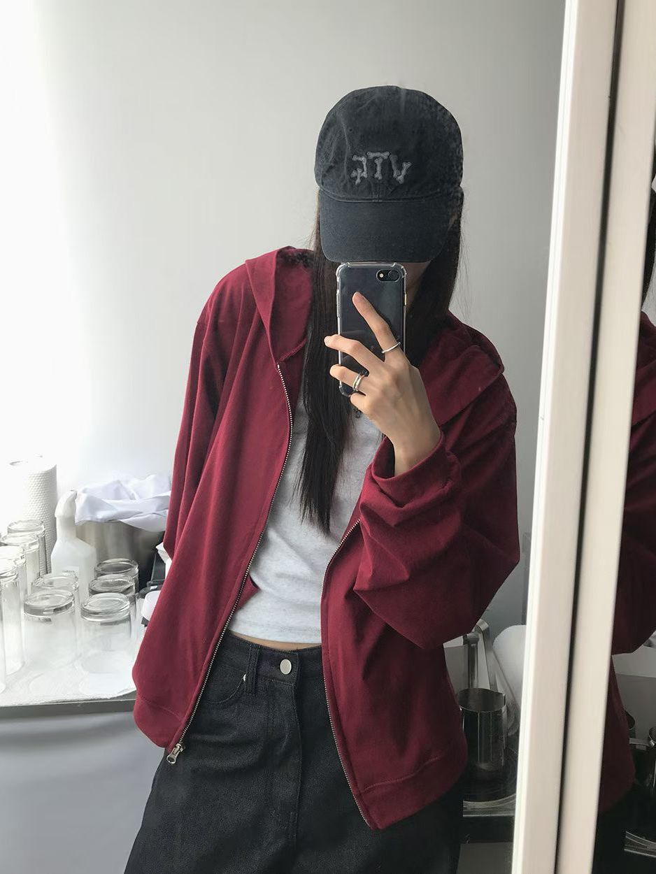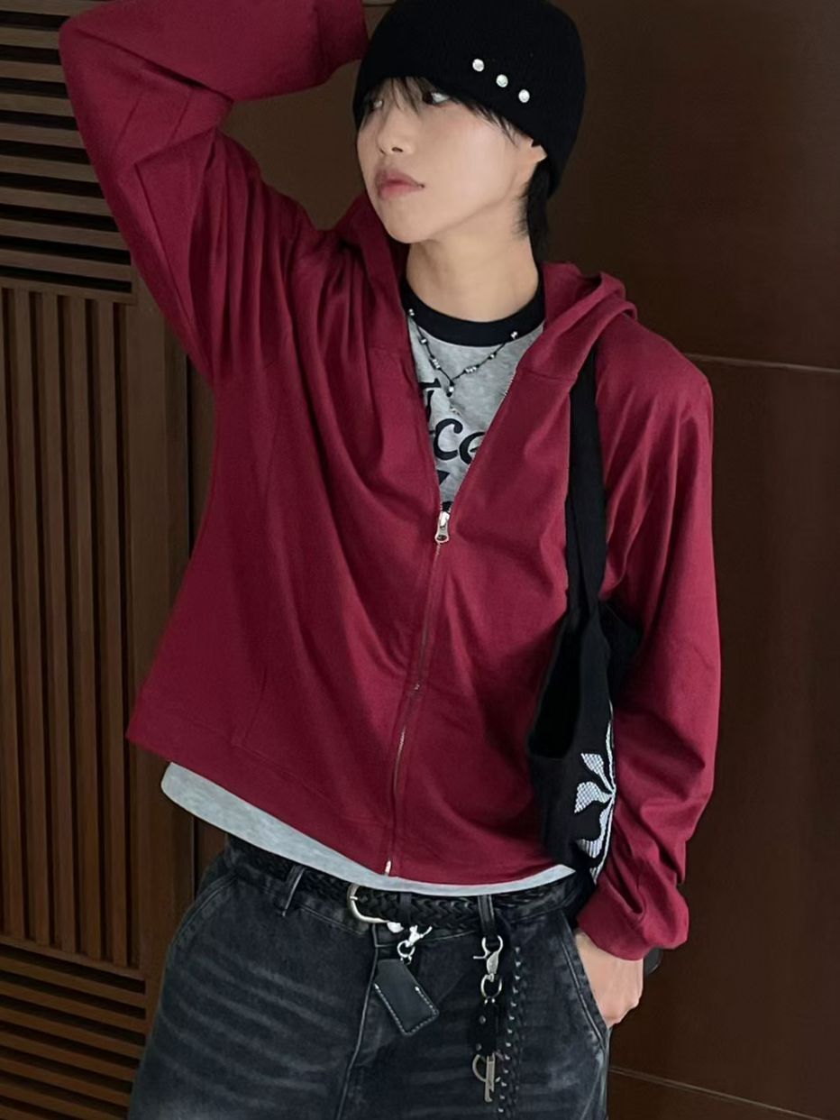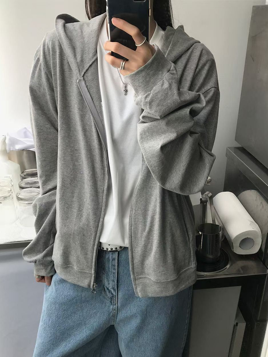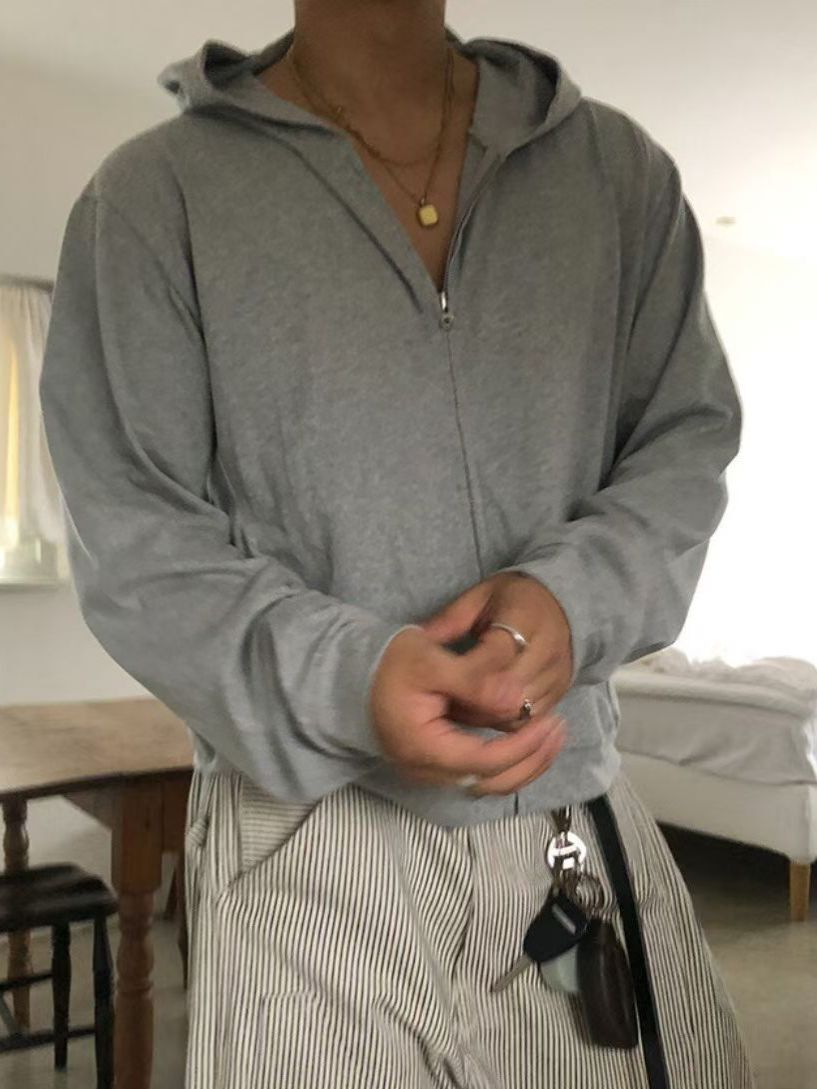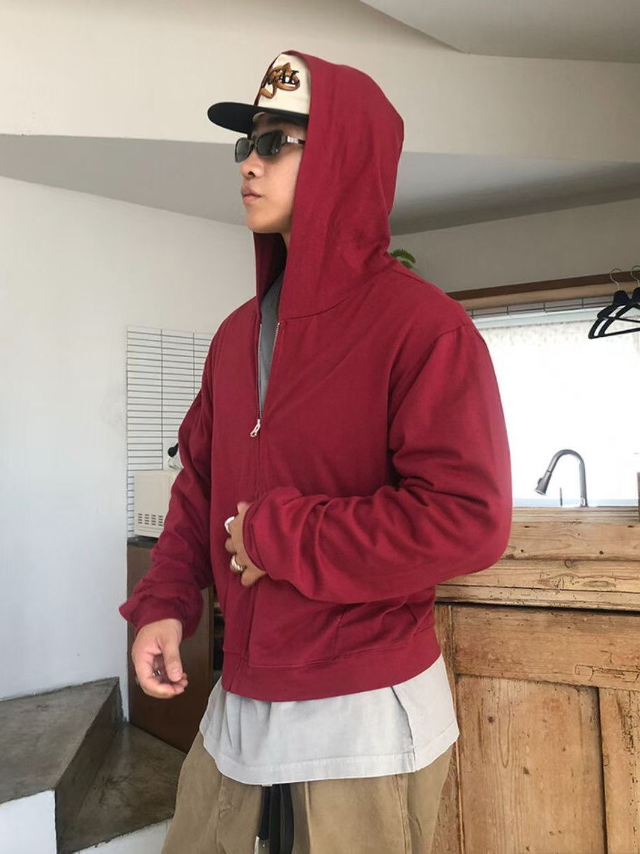 淨色連帽拉鍊外套 Vass-033JK
