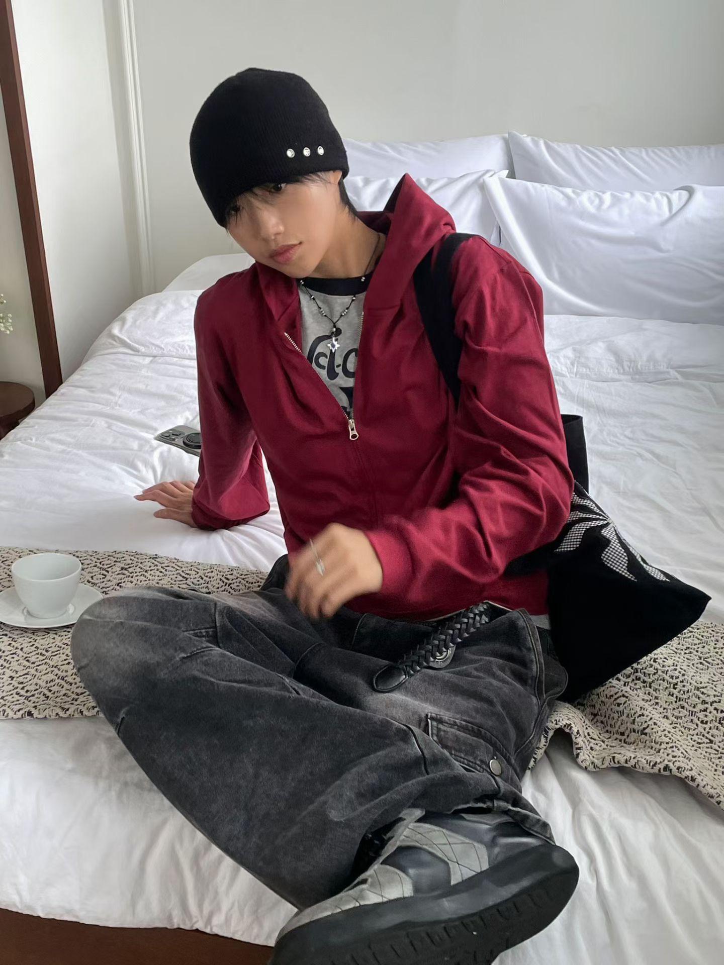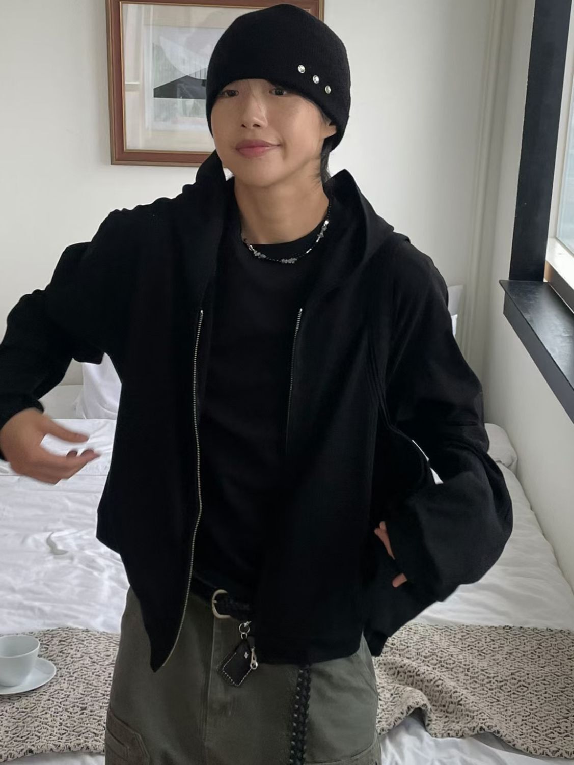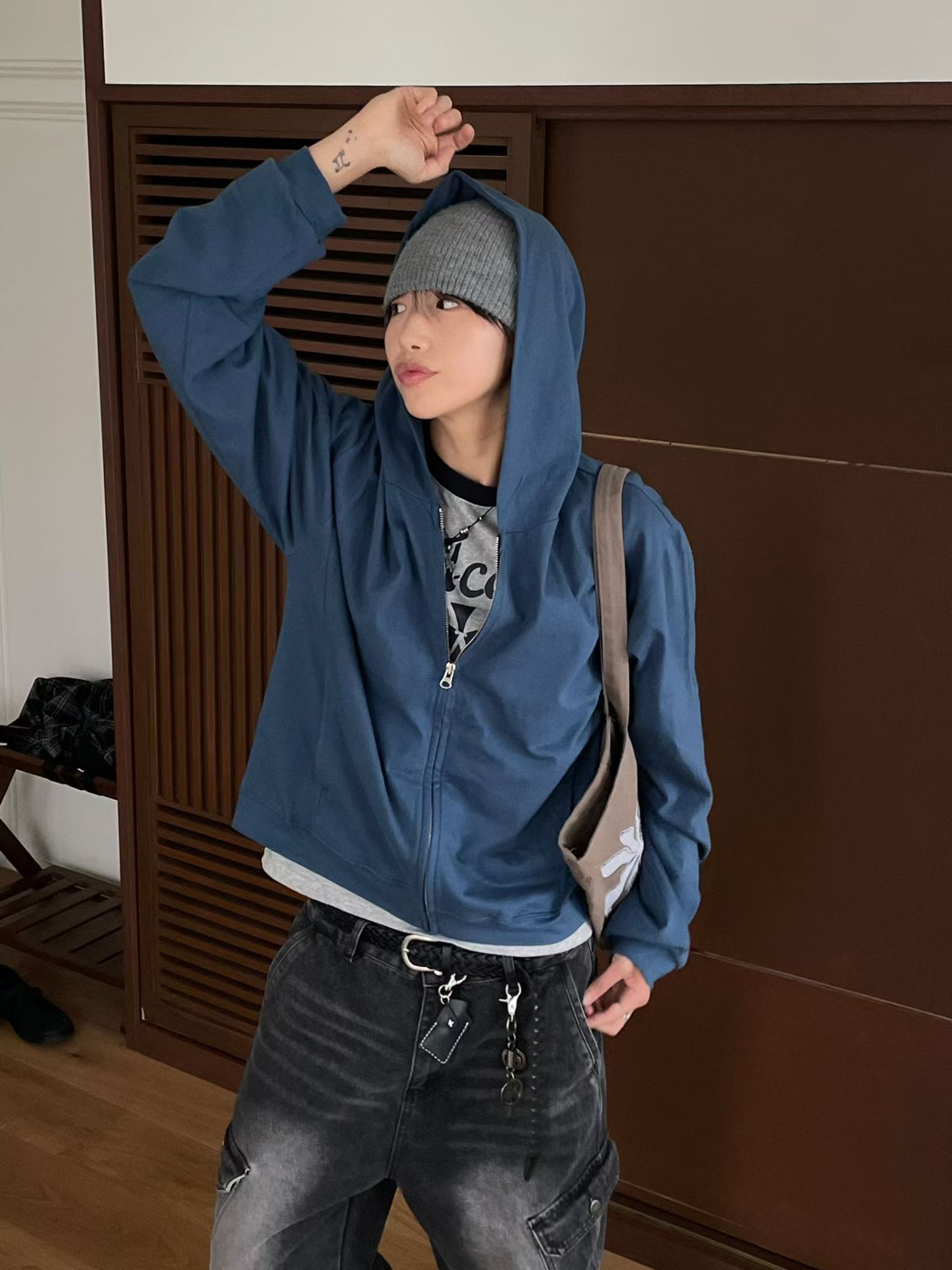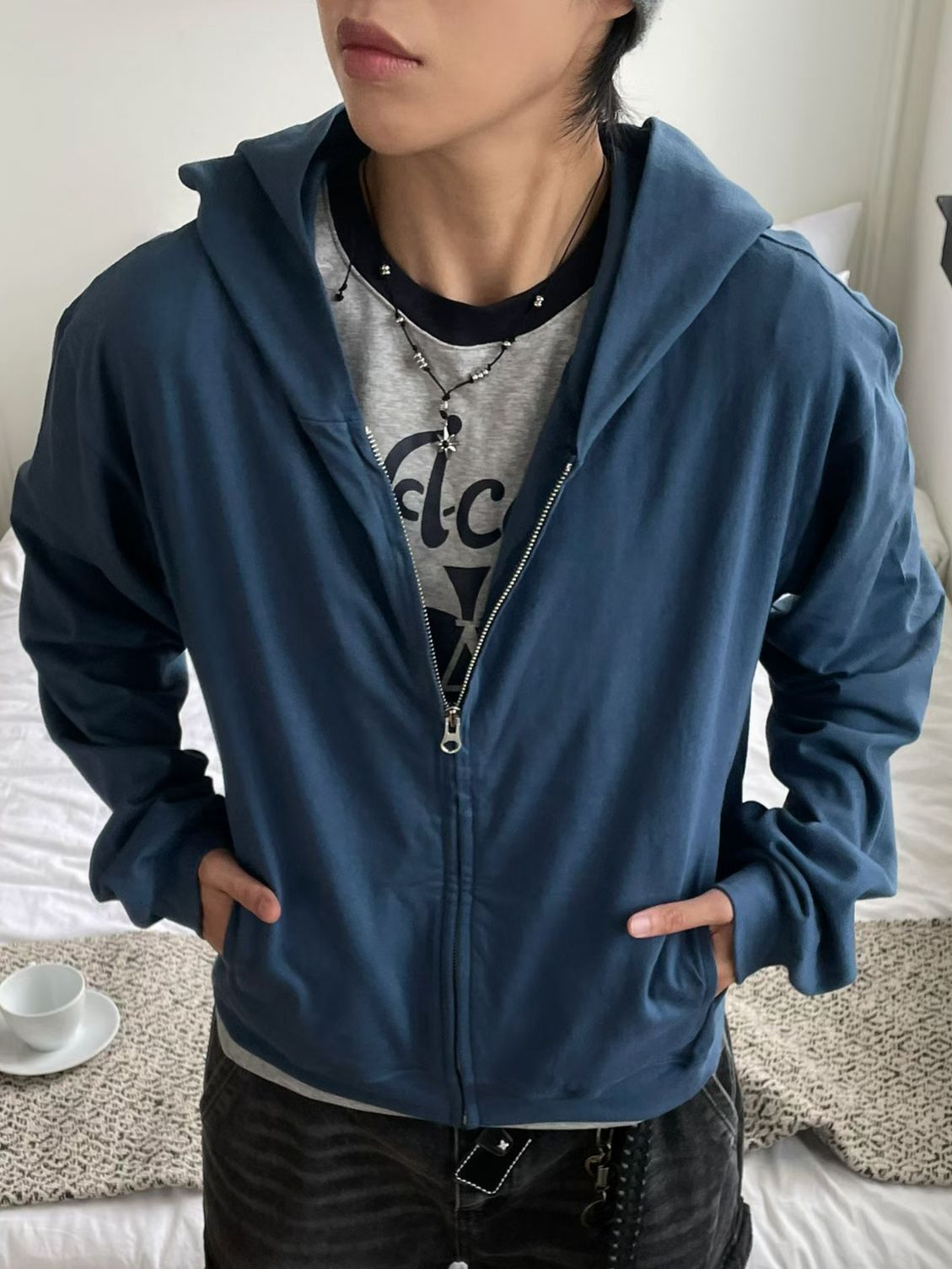 淨色連帽拉鍊外套 Vass-033JK