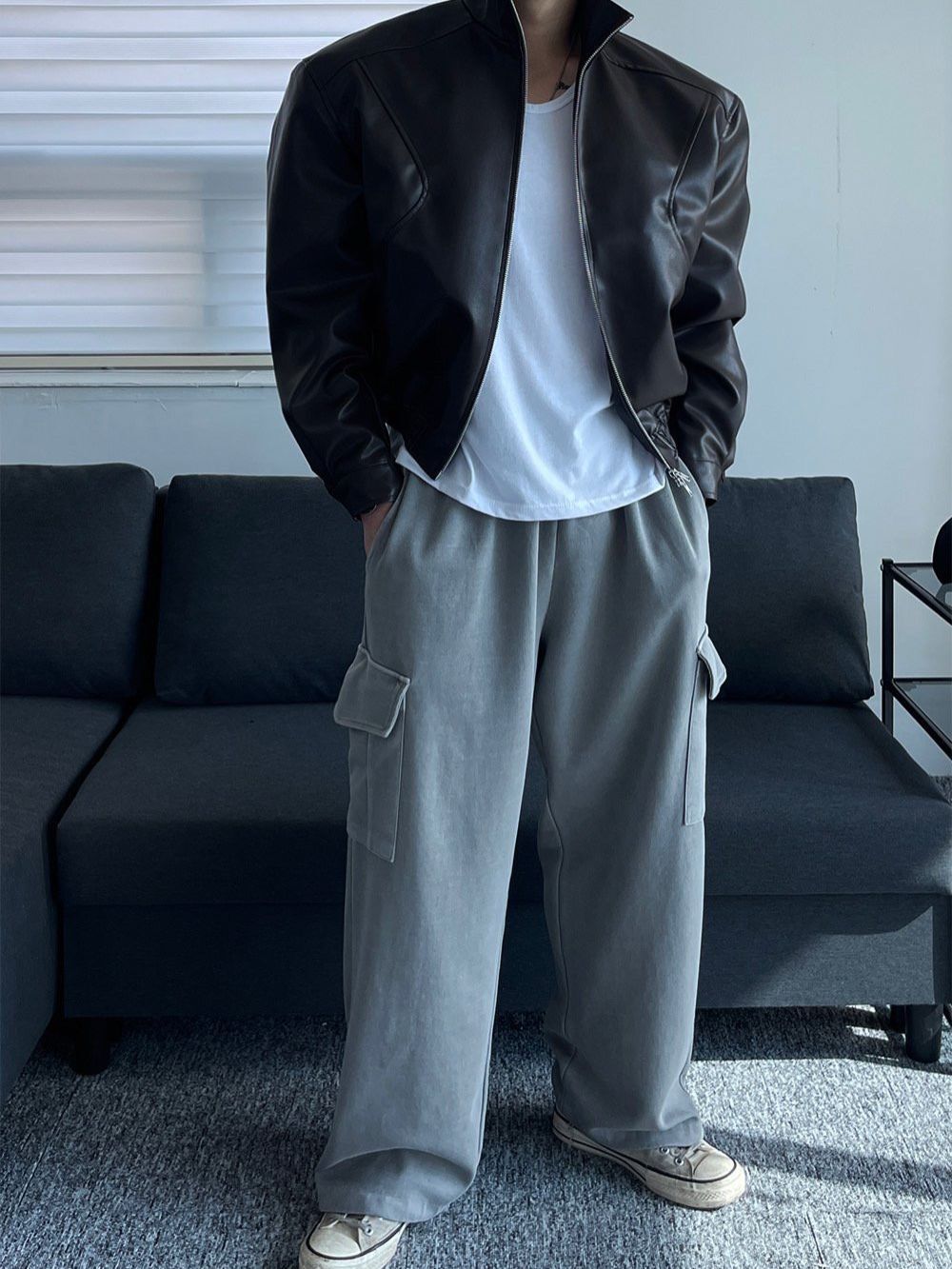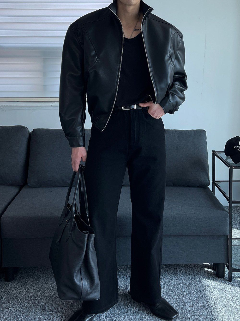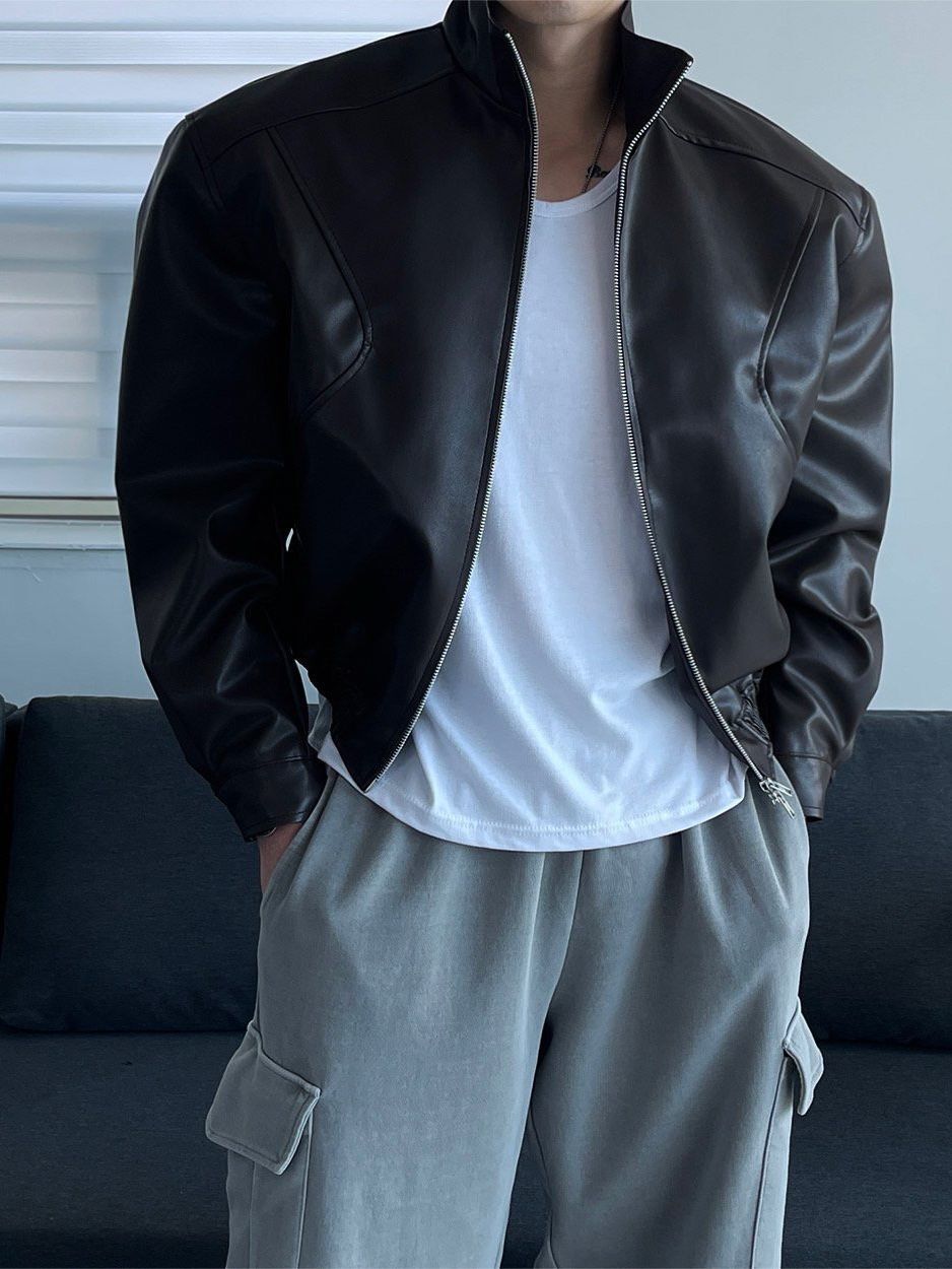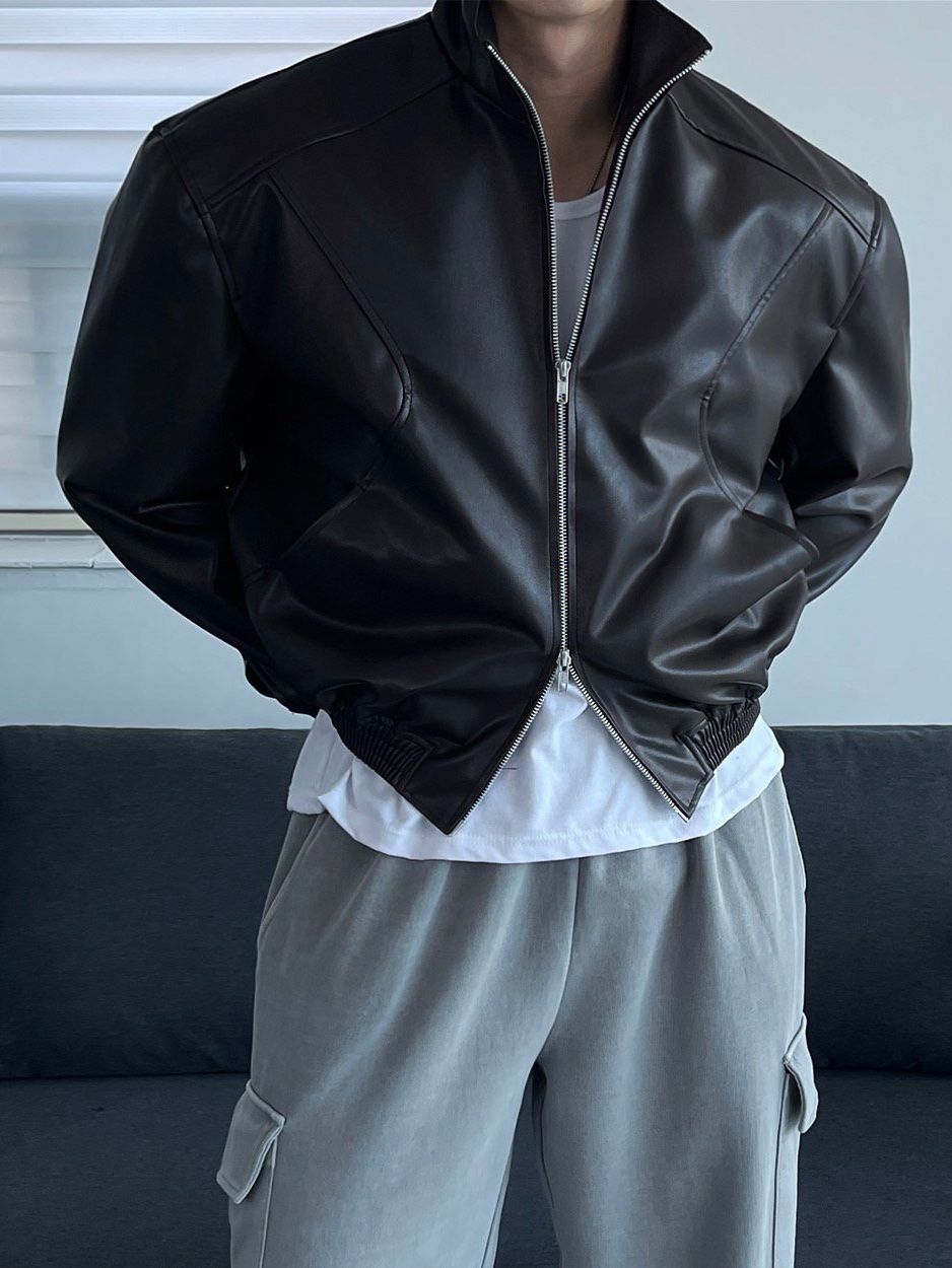 企領拉鍊合成皮褸 Veil-064JK