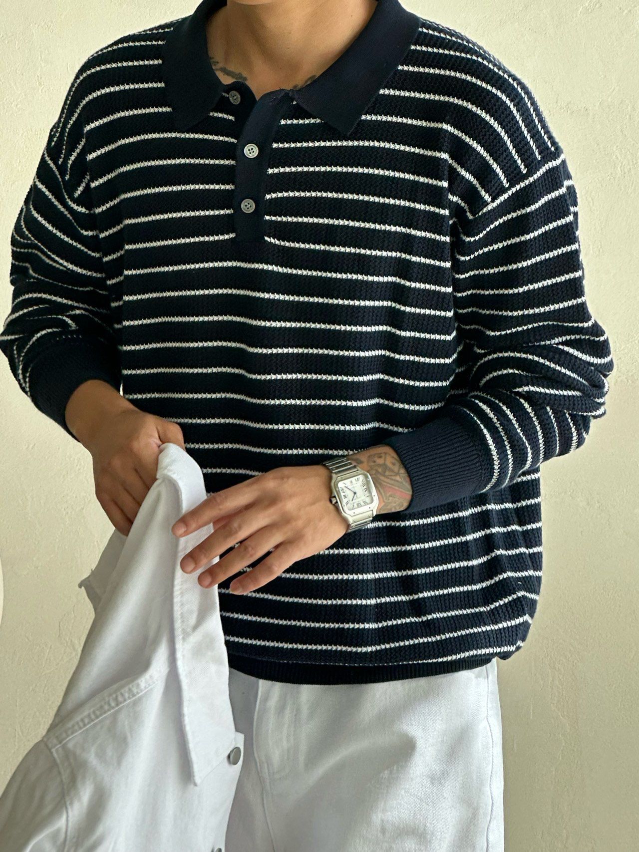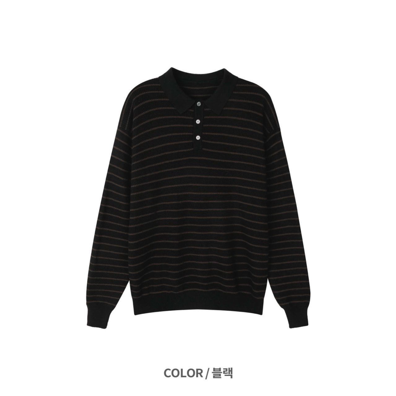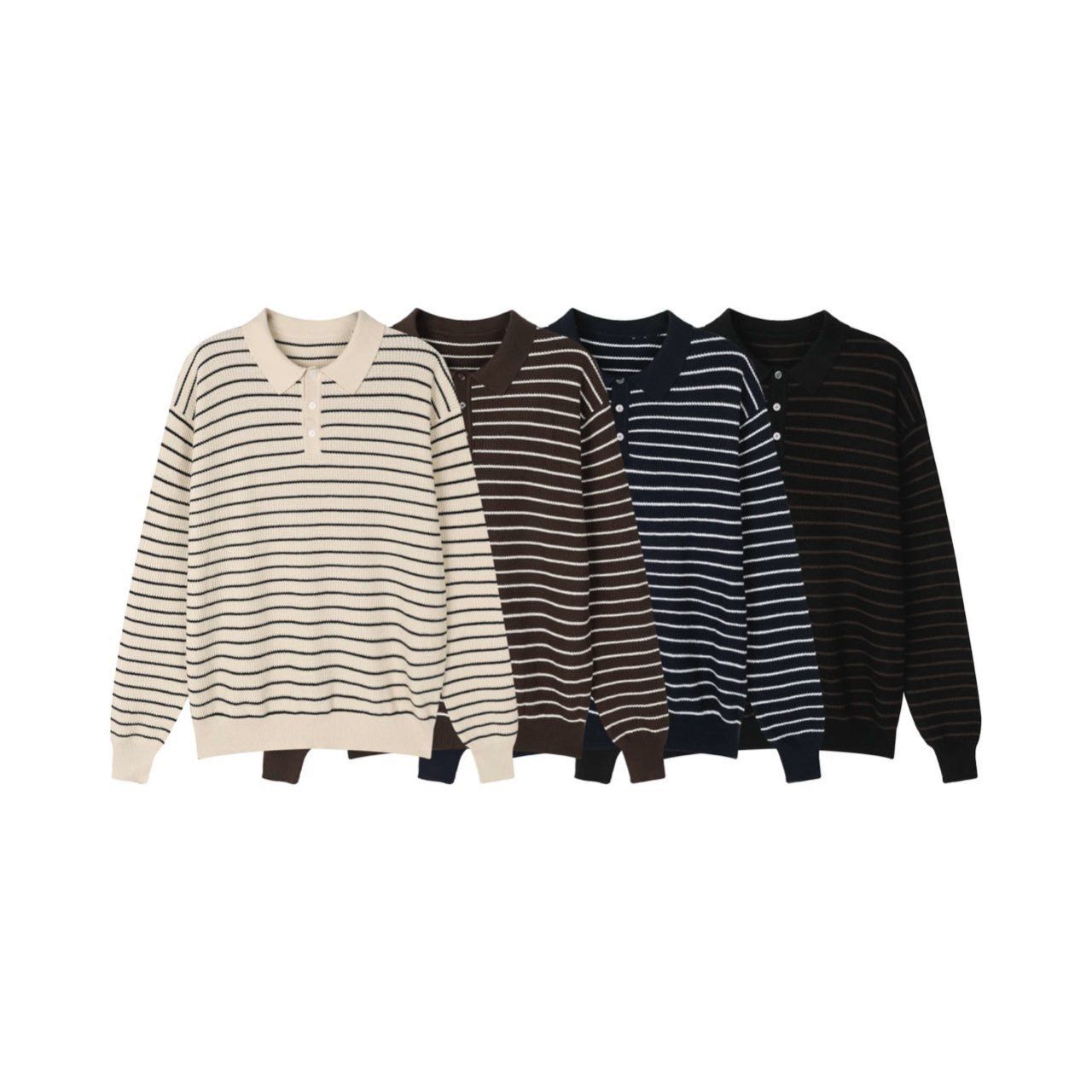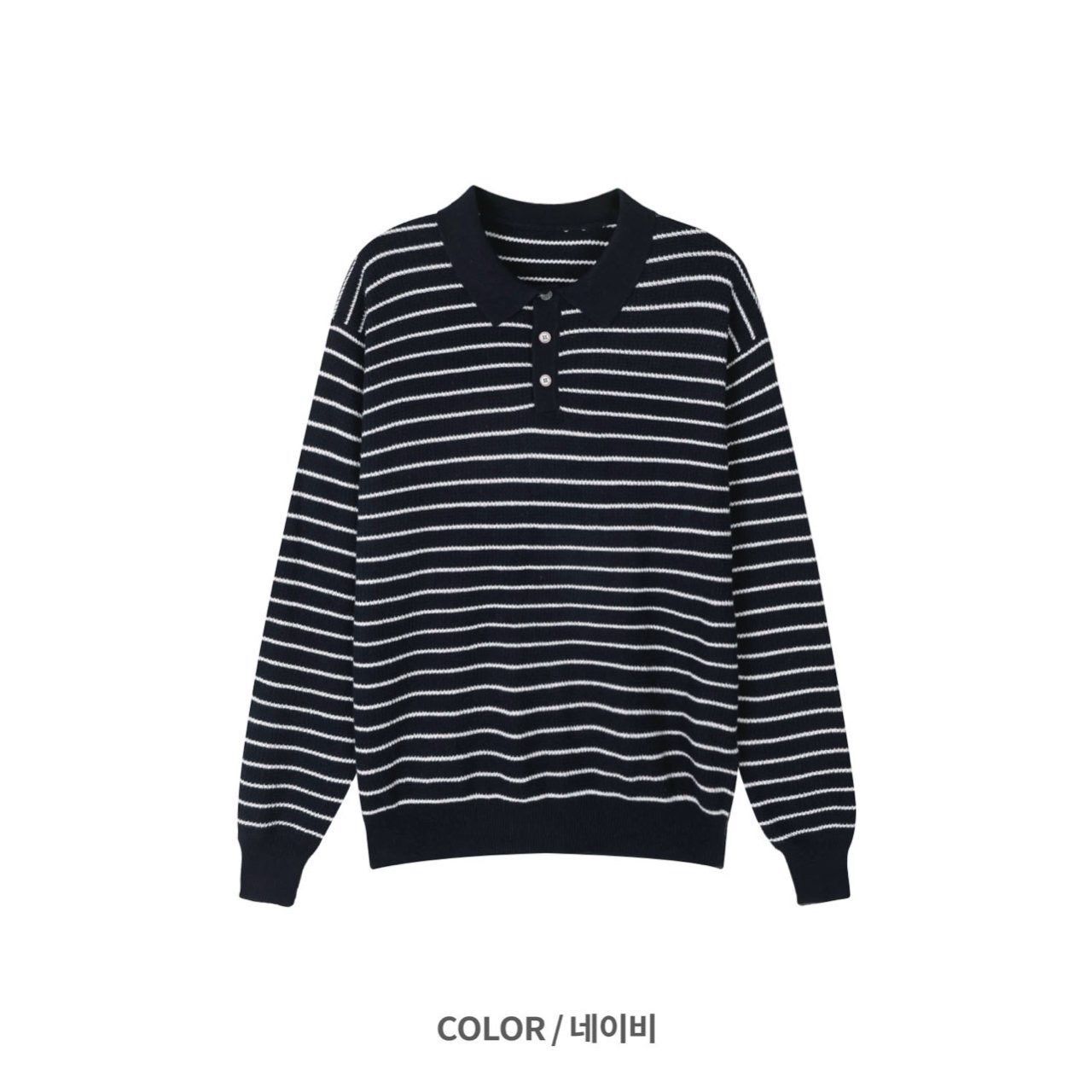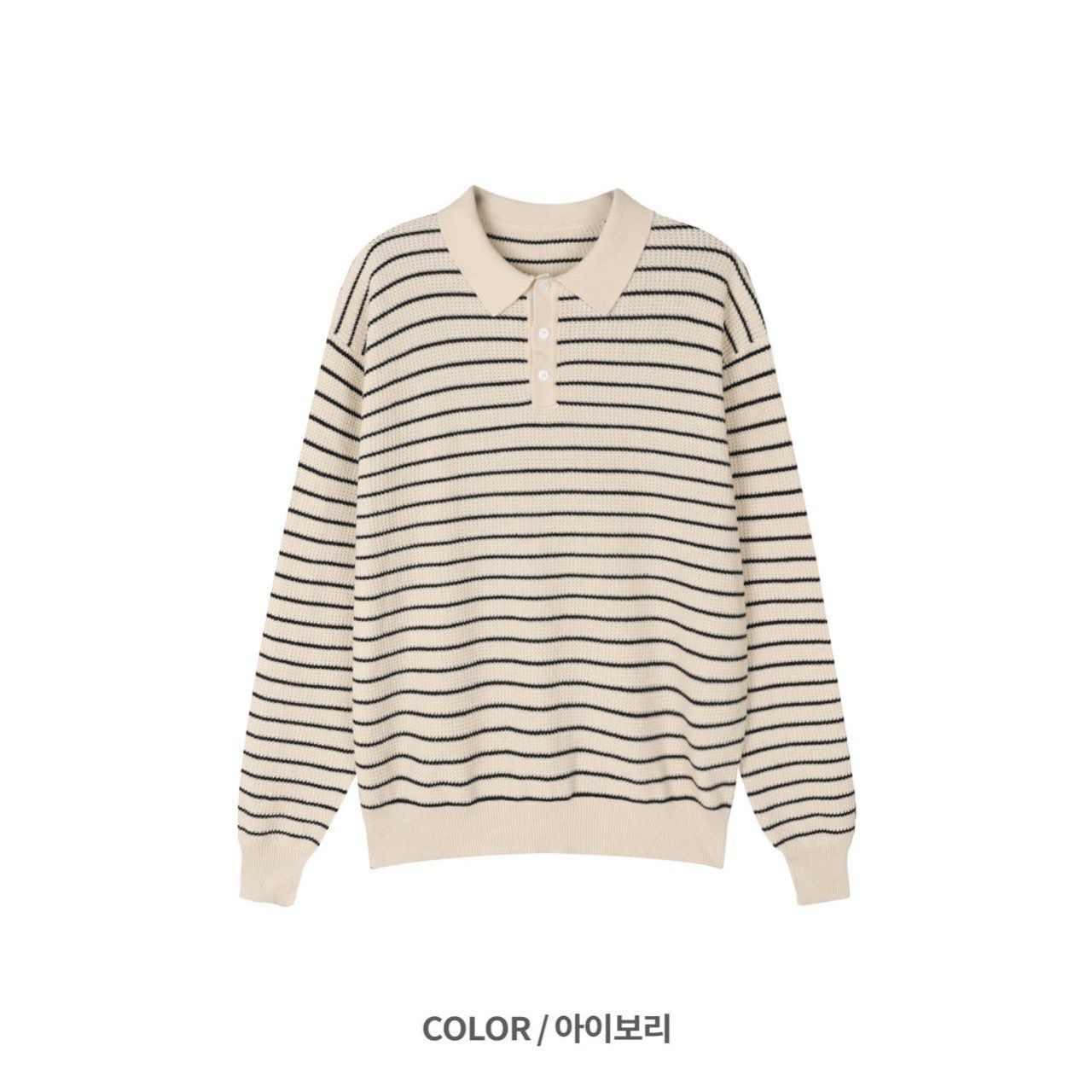 橫間長袖Polo針織衫 Veil-070T