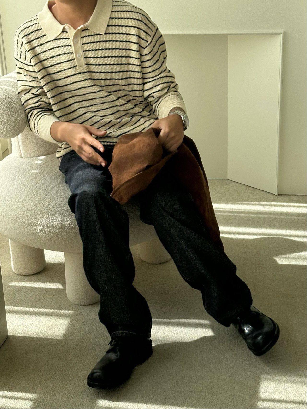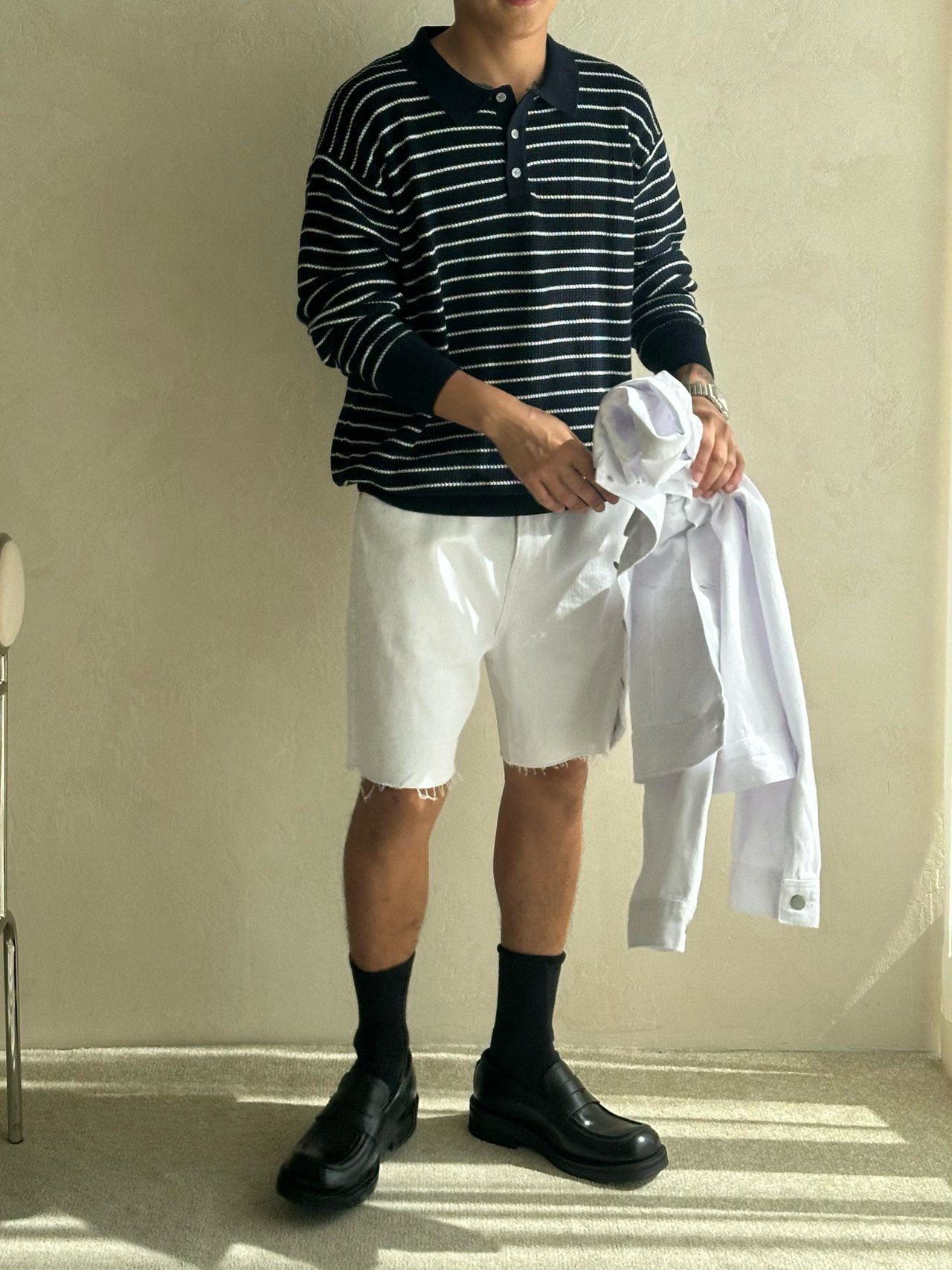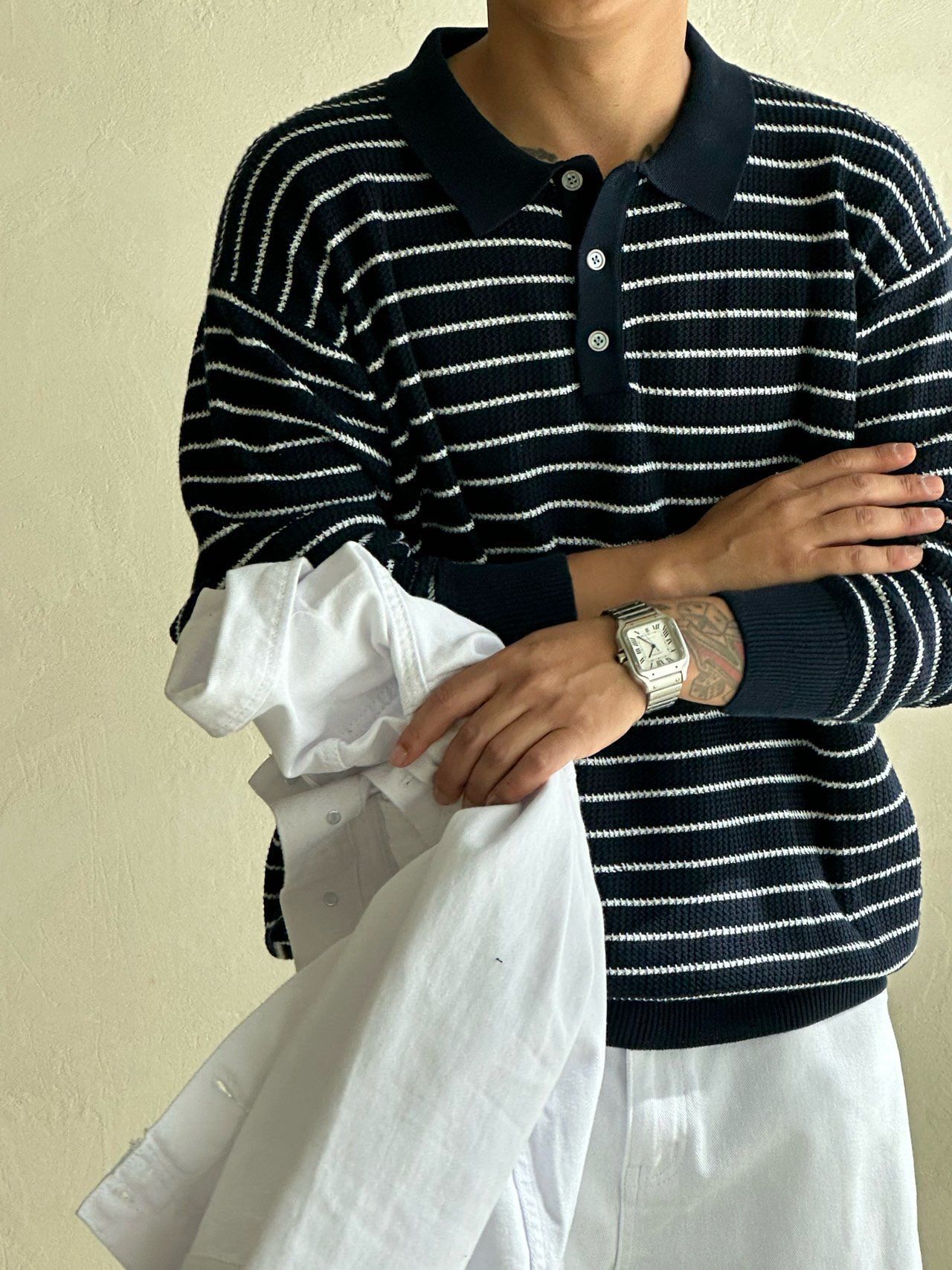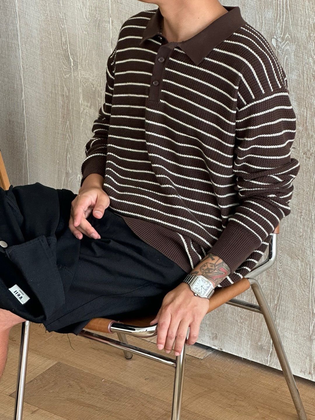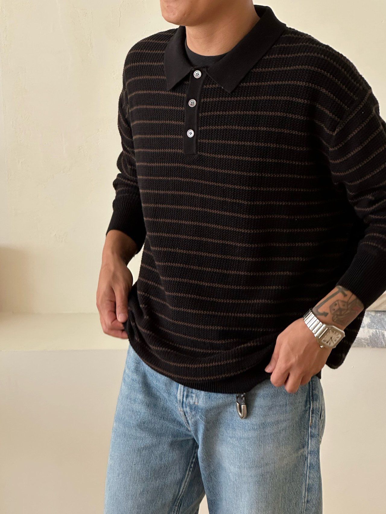 橫間長袖Polo針織衫 Veil-070T