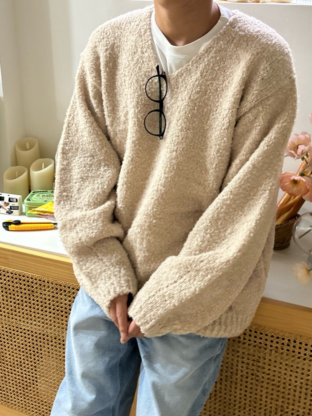 淨色V領針織衫 Veil-084T