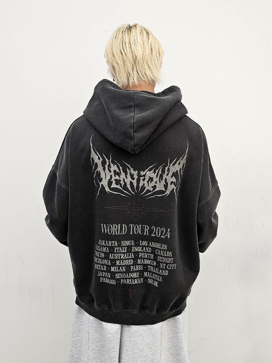 洗水英文字圖案連帽衛衣 VENTIQUE-018T