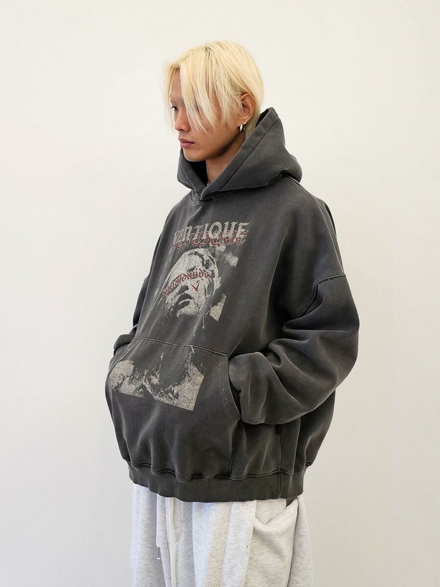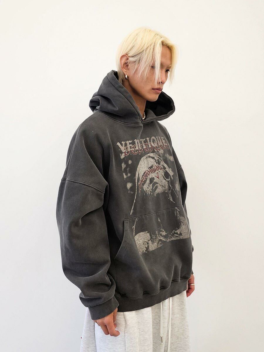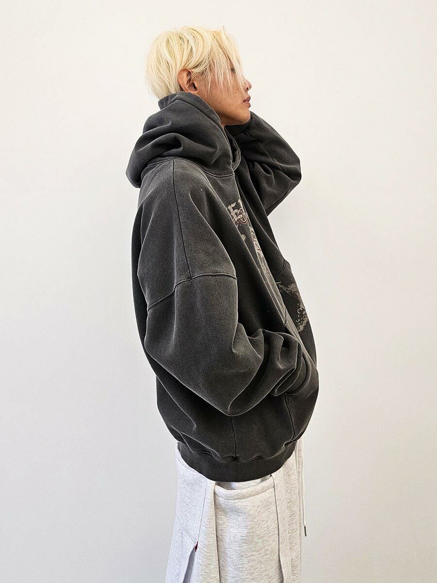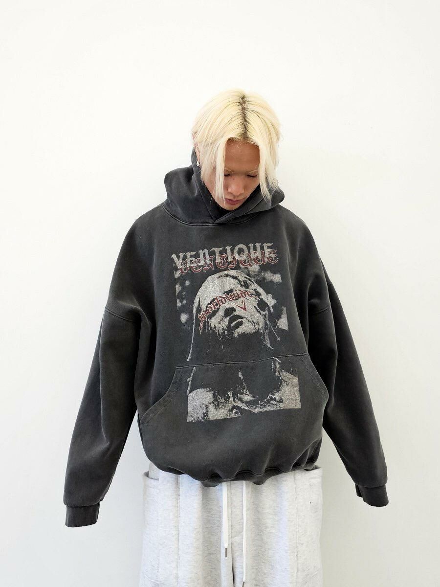 洗水英文字圖案連帽衛衣 VENTIQUE-031T