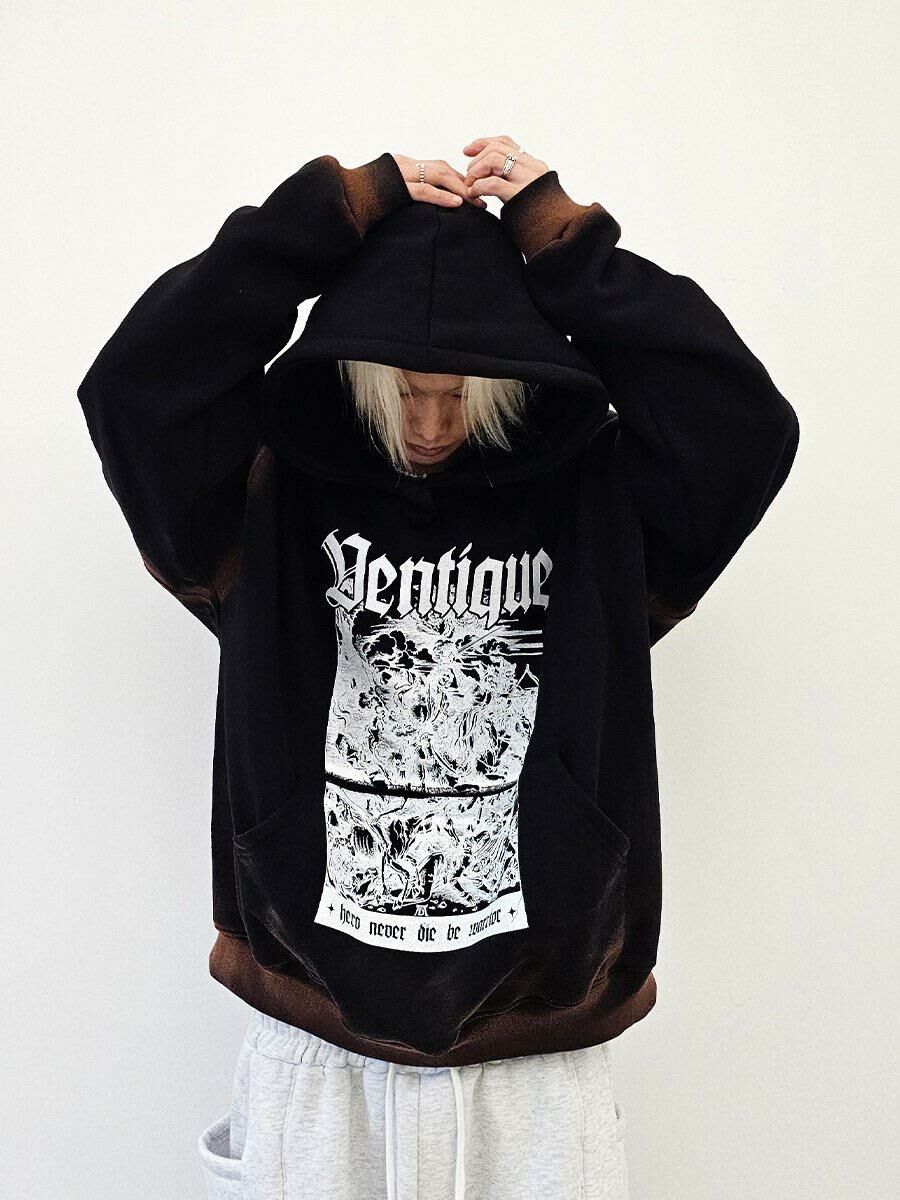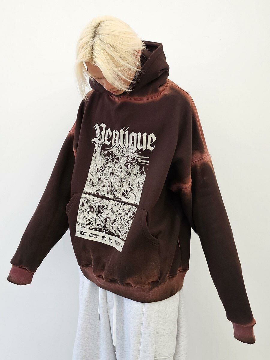 英文字圖案連帽衛衣(薄抓毛底) VENTIQUE-035T