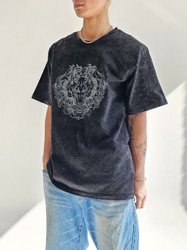 洗水英文字圖案短袖Tee VENTIQUE-044T