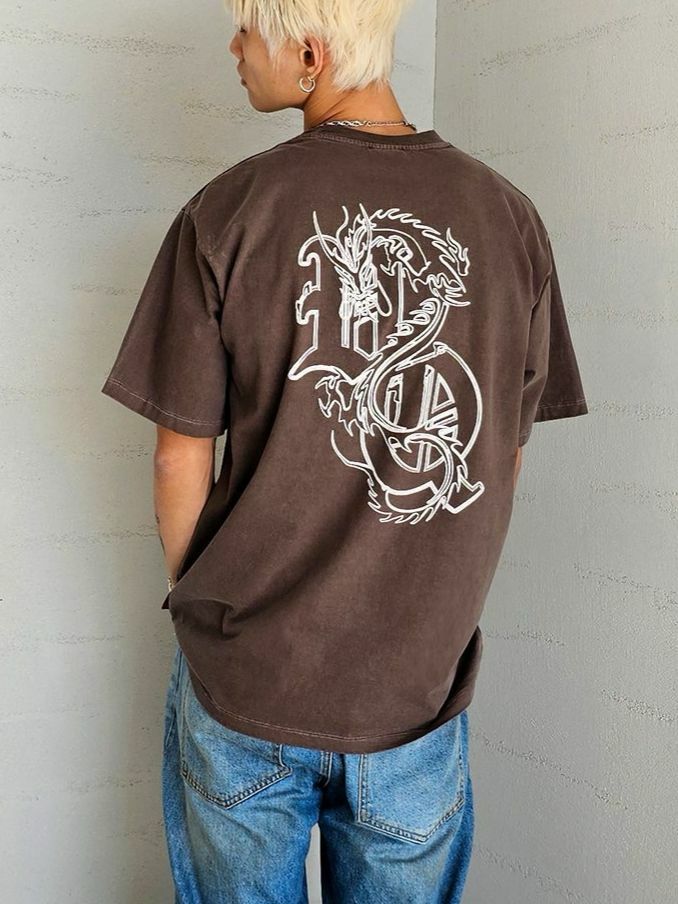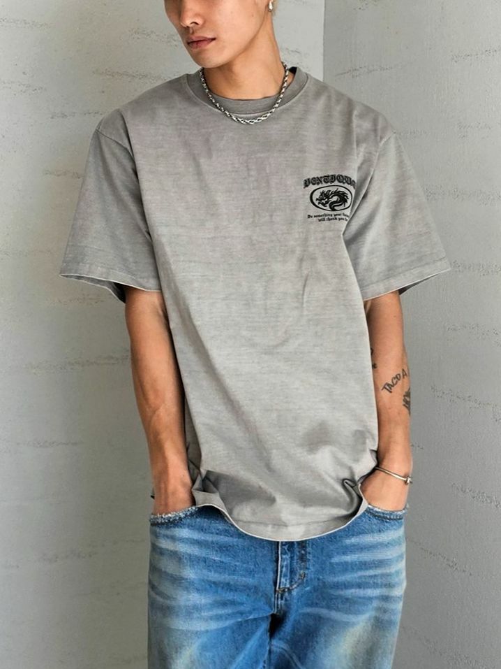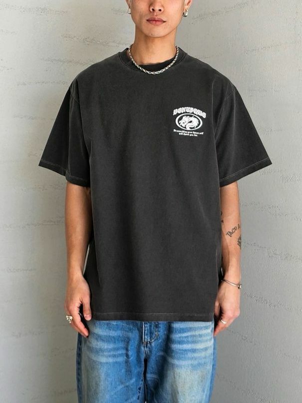 洗水英文字圖案短袖Tee VENTIQUE-045T